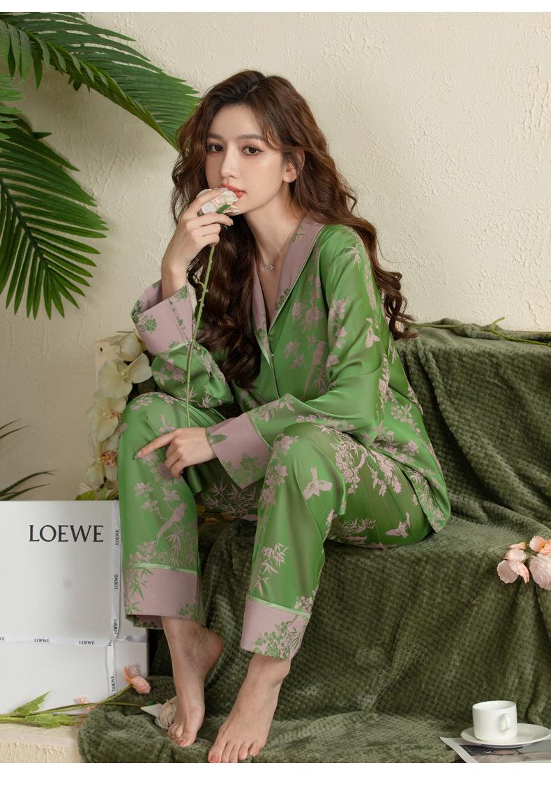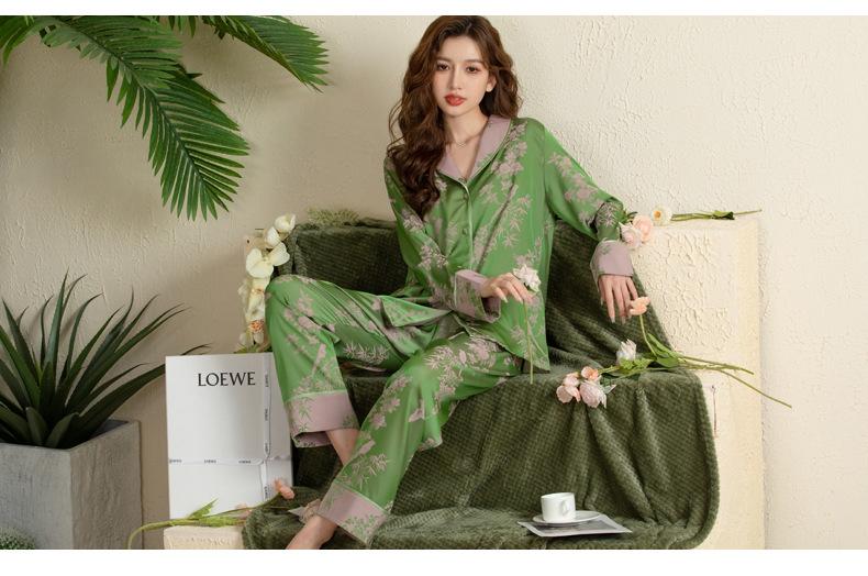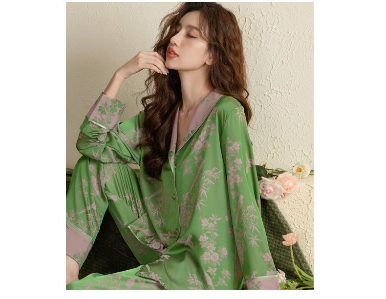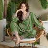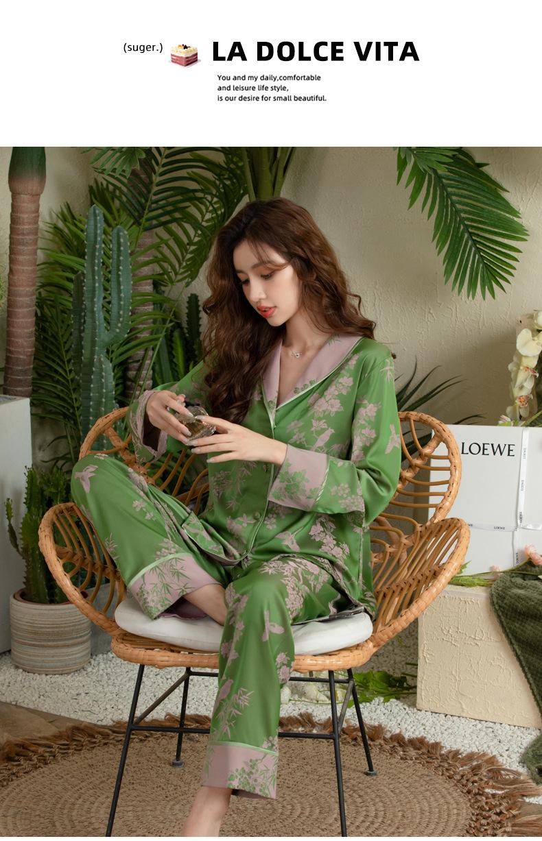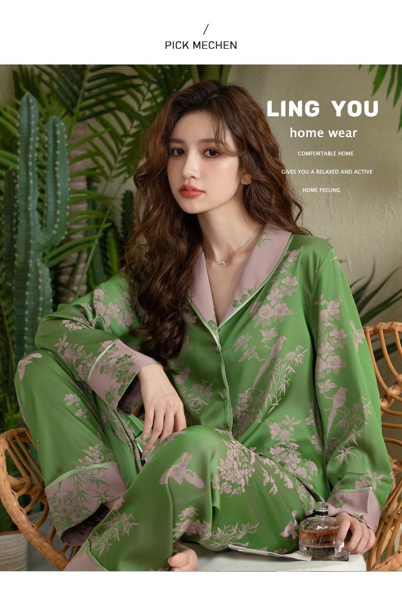 Pijamas de mujer primavera y otoño seda de hielo manga larga 2023 nuevo verano talla grande ropa de abrigo suelta ropa de casa traje