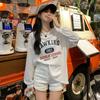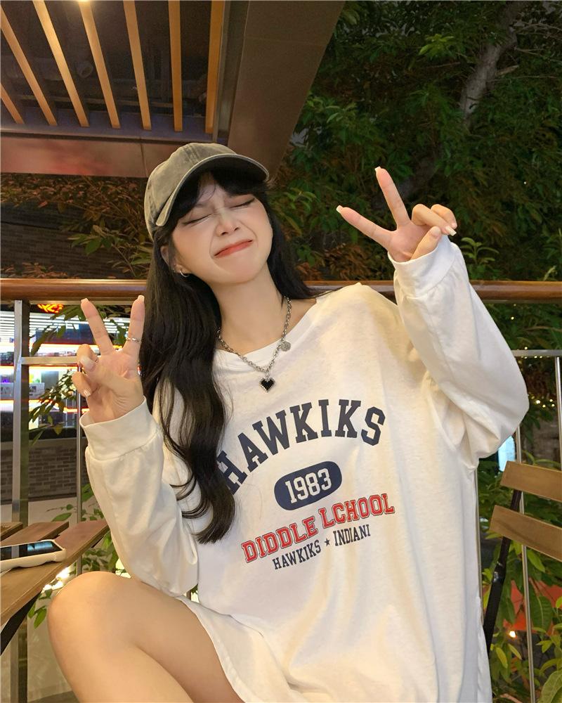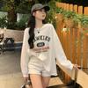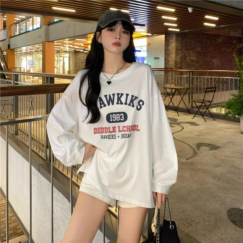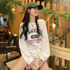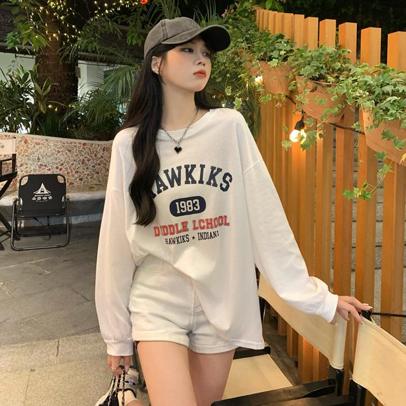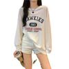 Playera de Algodón de Cuello Redondo y Manga Larga para Mujer Otoño 2024 Nueva Holgada Estilo Coreano Versátil Cuello Redondo Blanco Suéter Estampado para Mujer