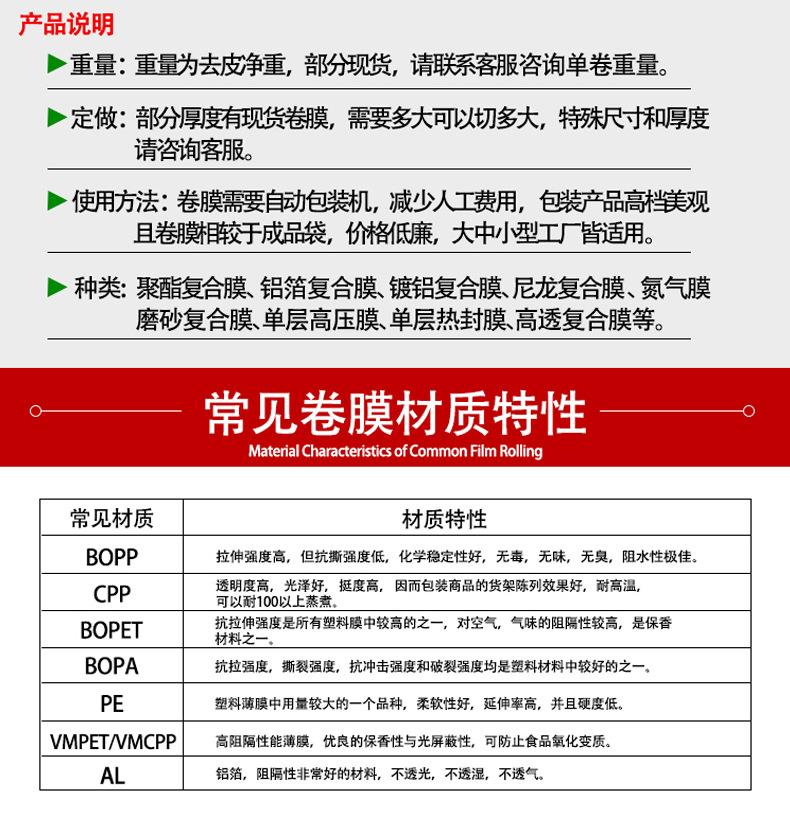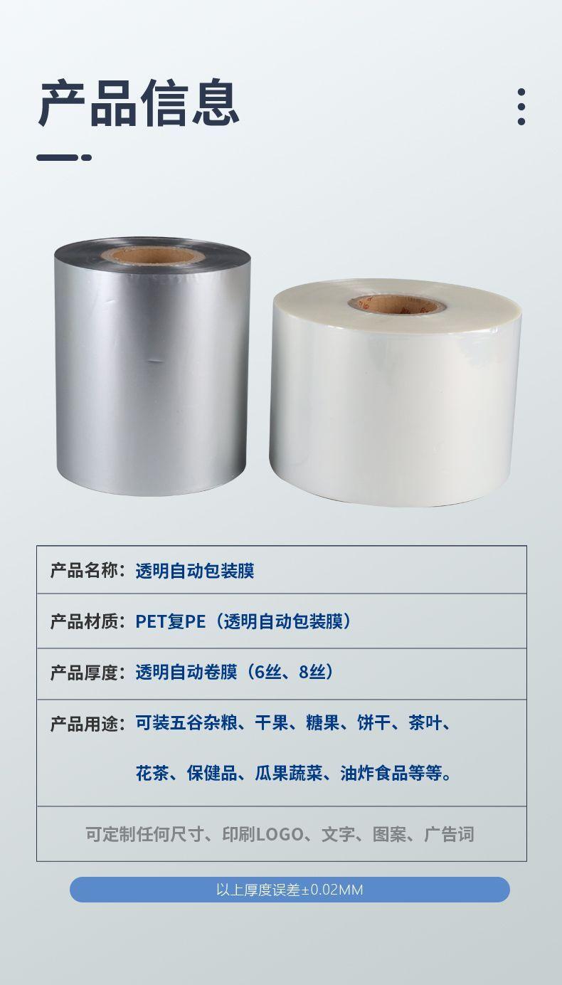 Máquina de embalaje totalmente automática, película compuesta de poliéster, PET aluminizado esmerilado, película de embalaje de alta transparencia, impresión de película compuesta, personalización