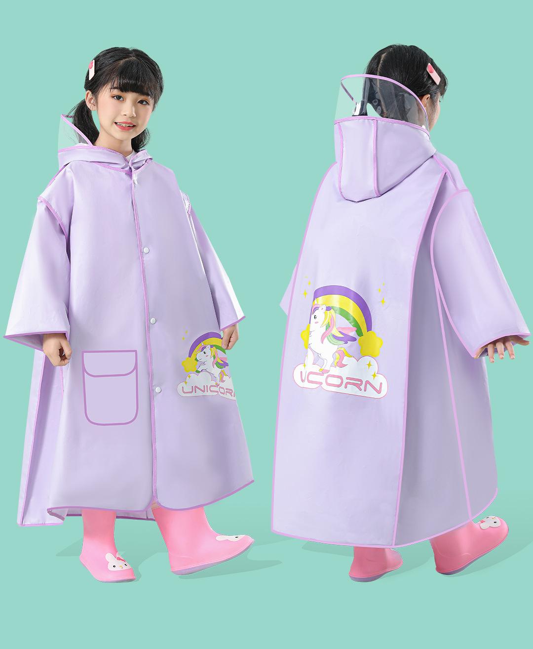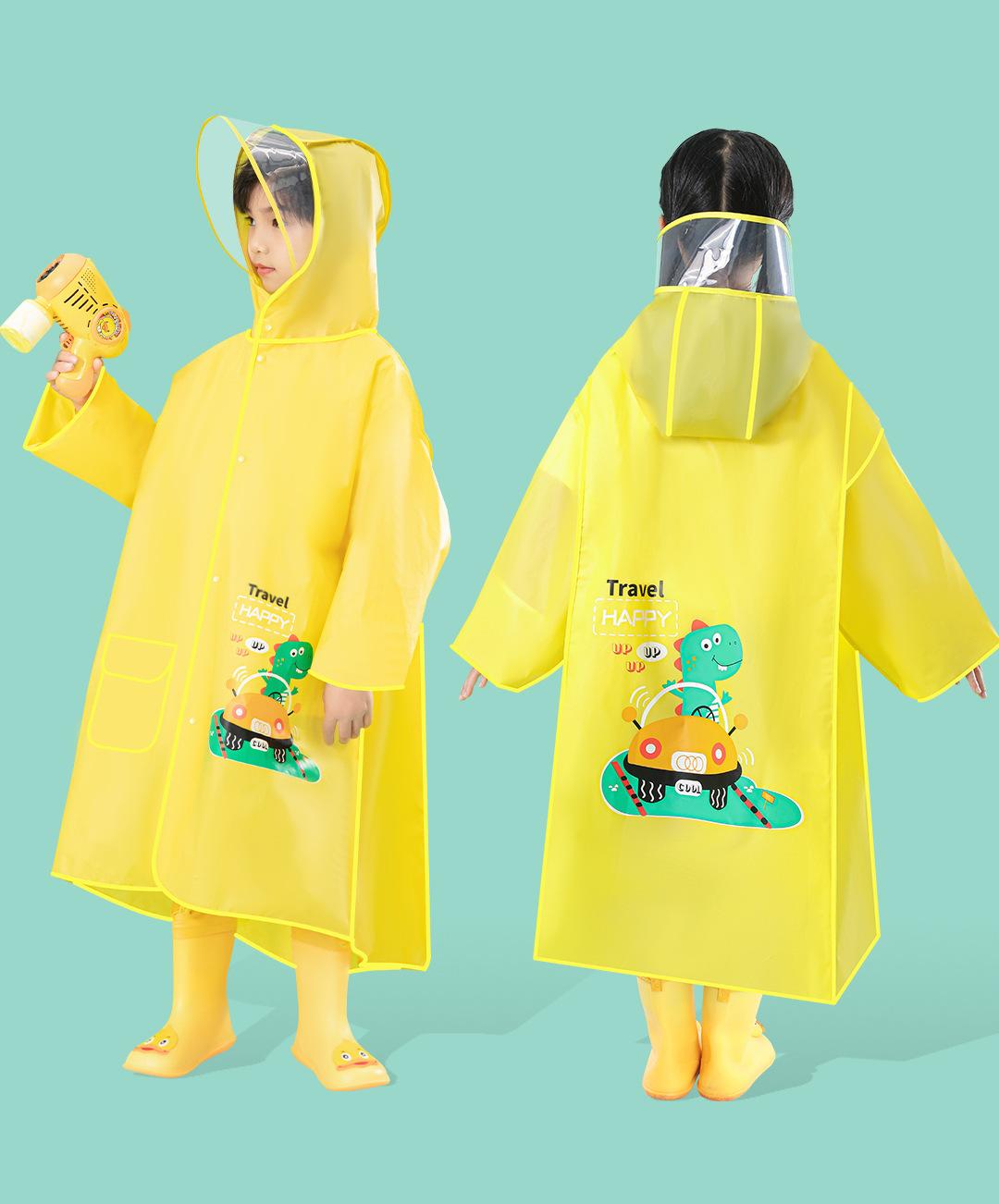 Impermeable Grueso para Niños Eva con Bolsa Escolar, Poncho Largo de Dibujos Animados a Prueba de Viento y Lluvia para Estudiantes Niños y Niñas
