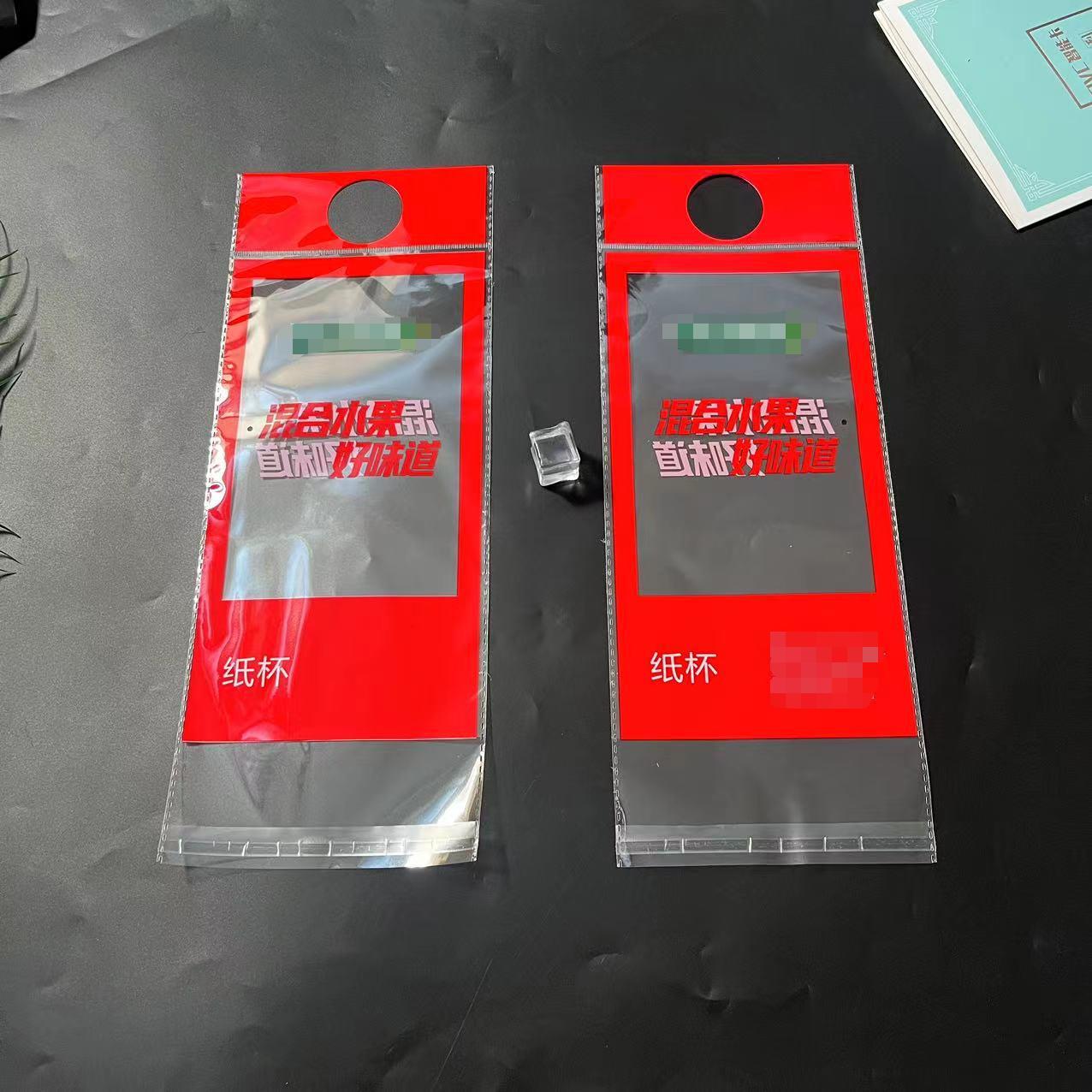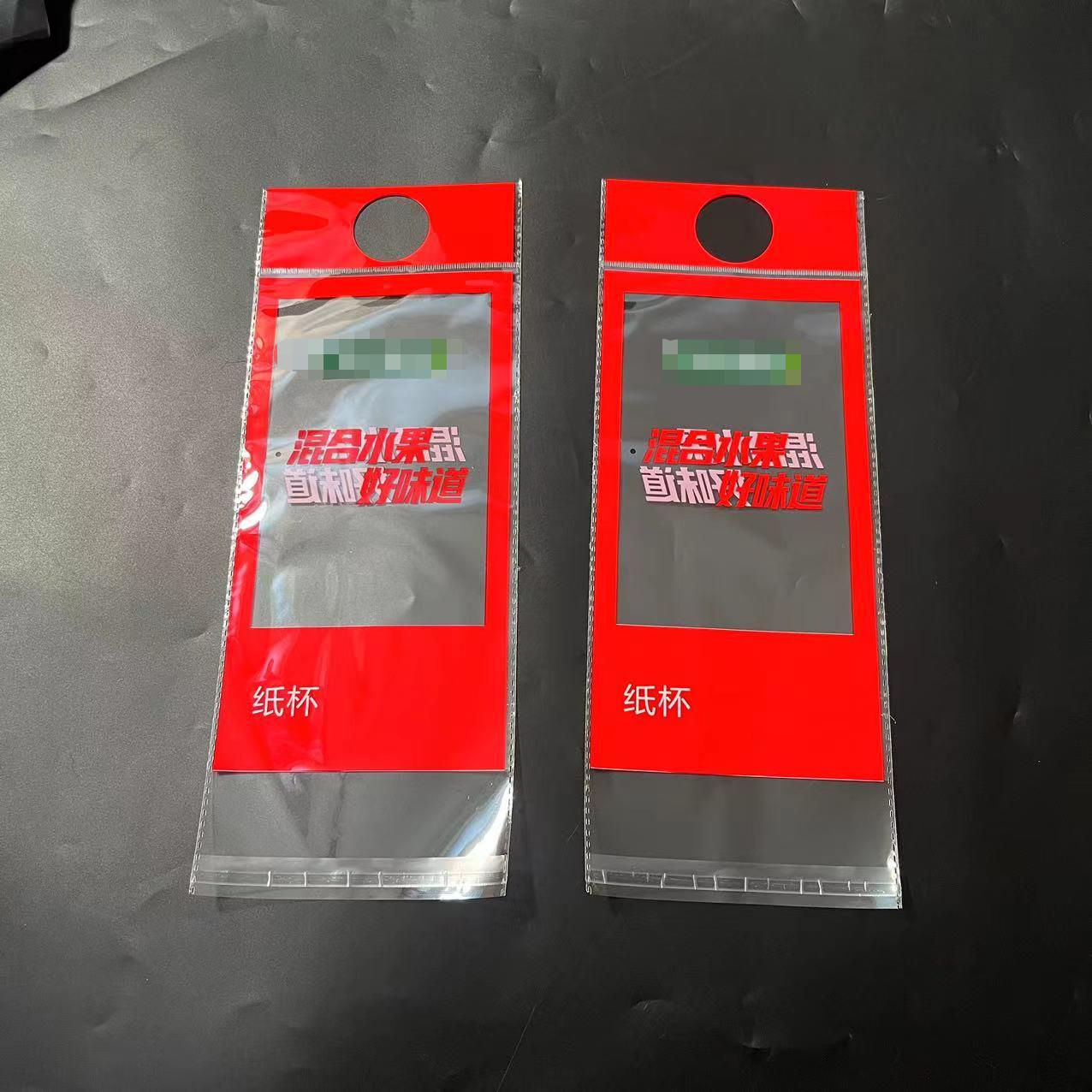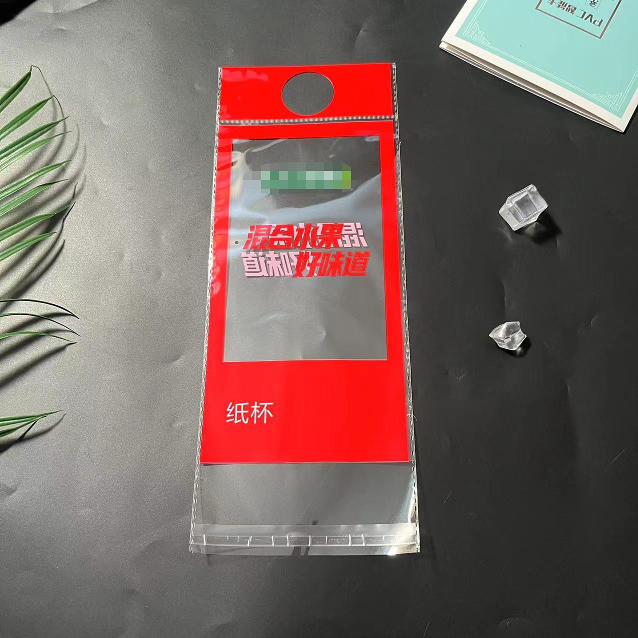 Bolsa de embalaje con cabezal de tarjeta OPP personalizada, bolsa de embalaje de plástico para vasos de papel, bolsa de embalaje con orificio para colgar en forma de OPP, bolsa de embalaje autoadhesiva de PP