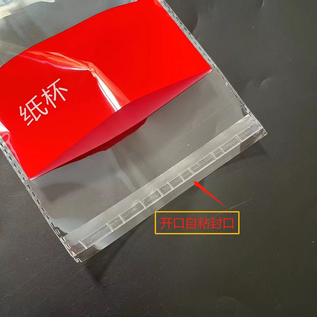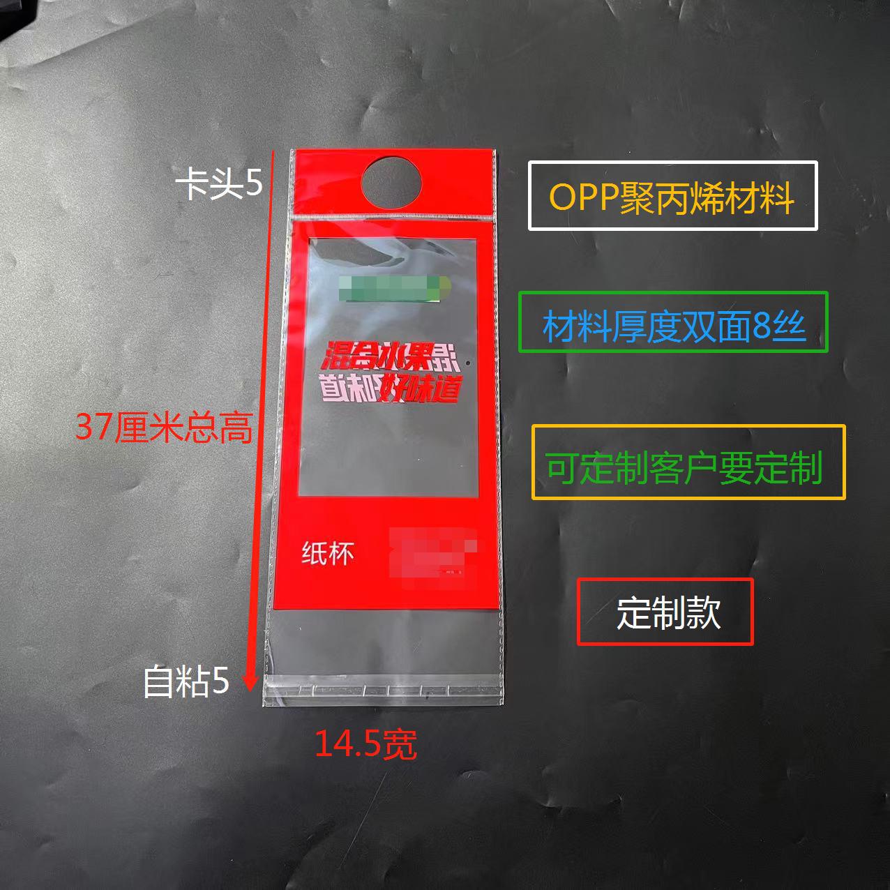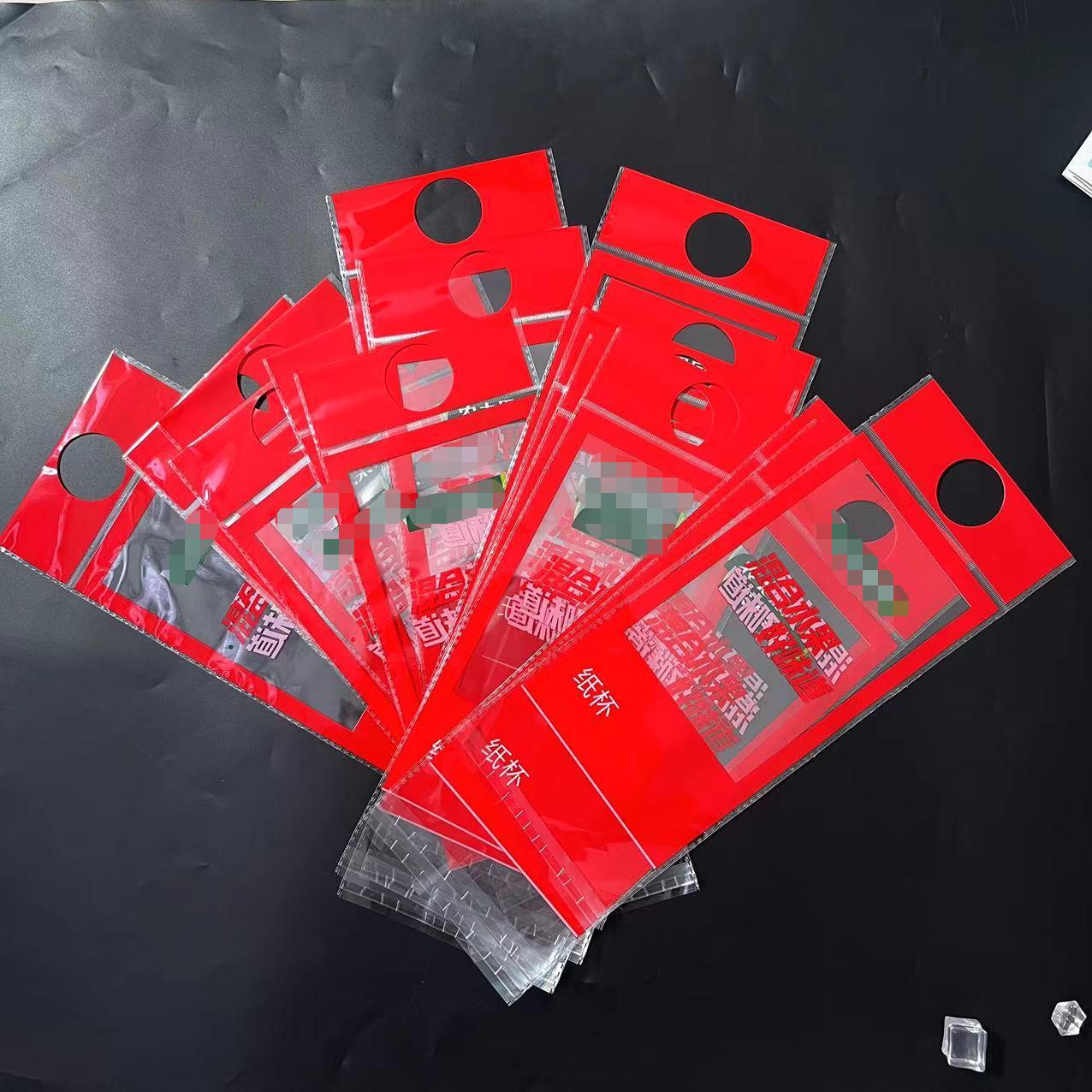 Bolsa de embalaje con cabezal de tarjeta OPP personalizada, bolsa de embalaje de plástico para vasos de papel, bolsa de embalaje con orificio para colgar en forma de OPP, bolsa de embalaje autoadhesiva de PP