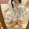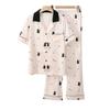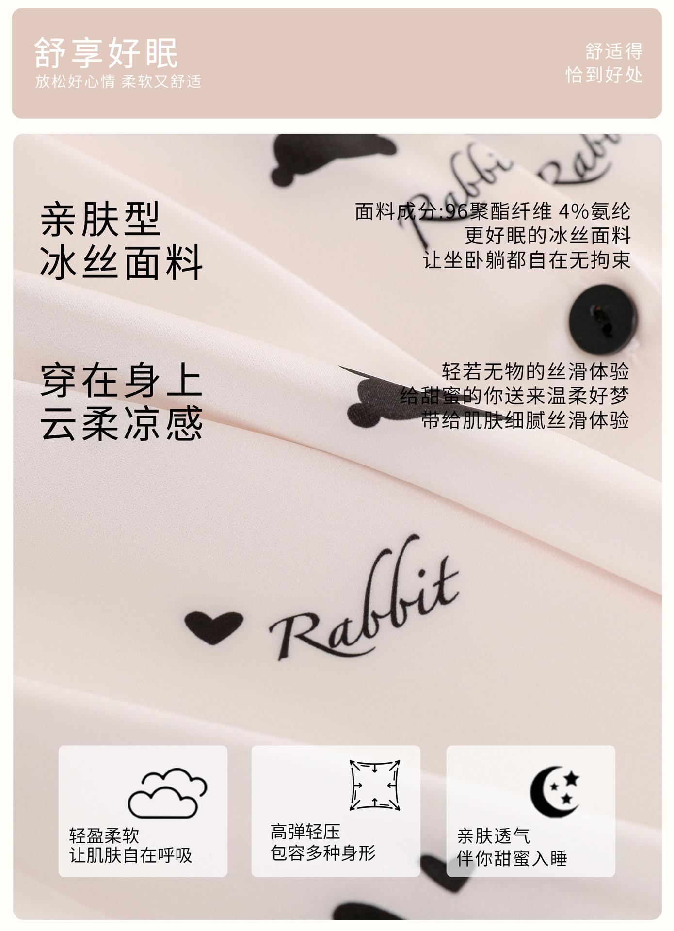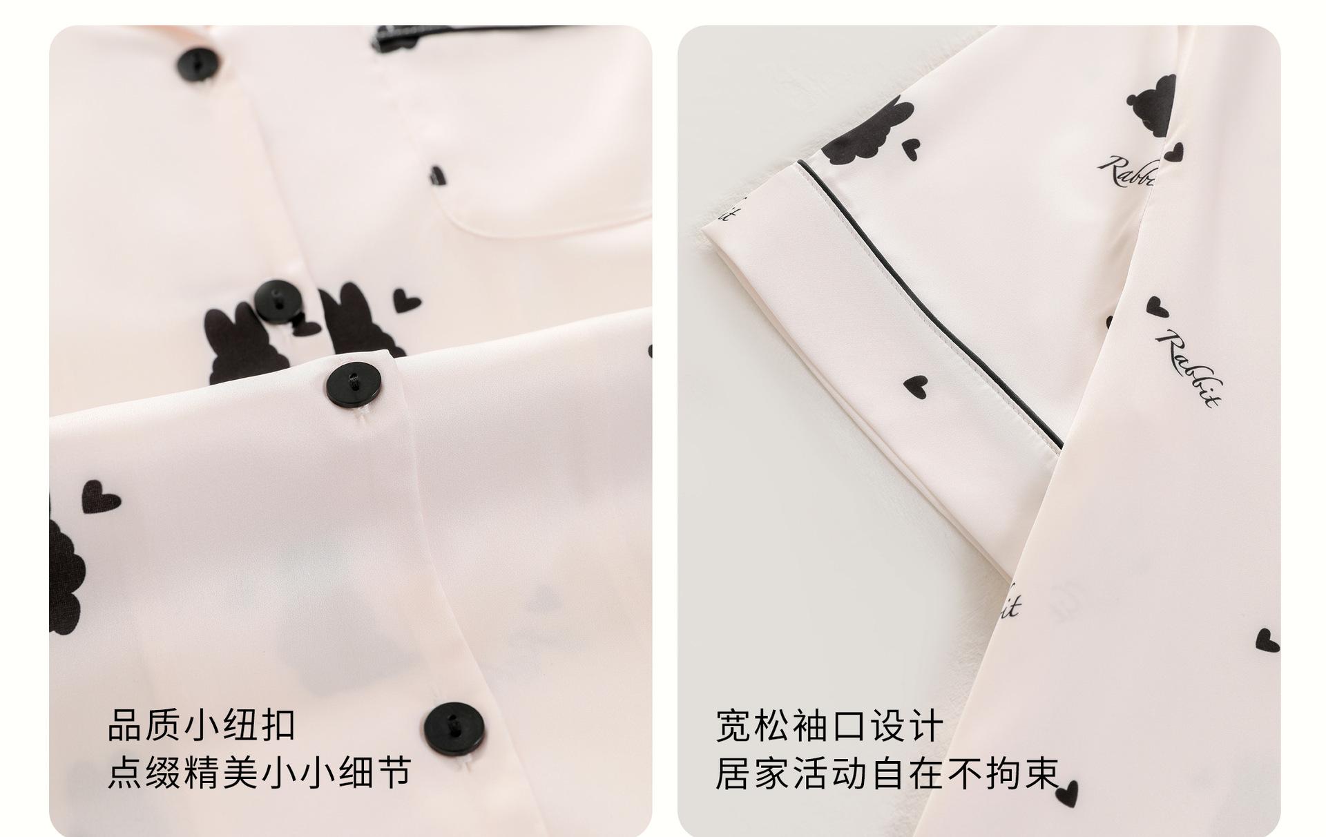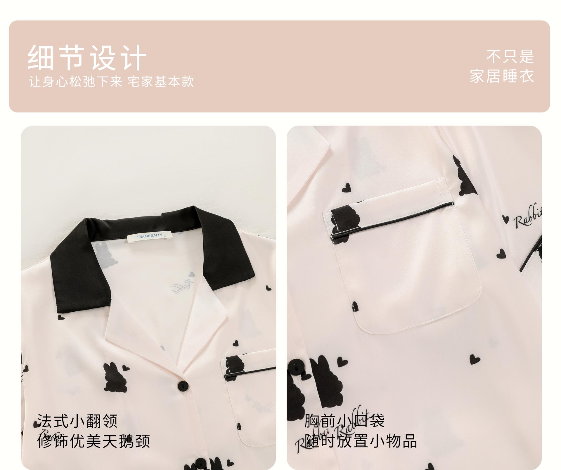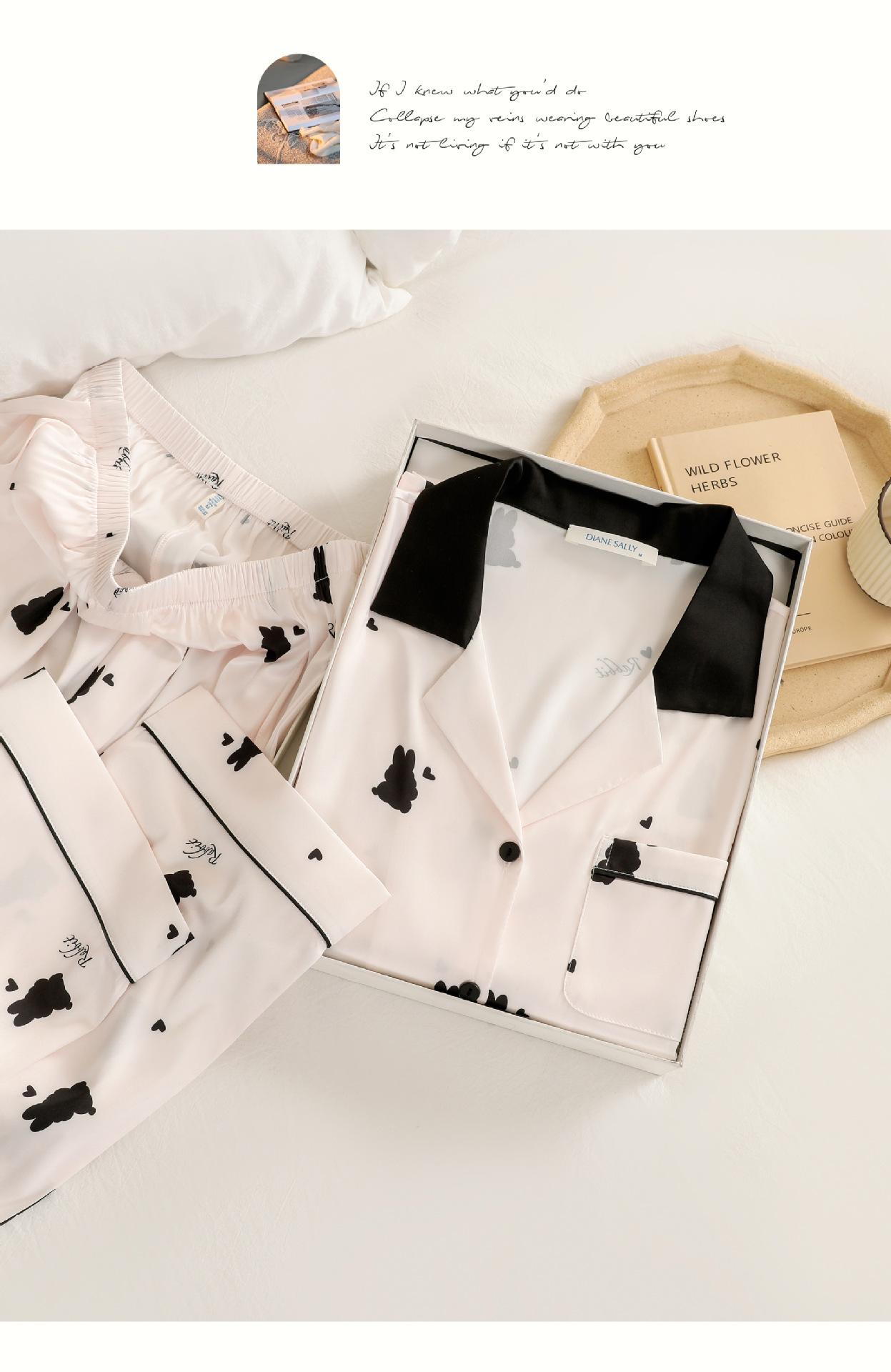 Pijamas de Conejo de Dibujos Animados Lindos Personalizados para Mujer, Pantalones de Manga Corta de Seda de Hielo para Primavera y Otoño, Conjunto de Dos Piezas para el Hogar que se Puede Usar como Ropa para el Hogar