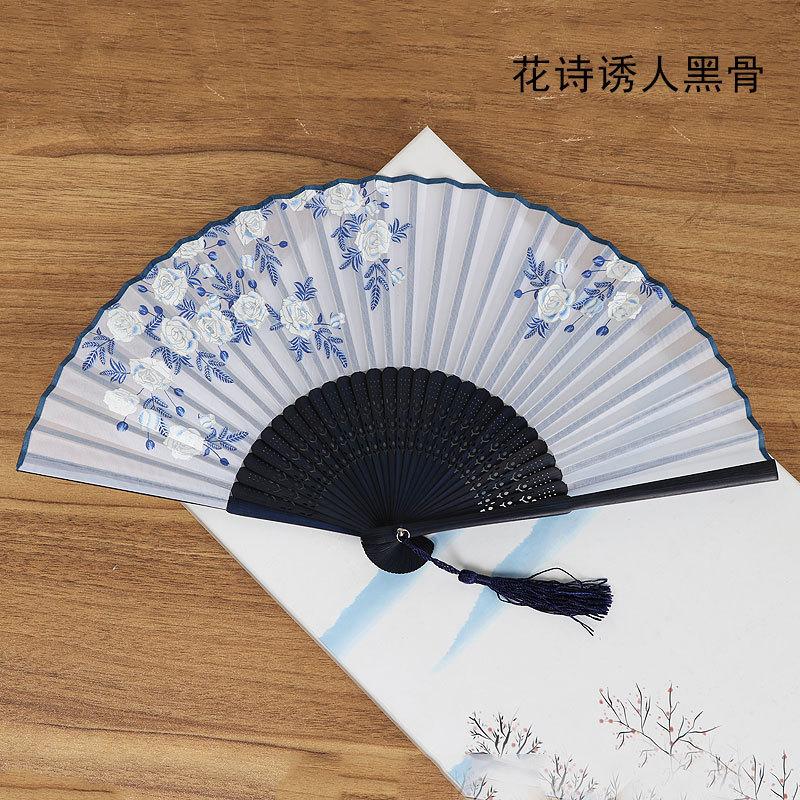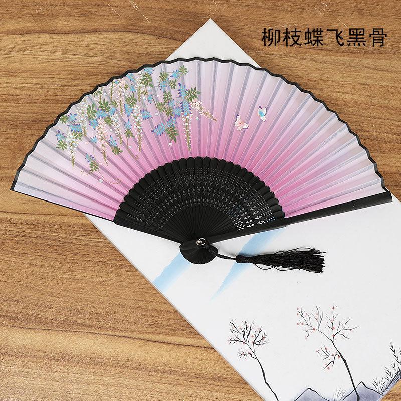 Abanico de Mujer Estilo Antiguo Al Por Mayor Seda Estilo Chino Ciruelo Sonriente Abanico Plegable Al Por Mayor Regalos Publicitarios Fabricante de Abanicos Plegables Japoneses Dropshipping