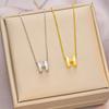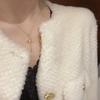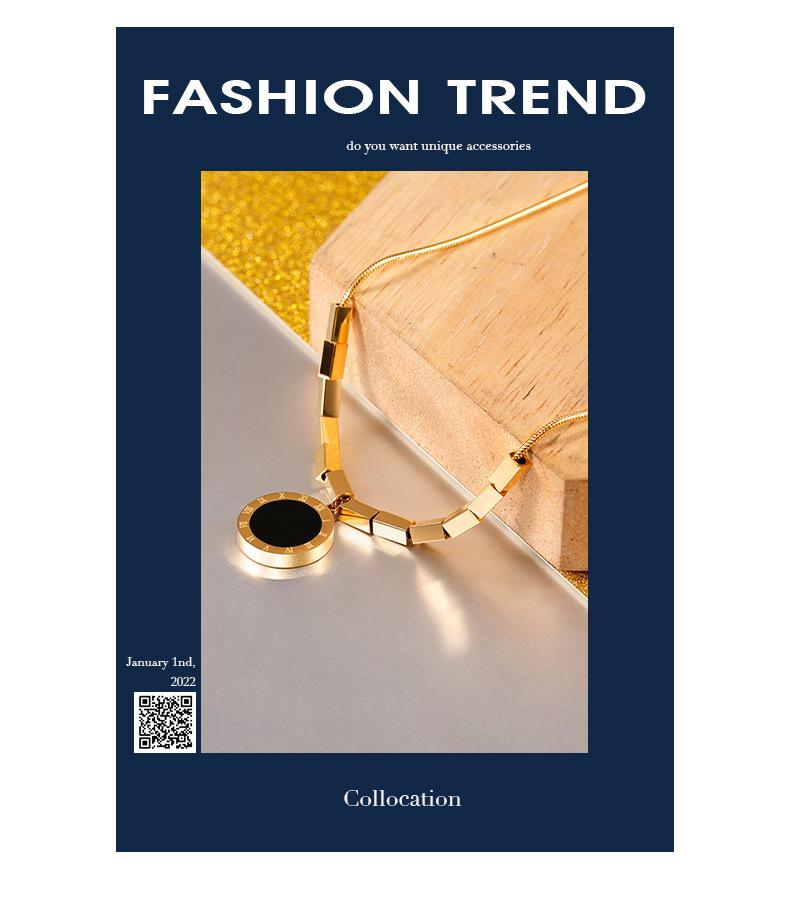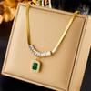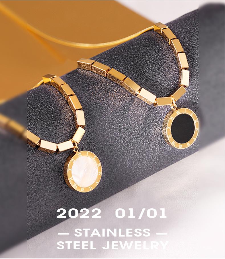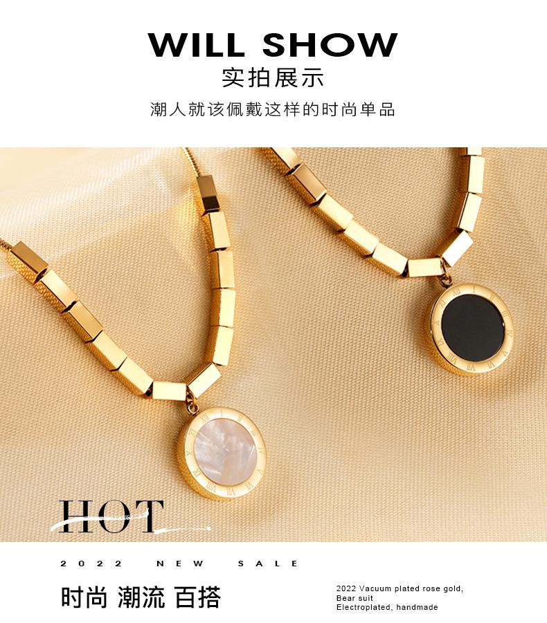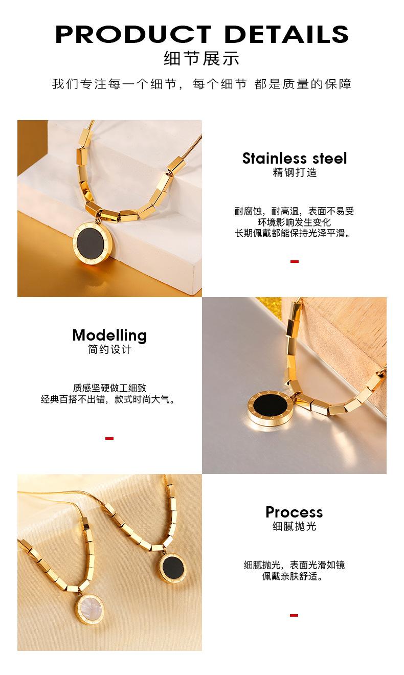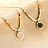 Luz colgante de diseño de alta calidad blanco y negro con gota de aceite a doble cara, lujosa de acero inoxidable dorado, cadena para clavícula cuadrada pequeña dorada, joyería