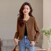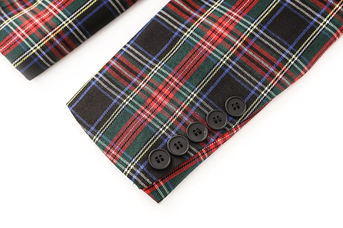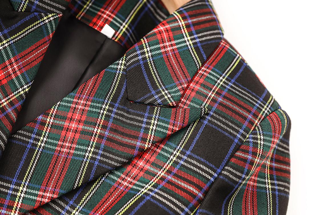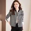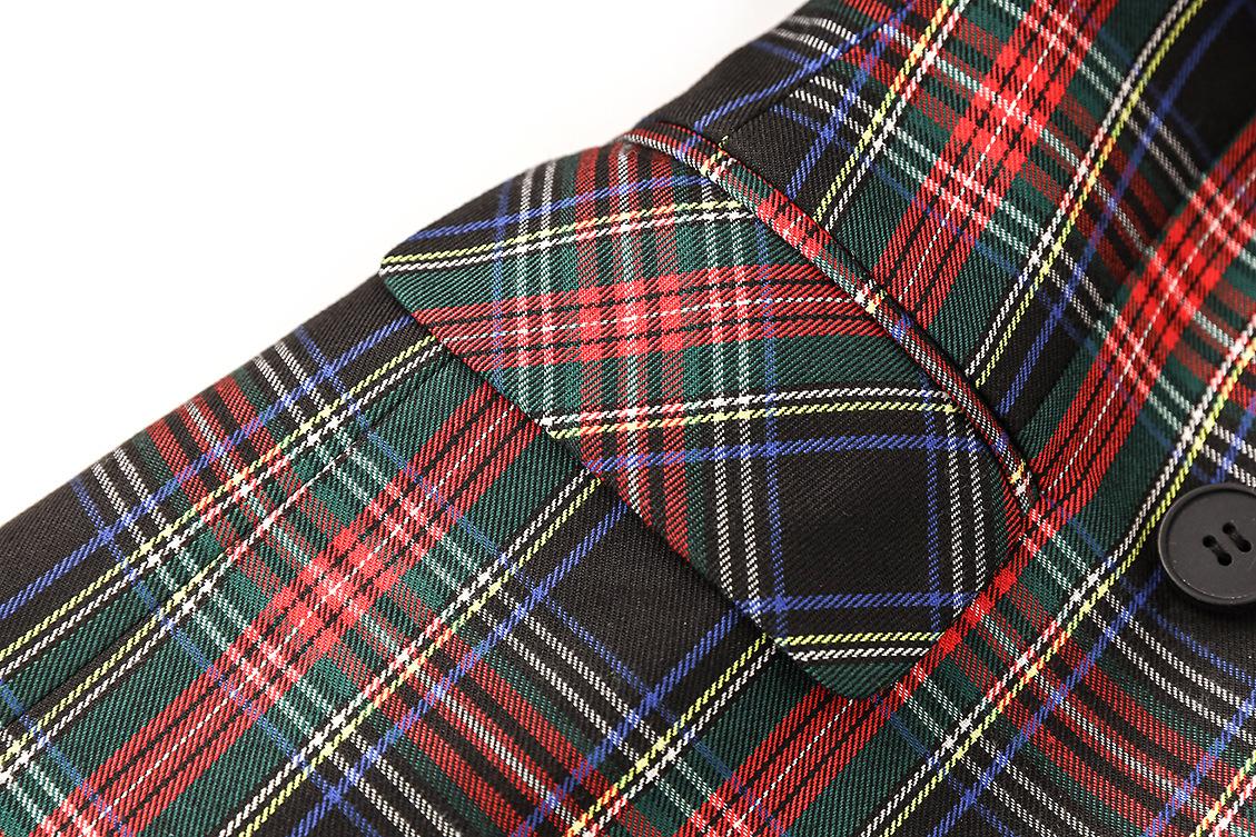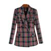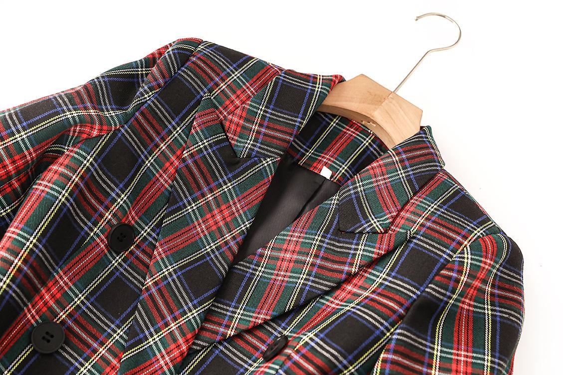 En stock 2024 Primavera y Otoño Nuevo estilo británico cuadros hombro algodón cuello de pistola elegante cintura ajustada chaqueta de traje cruzado