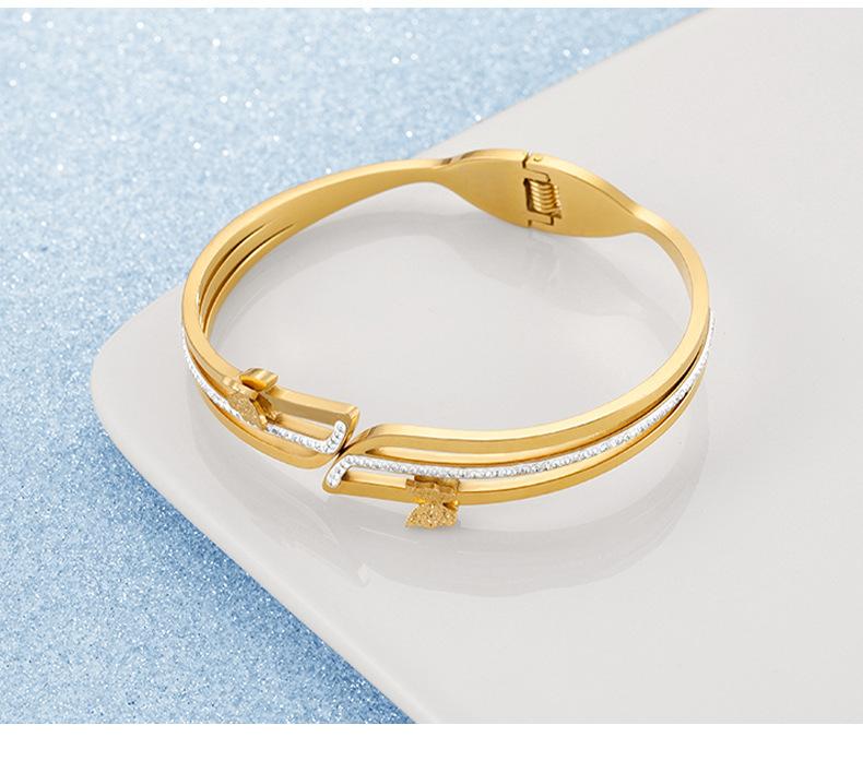 Pulsera sencilla nueva tridimensional de mariposa Sandy de acero de titanio, hueca de diamantes de acero inoxidable dorado de estilo vintage francés