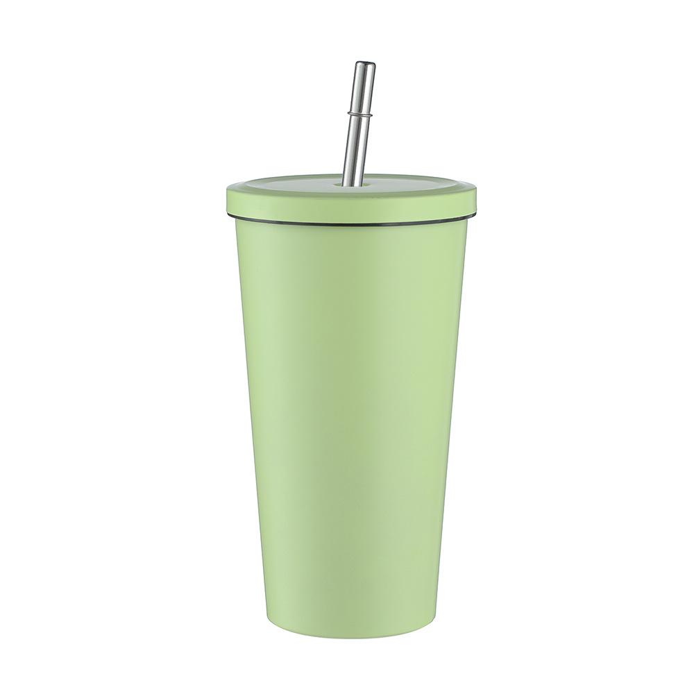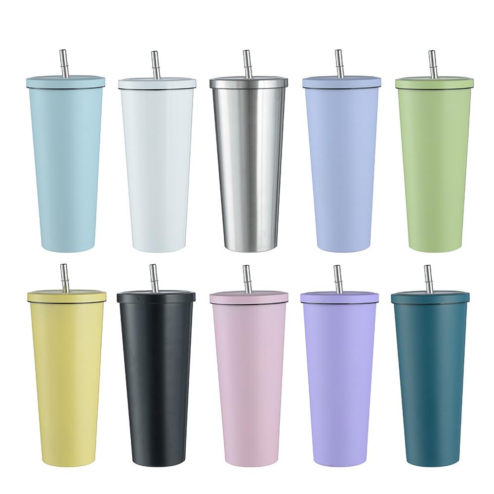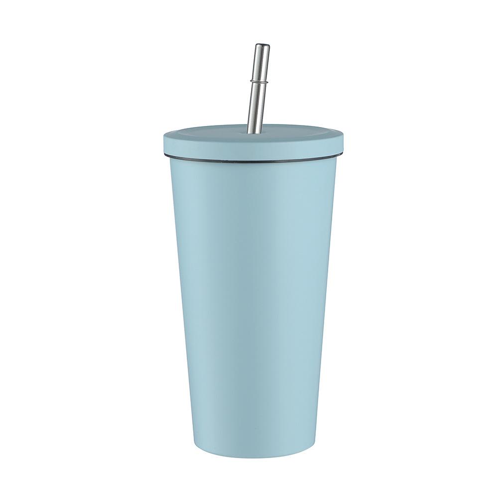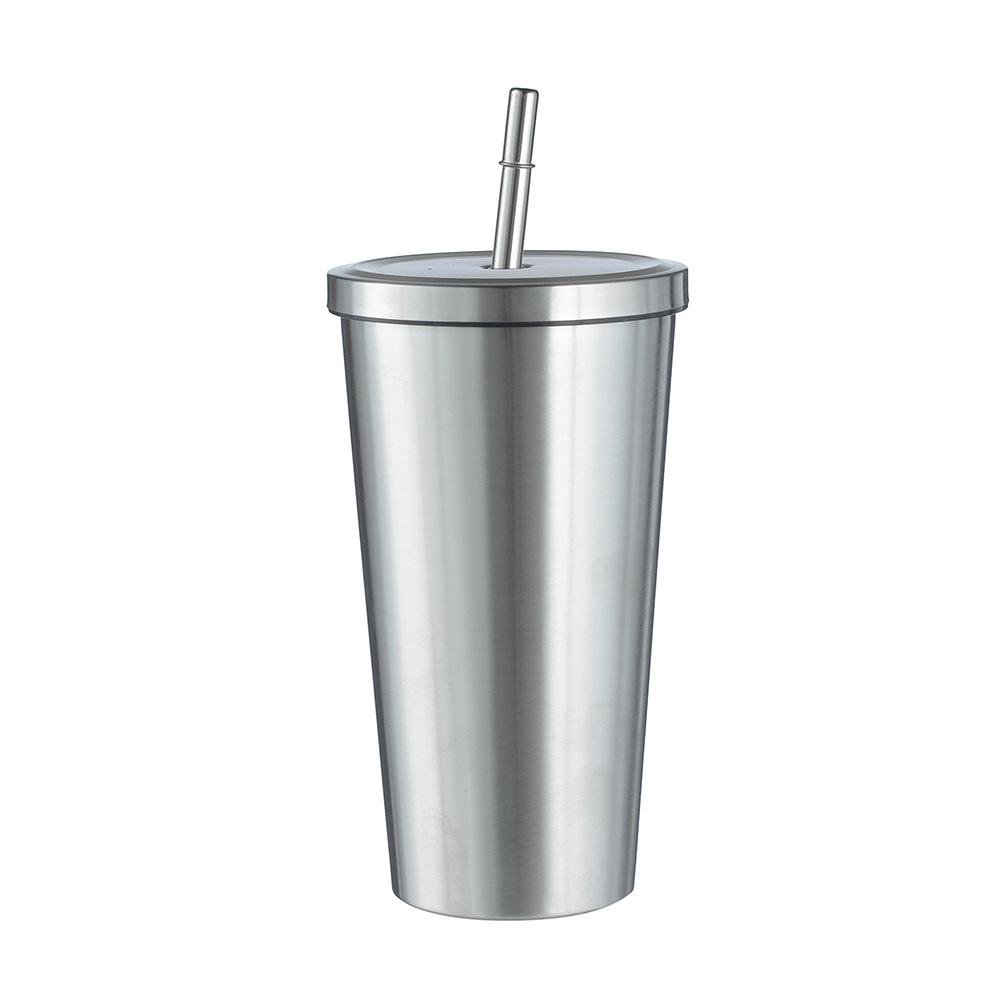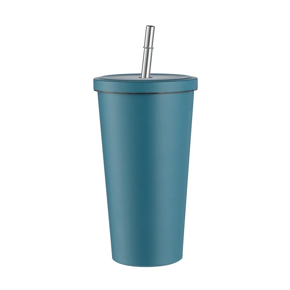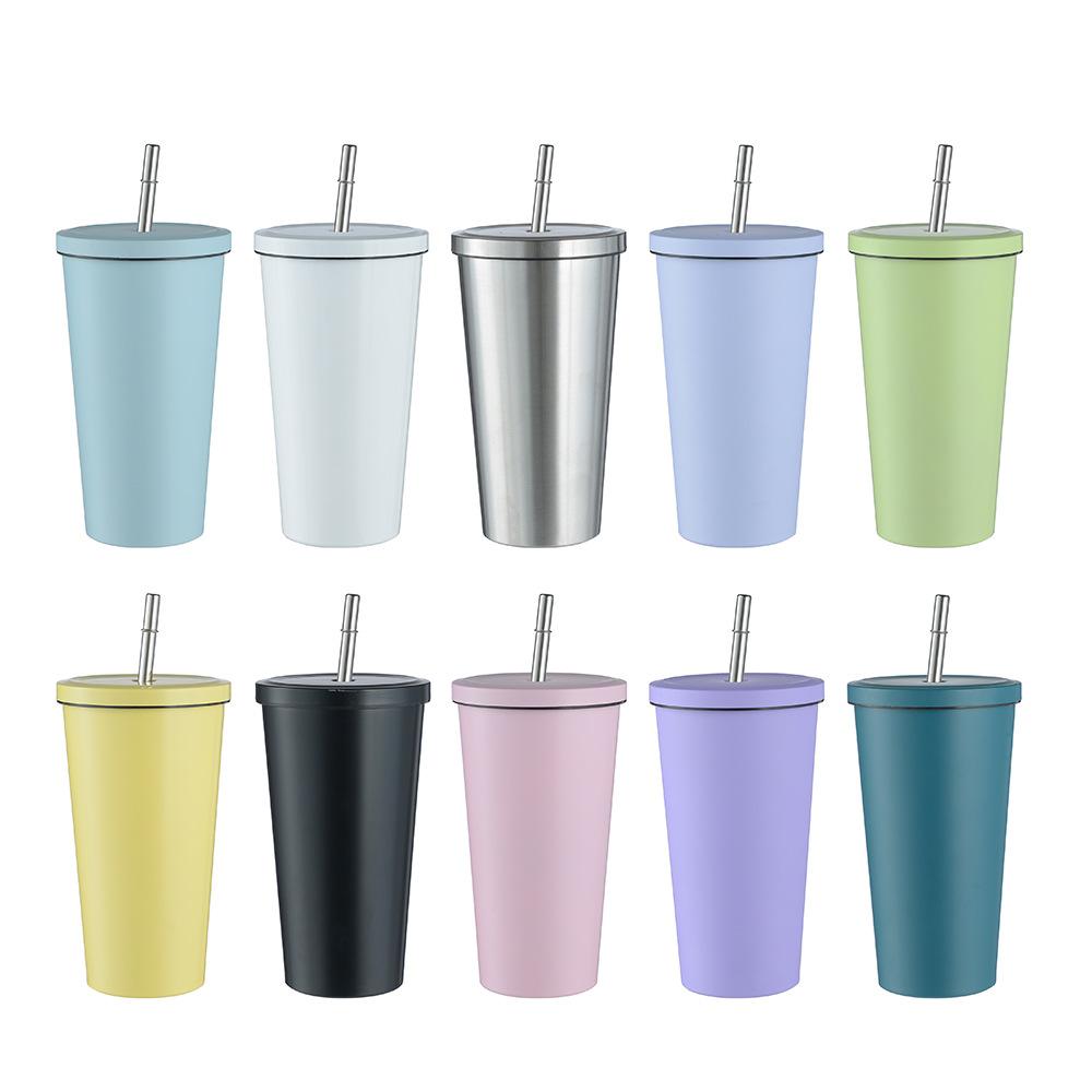 Termo de vacío de doble capa de acero inoxidable 304 transfronterizo, taza de café con pajita simple y moderna, taza portátil para personas con discapacidad.
