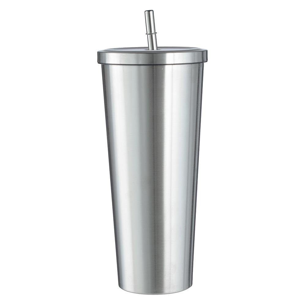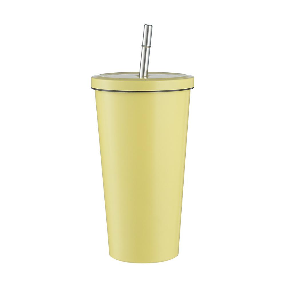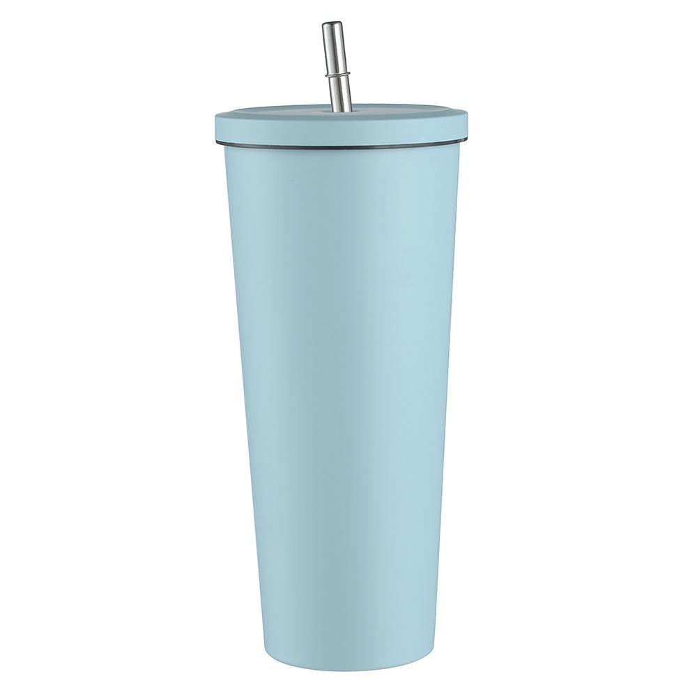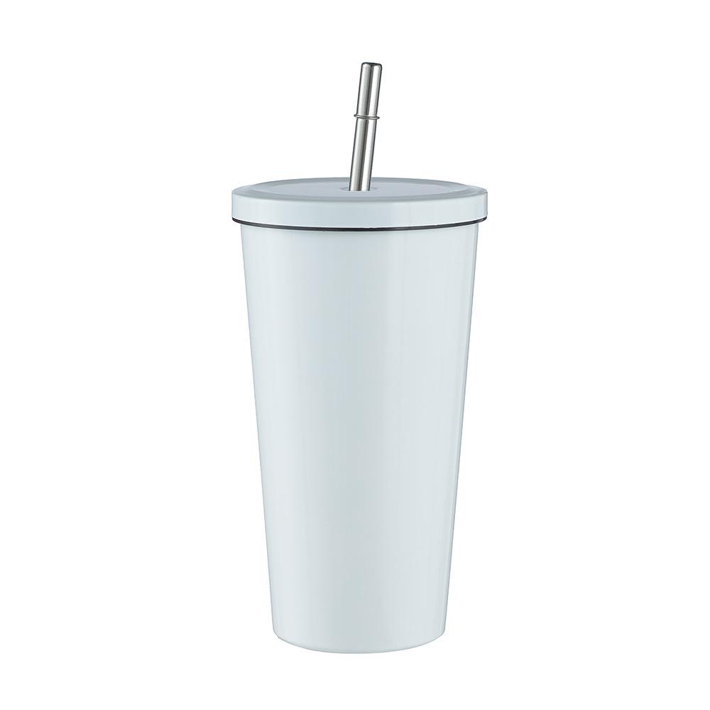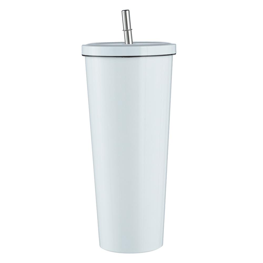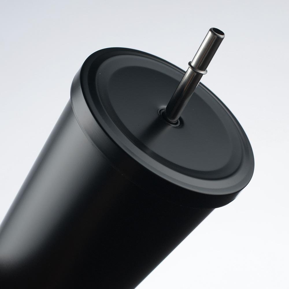 Termo de vacío de doble capa de acero inoxidable 304 transfronterizo, taza de café con pajita simple y moderna, taza portátil para personas con discapacidad.