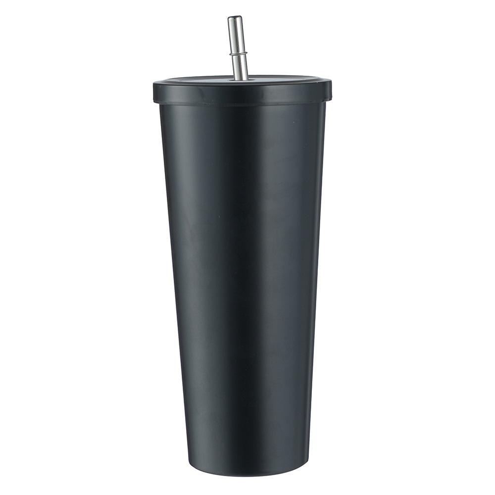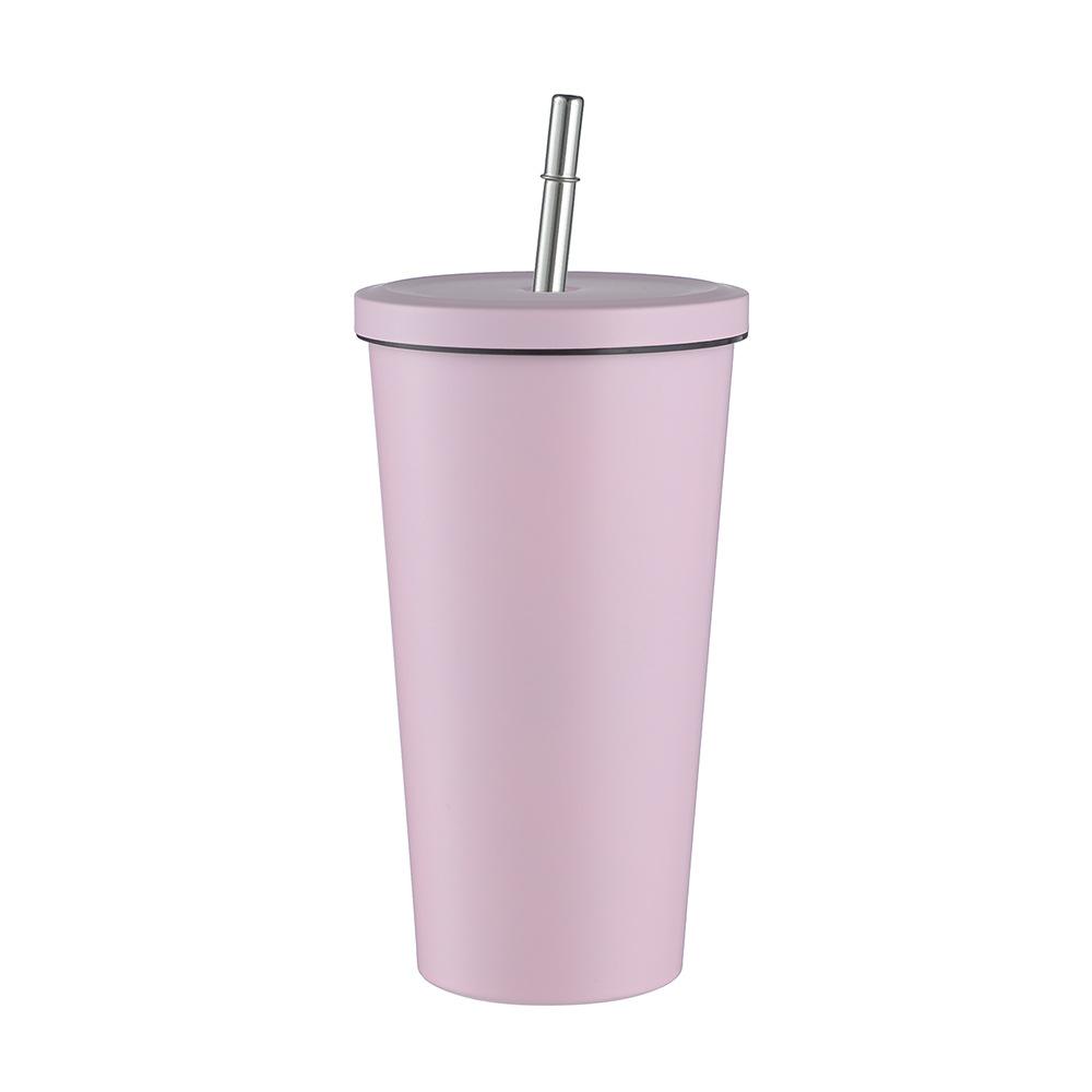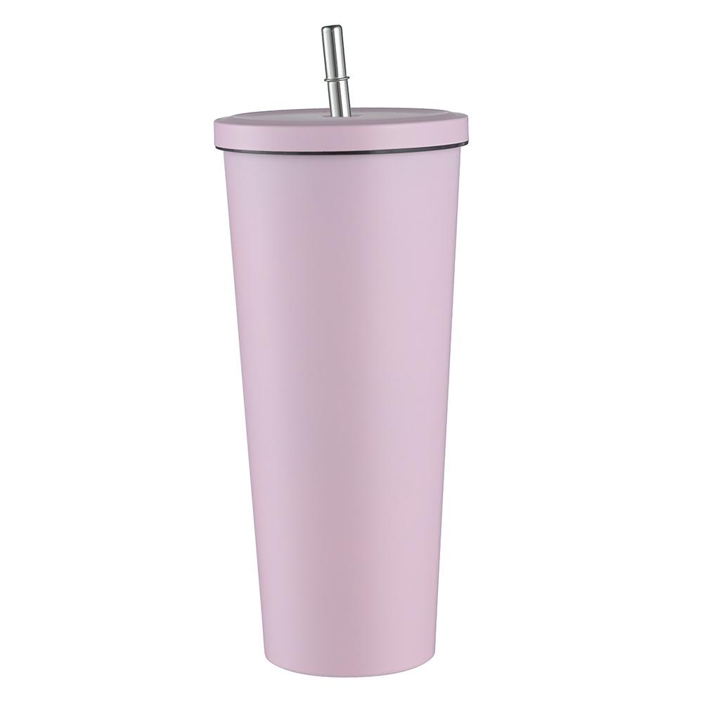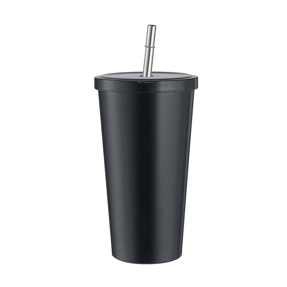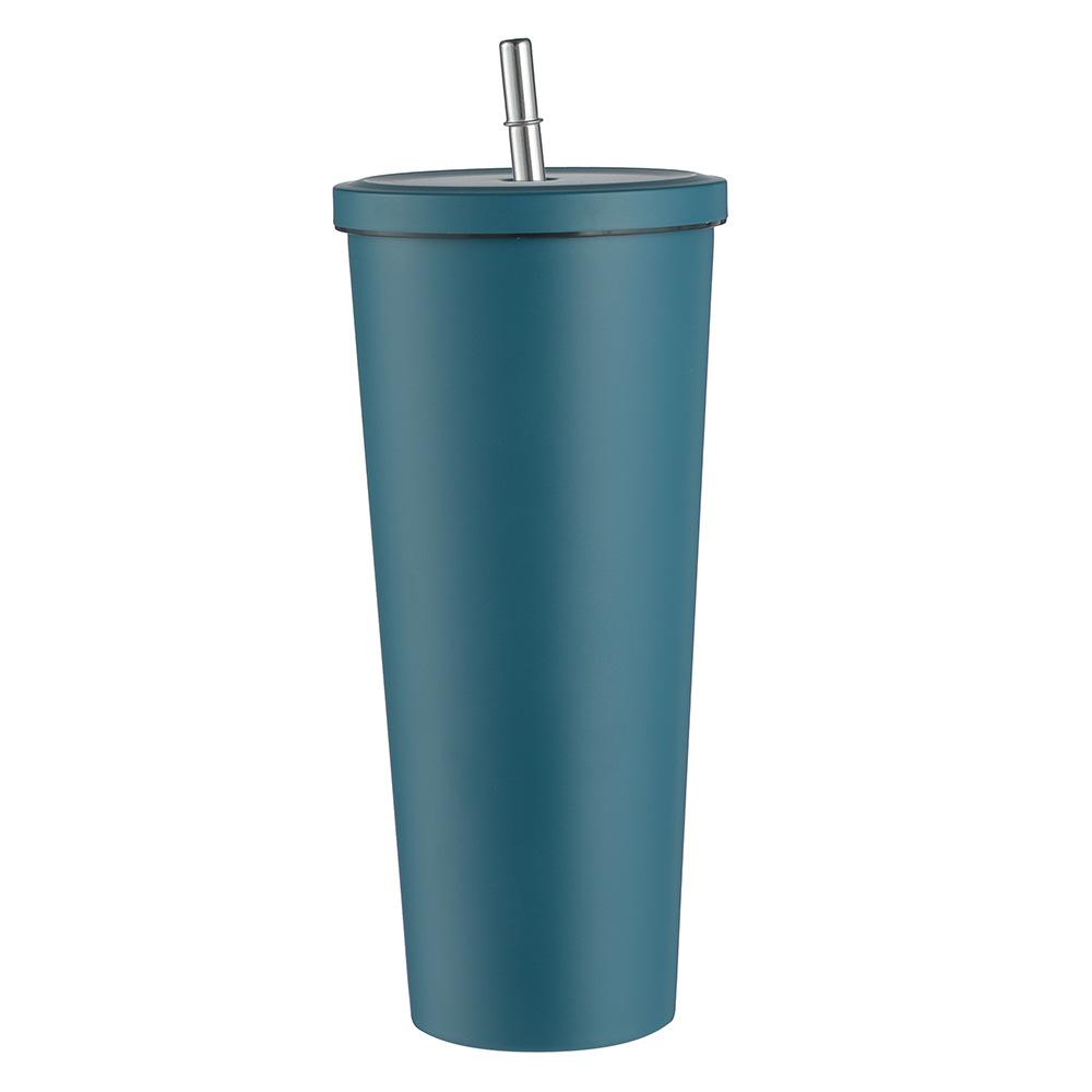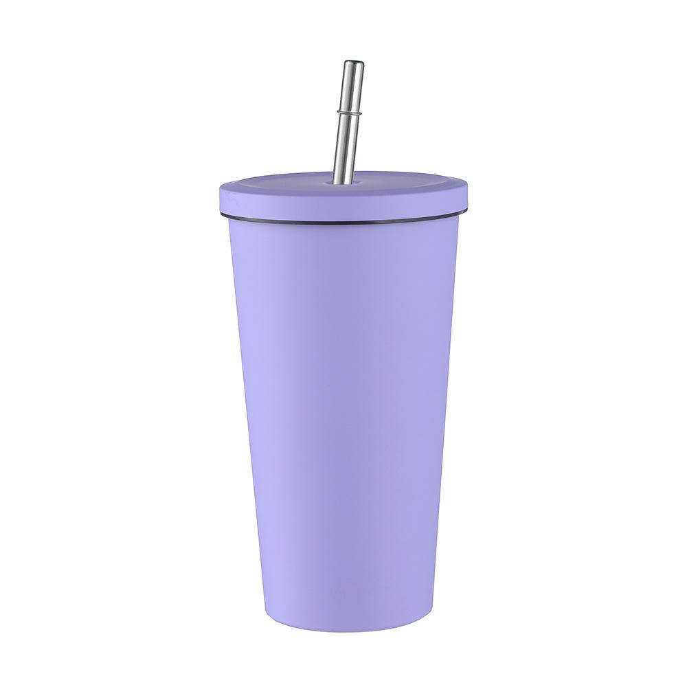 Termo de vacío de doble capa de acero inoxidable 304 transfronterizo, taza de café con pajita simple y moderna, taza portátil para personas con discapacidad.