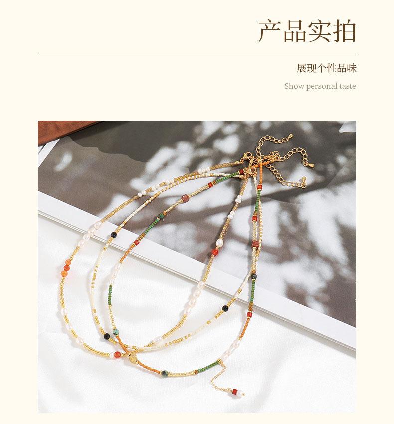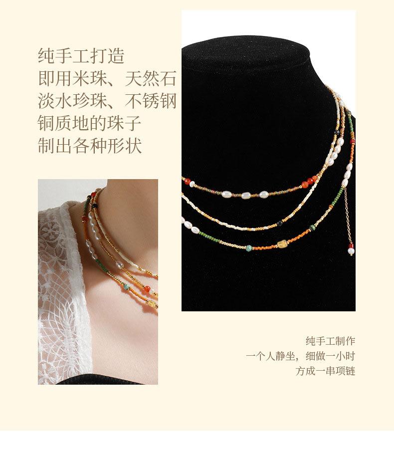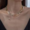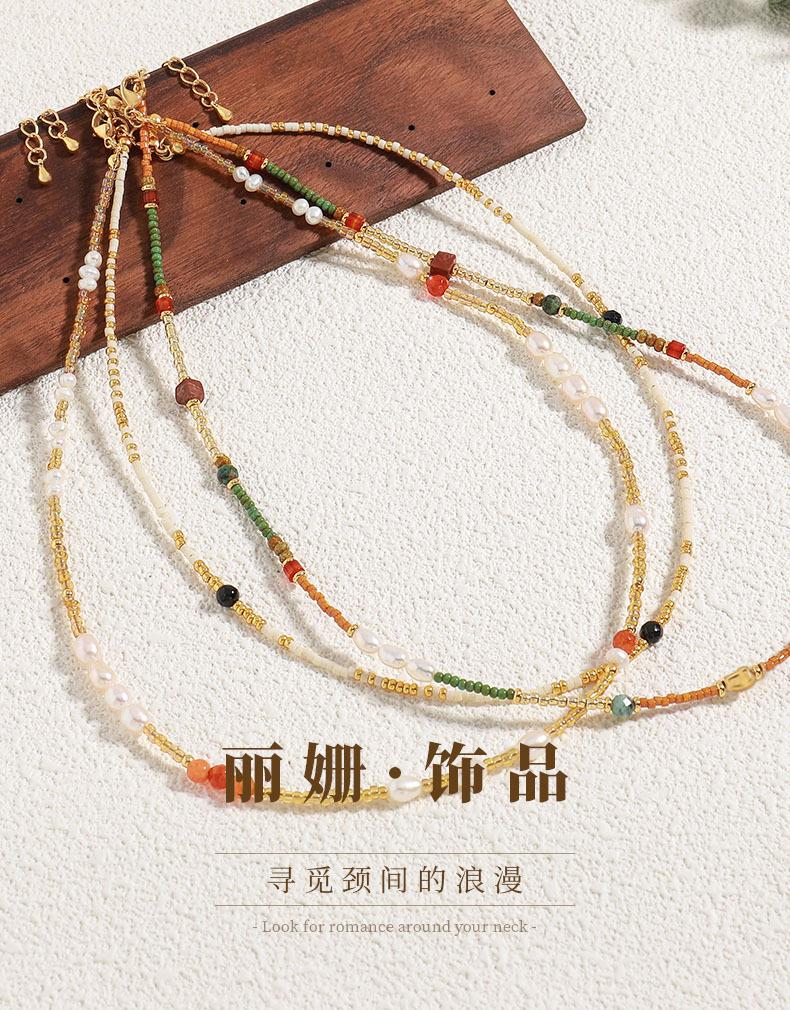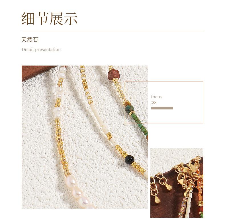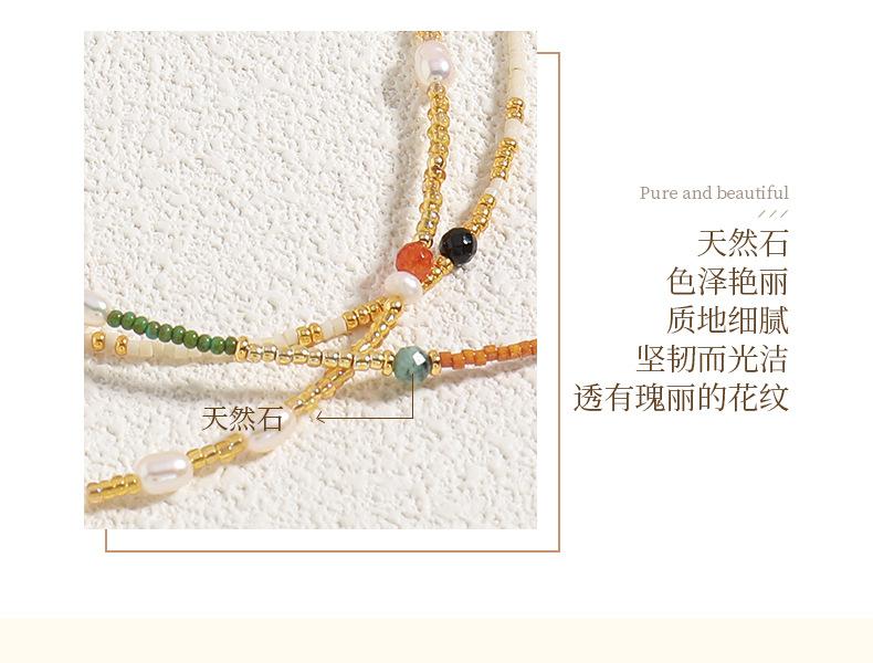 Collar de cuentas de piedra natural bohemio transfronterizo europeo y americano con diseño de nicho y cadena de clavícula de perlas de agua dulce apiladas