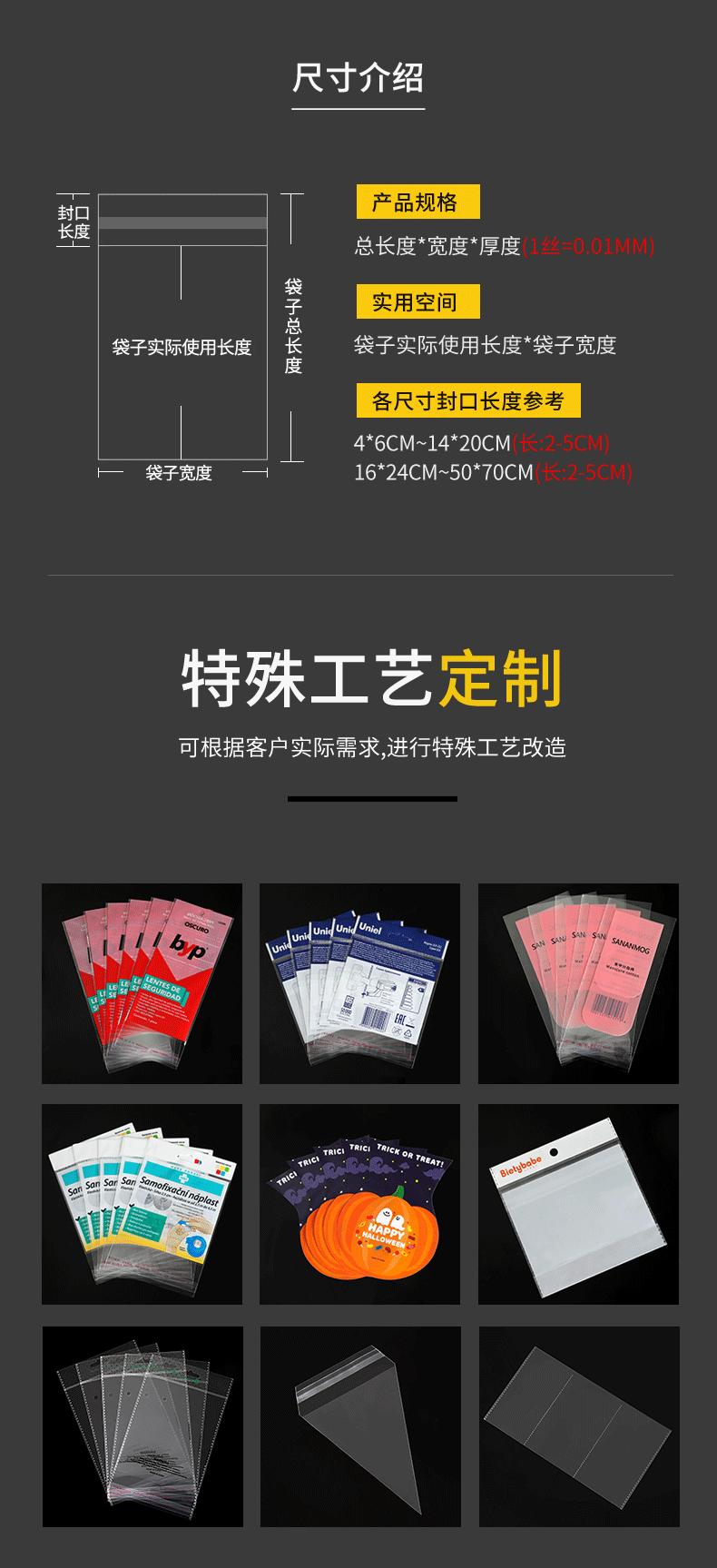 Bolsa autoadhesiva de polipropileno transparente, bolsa de plástico autoadhesiva, bolsa de embalaje transparente para ropa y joyas.