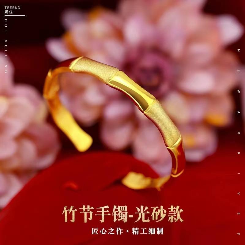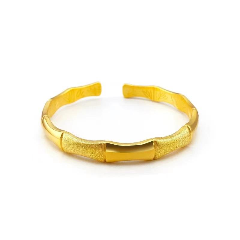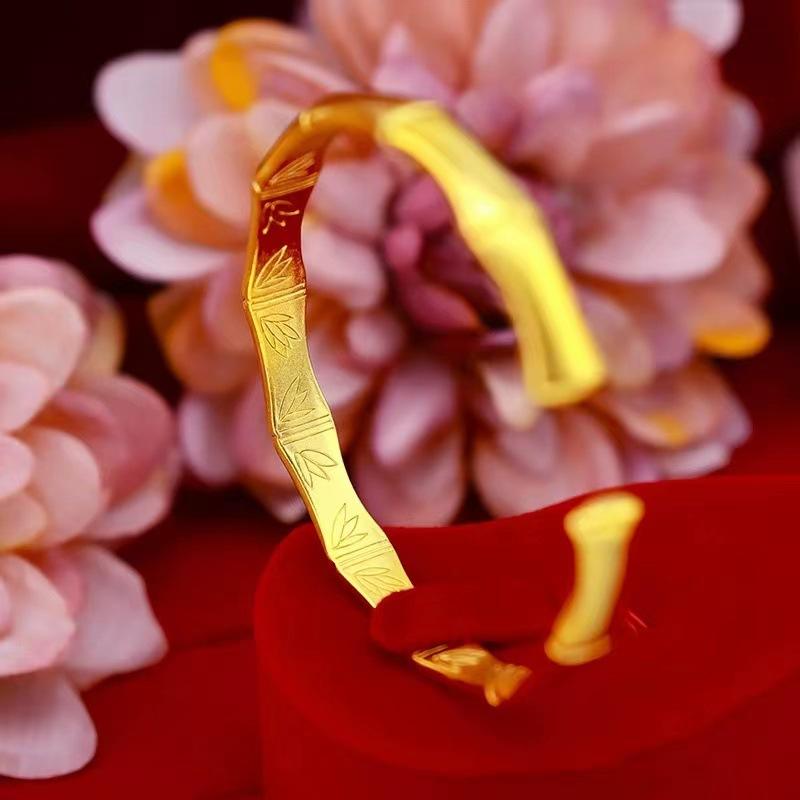 Pulsera de bambú abierta para mujer, nuevo estilo nacional, herencia de ley antigua, pie Festival de Oro, alto relieve, color dorado interior y exterior, pulsera de oro al por mayor