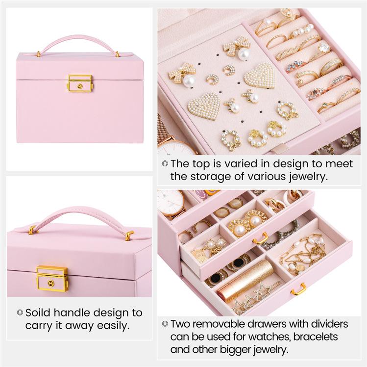 Nueva caja de joyería multicapa, caja de almacenamiento de joyería coreana, caja de almacenamiento de pendientes, pendientes, anillo, caja de joyería