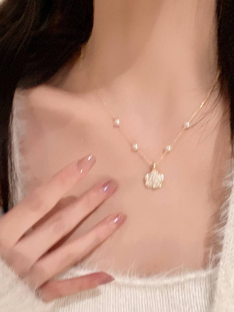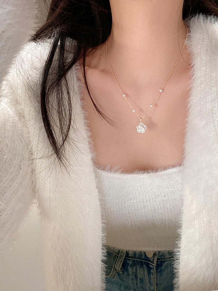 Collar de camelia con perlas de moda 2023 para mujer, ligero, de lujo, con diseño de cadena de clavícula y nicho.