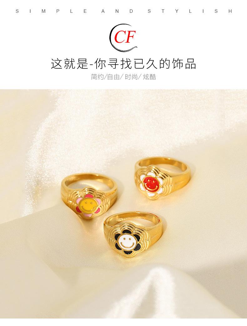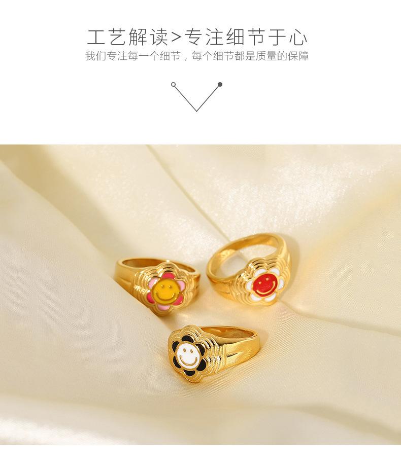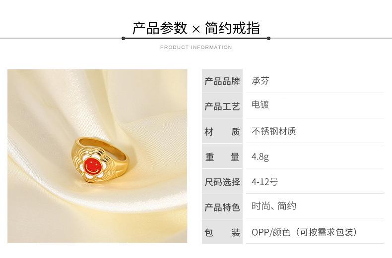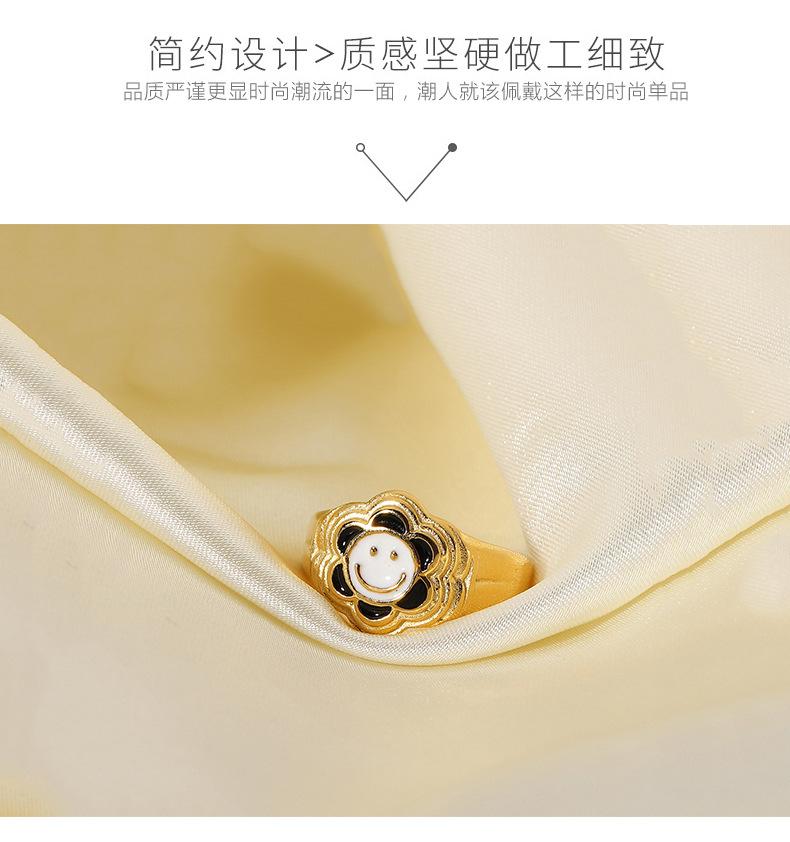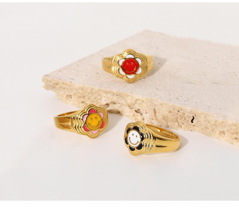 Anillo de acero inoxidable chapado en oro con cara sonriente de sol, popular entre Europa y América, diseño de moda creativo, anillo de oro para mujer