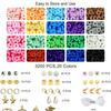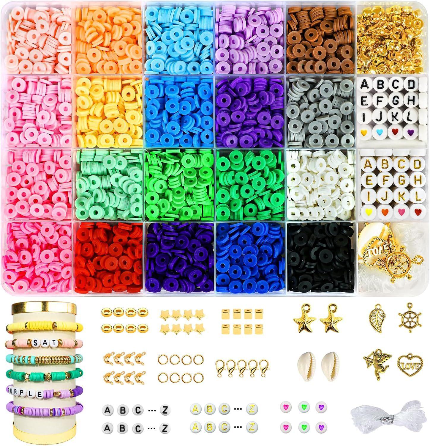 Juego perfecto para hacer pulseras: todo lo que necesita, aproximadamente 3200 cuentas de arcilla polimérica planas y 200 dijes (contiene cuentas de letras negras y doradas y cuentas de corazón de colores, cuentas doradas, cuentas de números, colgantes, cierres de langosta y más). Este completo y rico kit para hacer joyas está lleno de infinitas posibilidades para que su imaginación satisfaga todas sus necesidades de fabricación de pulseras y joyas.