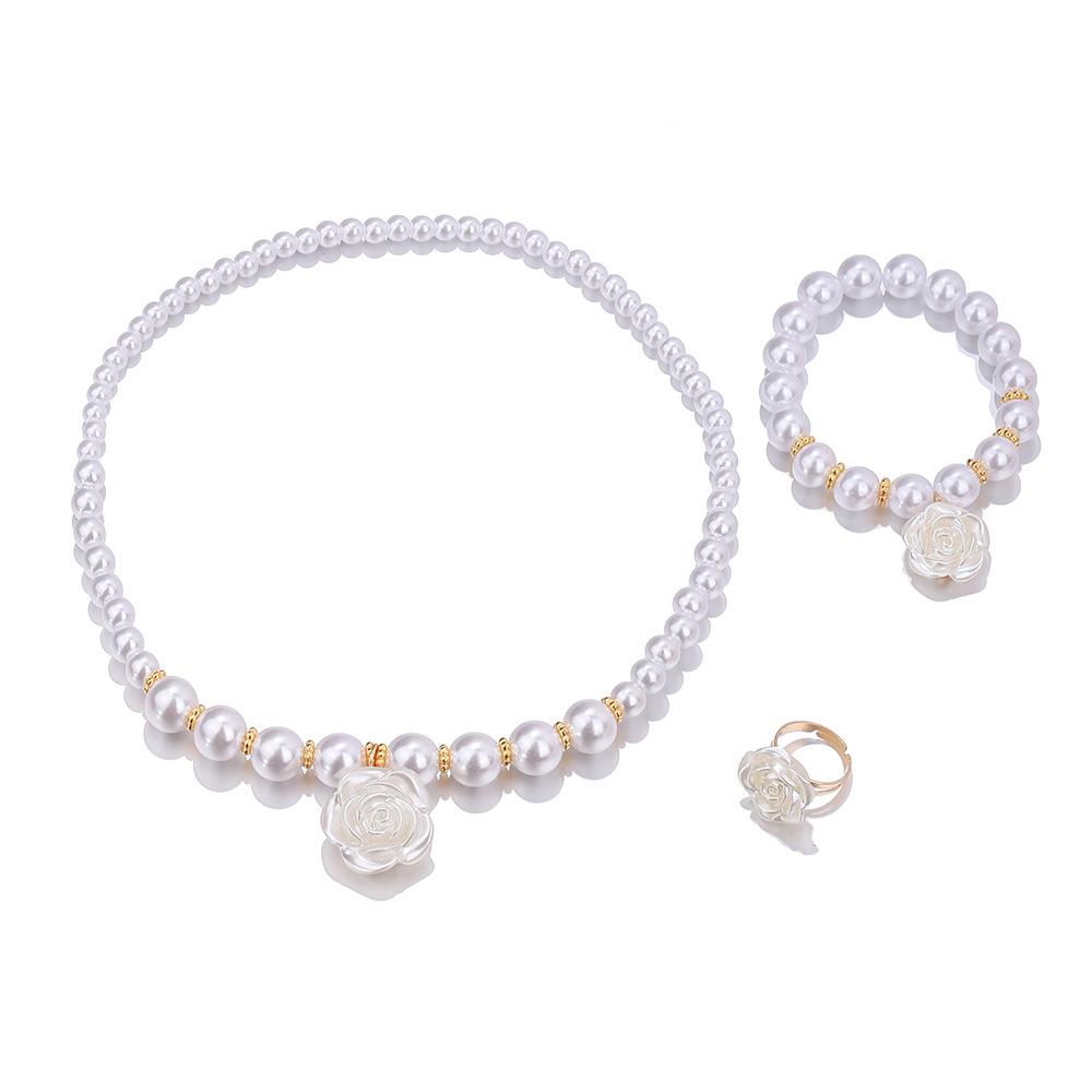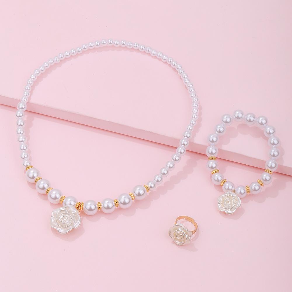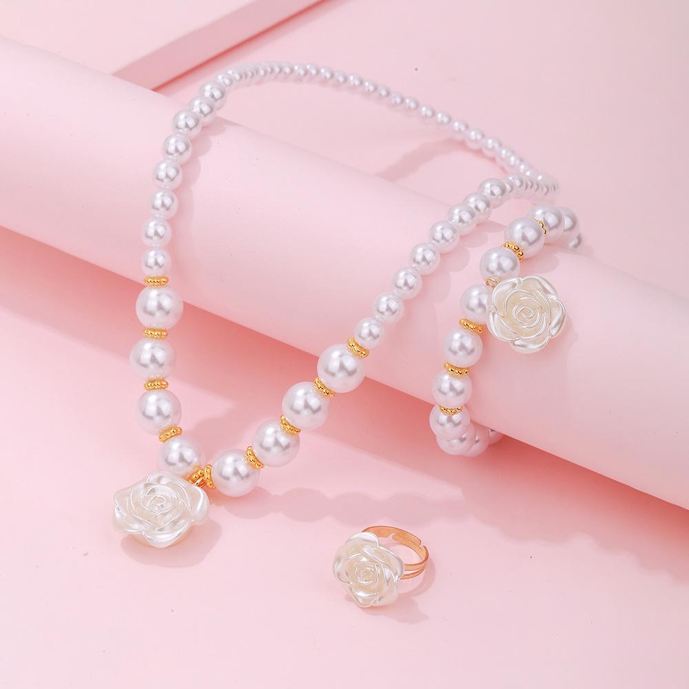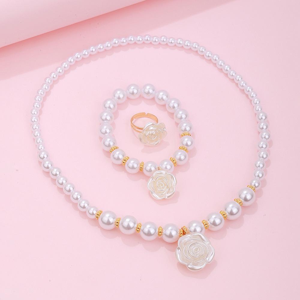 Collar de Mano de Perla Caliente Transfronterizo Cadena Estilo Xiaoxiang Hecho a Mano con Cuentas Sencillo Anillo de Camelia Traje Joyería para Niños