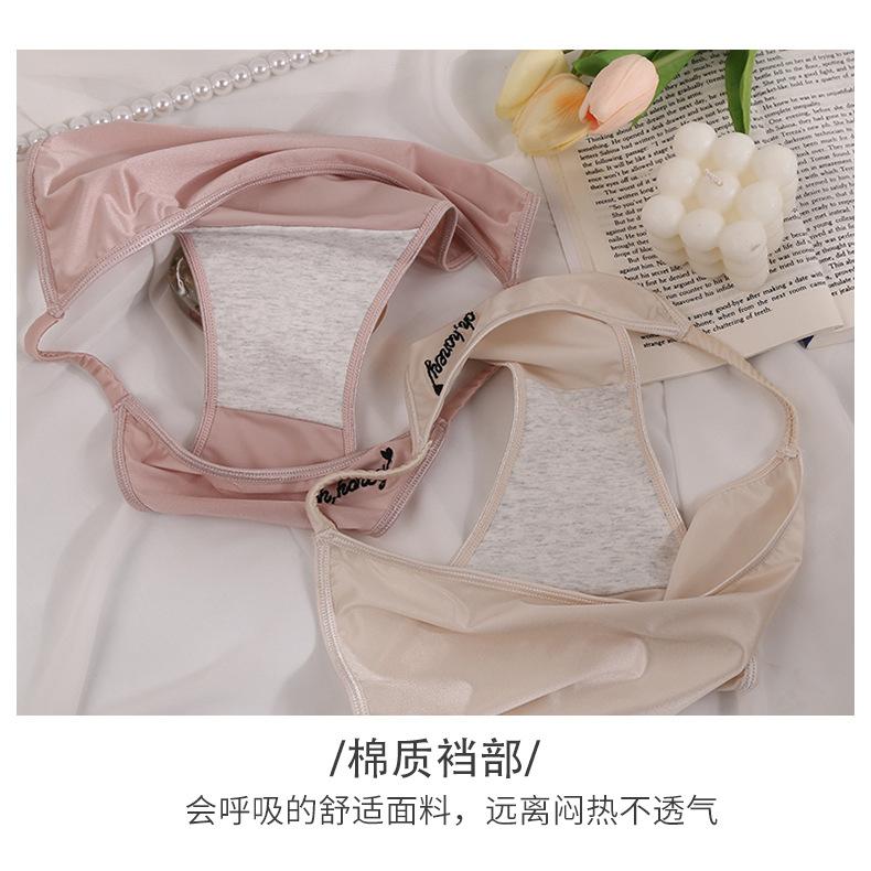 Braguitas Sexy Pure Desire de Seda de Hielo para Mujer, Calzoncillos Seamless de Tiro Bajo para Verano, Finos con Entrepierna de Algodón y Textura de Seda de Hielo