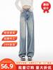 Jeans de Pierna Ancha de Tiro Alto de Color Claro para Mujer, Nuevo Estilo Primavera 2026, Corte Holgado, Adelgazantes, Pantalones Rectos de Largo Hasta el Suelo