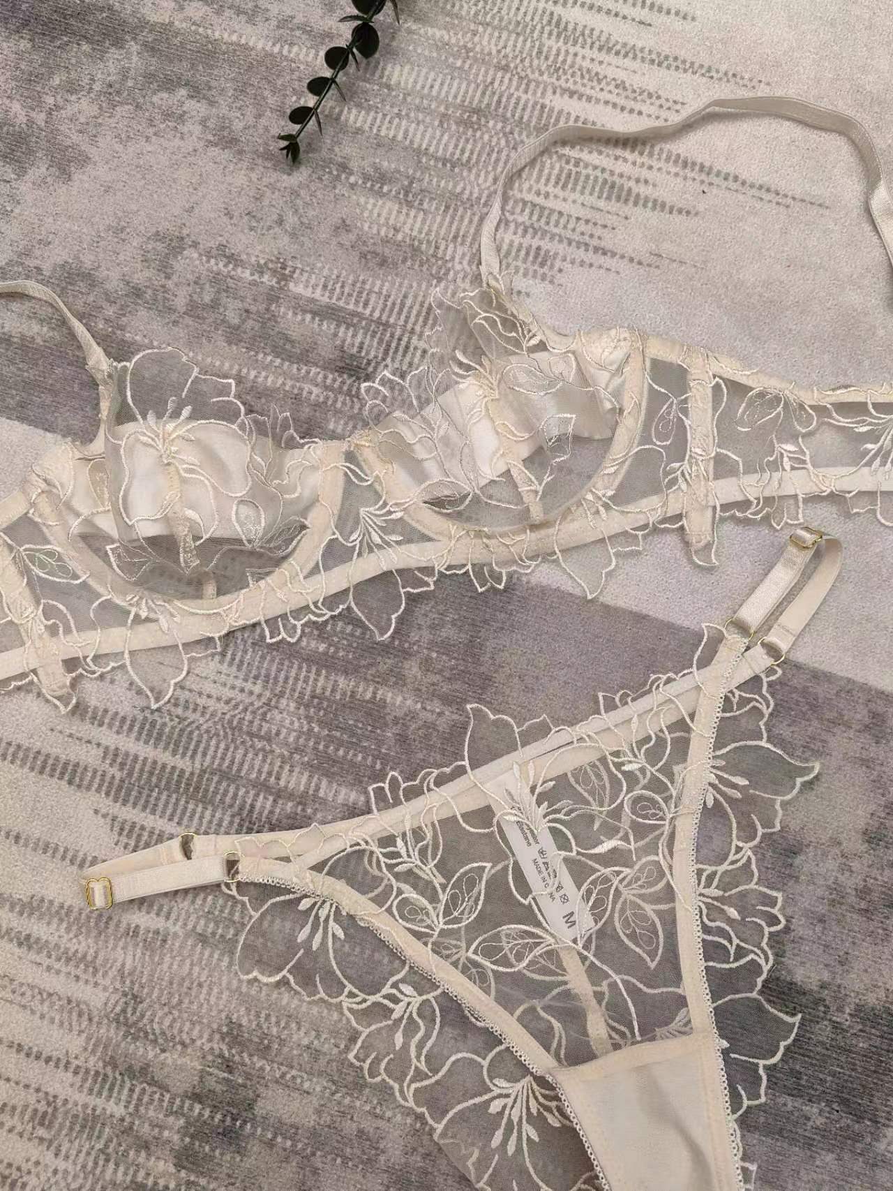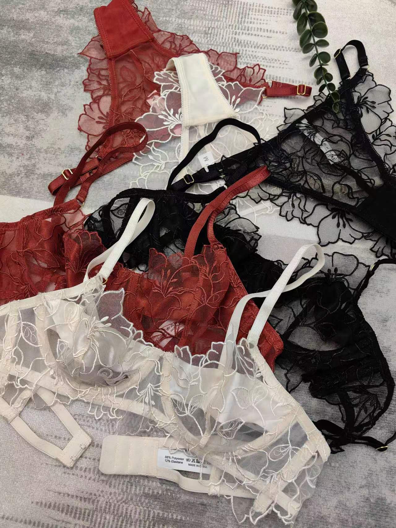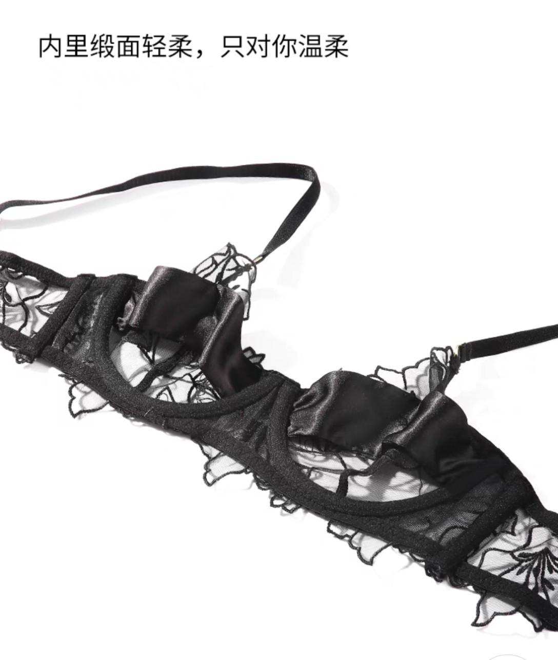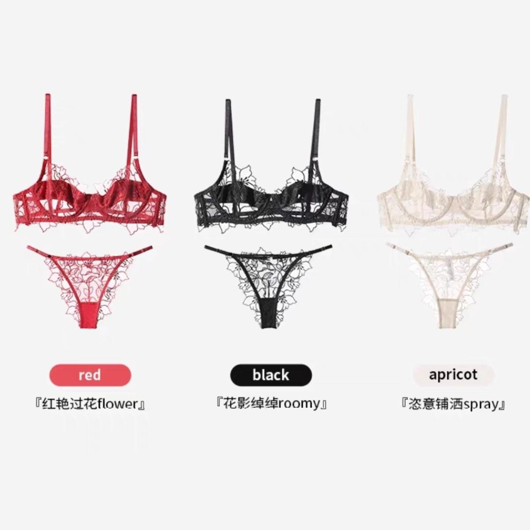 Ropa Interior Nueva Estilo Francés, Ropa Interior Sexy de Encaje Fino, Encaje para Busto Grande, Brasier Pequeño Push-Up para Mujer y Set de Íntimos