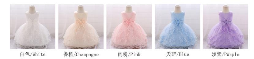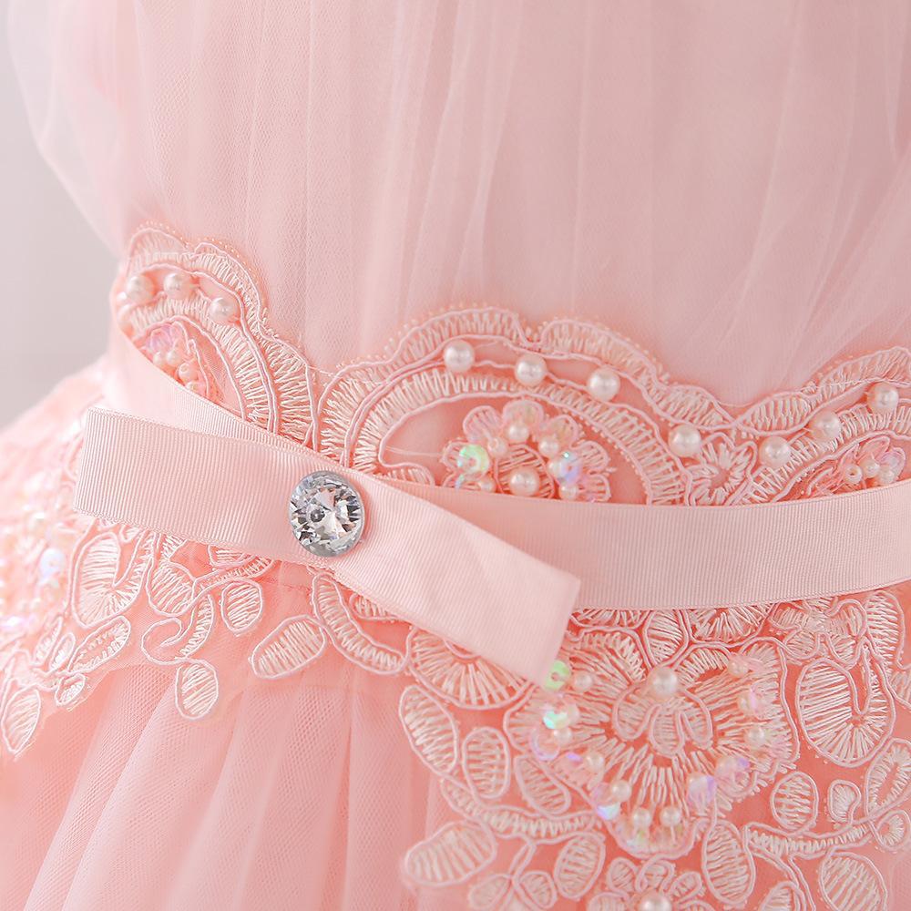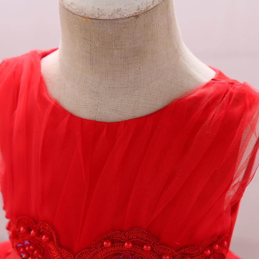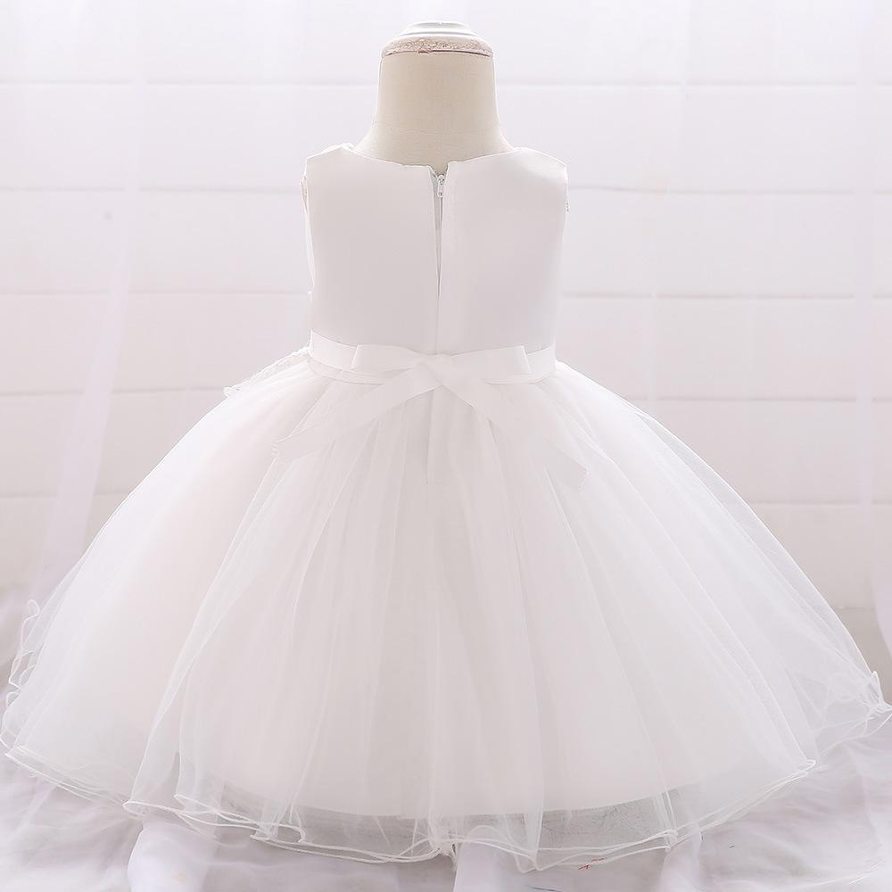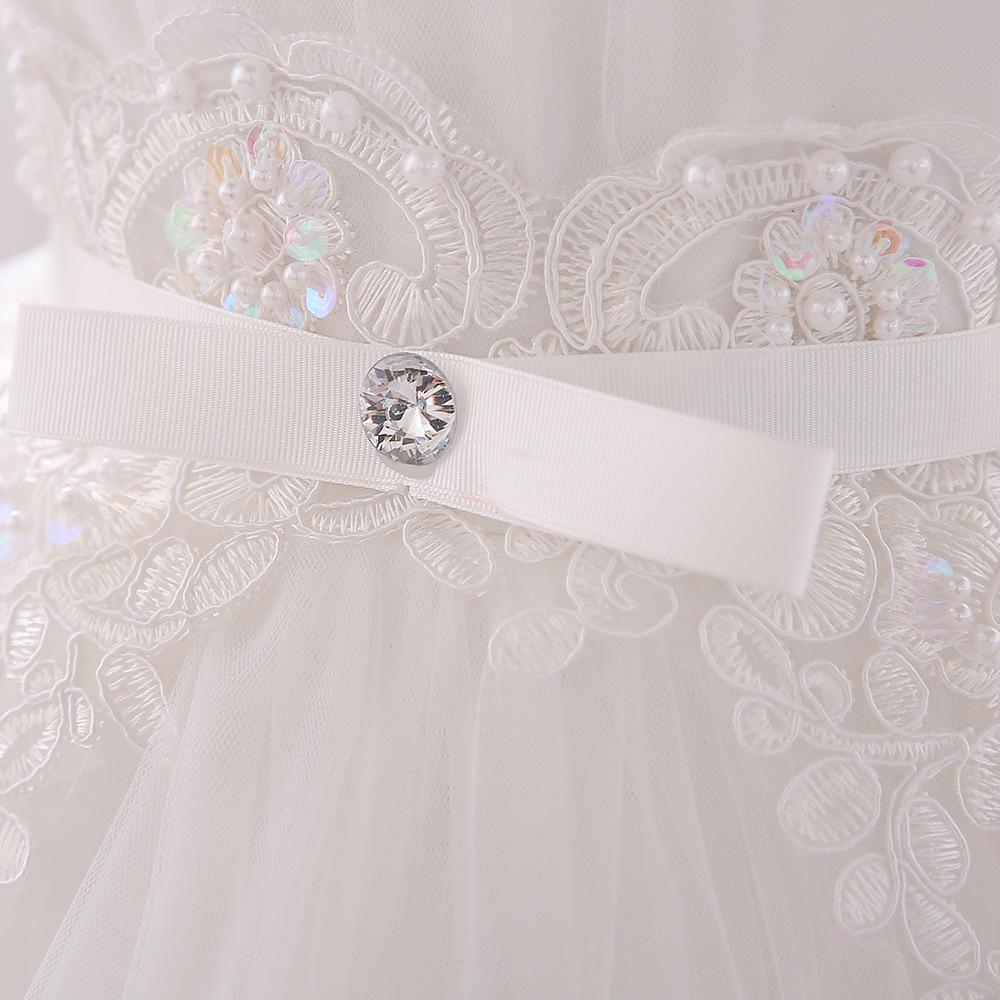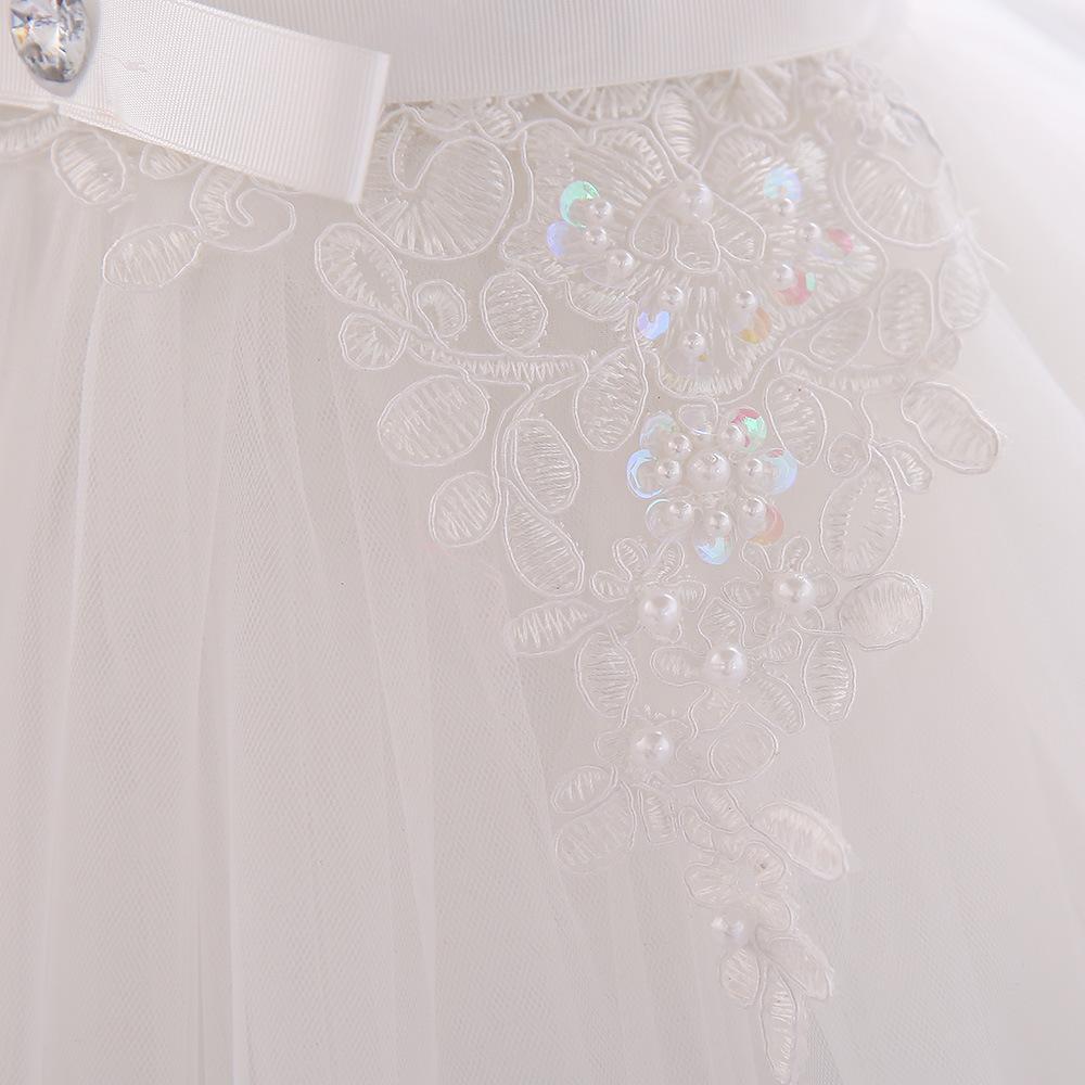 Vestido de bautizo con cola para bebés y niños pequeños, vestido de malla con lazo para banquete de primer cumpleaños de bebé, vestido de princesa plisado para niña de las flores de boda