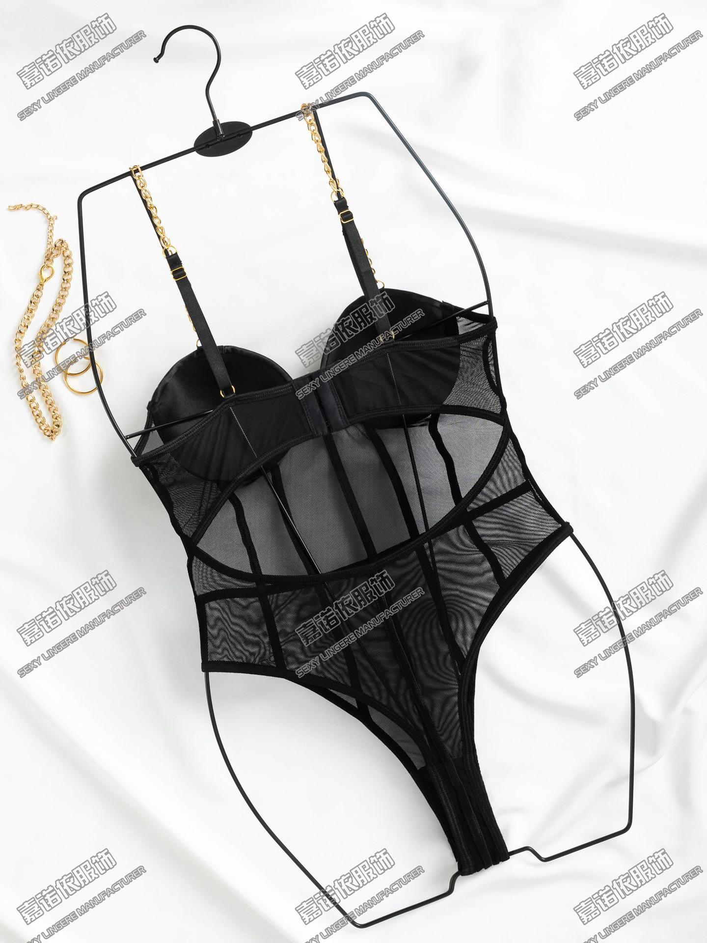 Amazon Estilo Europeo y Americano Malla Cadena de Metal Transparente Lencería Sexy Uniforme Suministro de Ventas Transfronterizas Exclusivamente para Artículos Ajustados