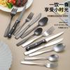 Cubiertos de Acero Inoxidable con Mango Cuadrado Brillante Transfronterizos, Cuchillo, Tenedor y Cuchara al por Mayor en Stock para Uso Doméstico y Restaurantes Occidentales, Juego de Cuchillo, Tenedor y Cuchara para Bistec
