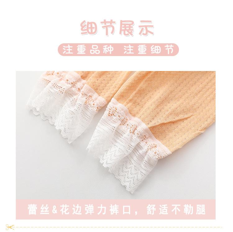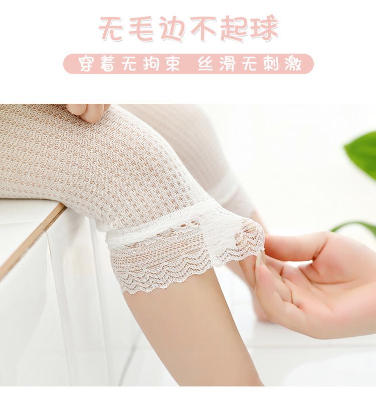 Este estilo está hecho de algodón mercerizado chamuscado de fibra larga de título 60 como materia prima principal. Tiene una superficie lisa y no presenta partículas de algodón. Los bordes crudos del hilo de algodón han sido procesados, por lo que no hace bolitas. Nuestro algodón mercerizado también tiene función antibacteriana. La jeringa grande de 200 agujas está delicadamente procesada, es ligera sobre la piel y no hace bolitas. Se siente fresca sobre la piel en verano. Es un cómodo y popular par de pantalones capri de encaje a prueba de mosquitos, anti-exposición y a prueba de sol para este verano.