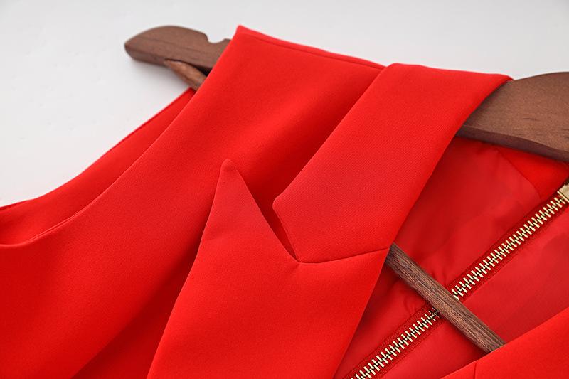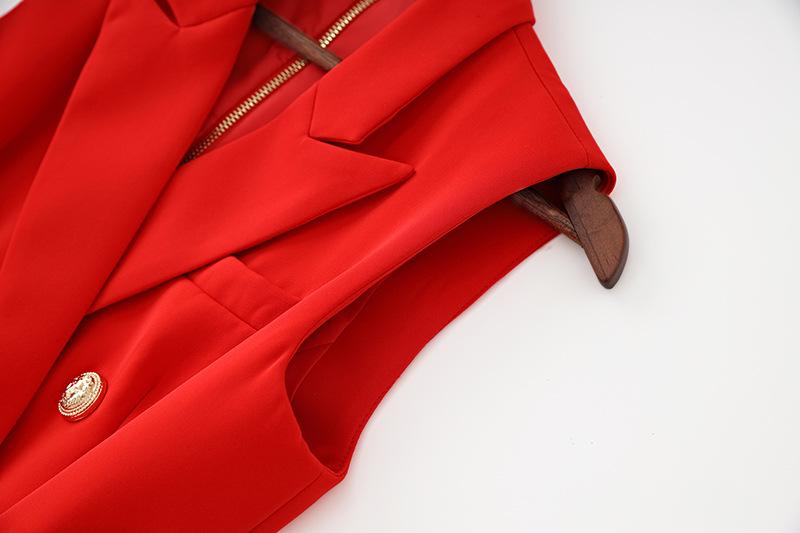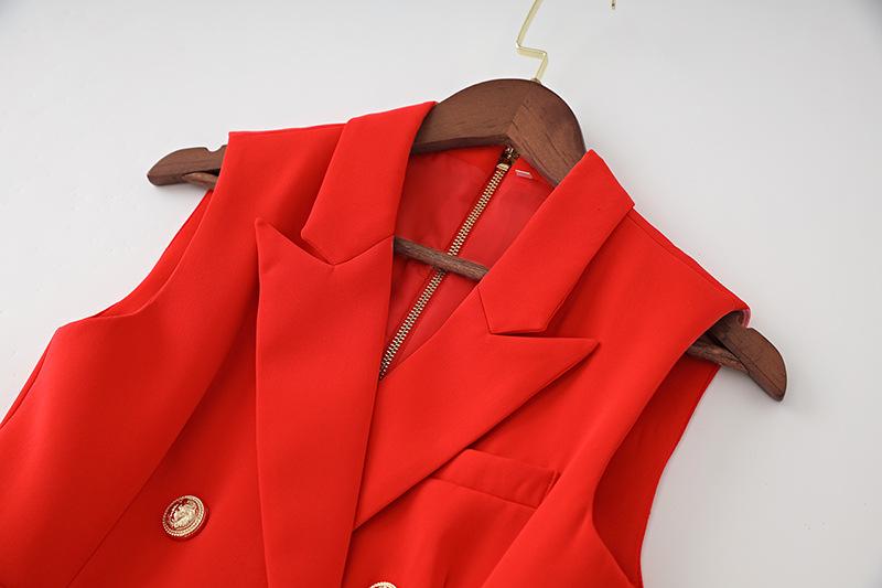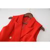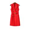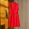 Traje Vestido Rojo Metálico de Cuatro Piezas sin Mangas Nuevo 2023 Cinturón con Hebilla de Cuatro Piezas Chaleco Ajustado Versátil Elegante