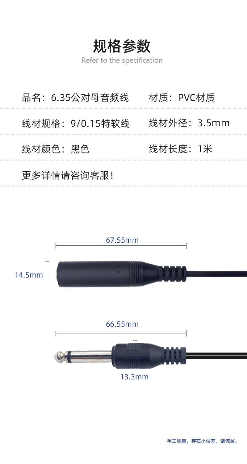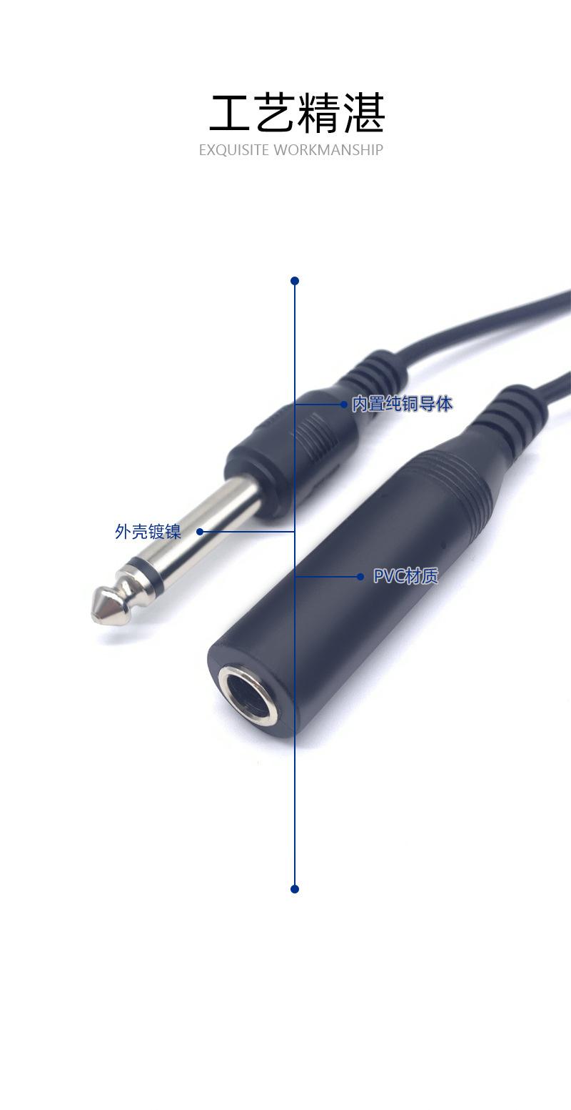 Cable de extensión de audio macho a hembra de 6,35 mm para micrófono, cable de extensión de audio para guitarra, cable de extensión mono de 6,35 mm y 6,5 mm.
