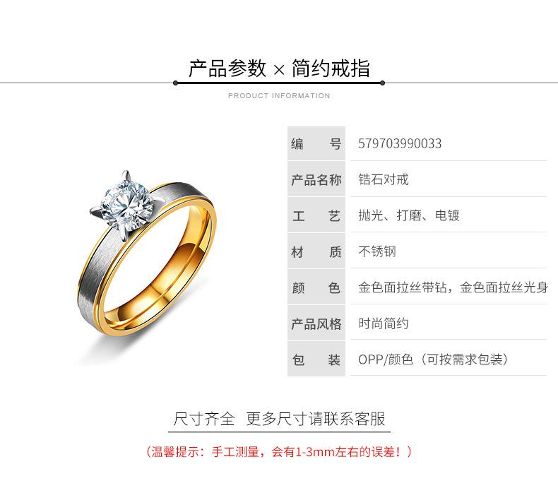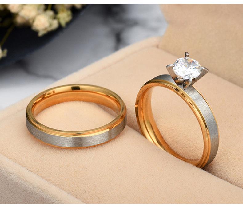 Nuevo anillo de acero de titanio transfronterizo europeo y americano para pareja, anillo simple de acero inoxidable con circonita, joyería