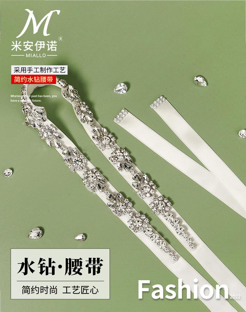 Nuevos accesorios de boda de alta gama de Amazon, vestido de novia, cinturón de diamantes de imitación, funda de cintura nupcial hecha a mano.