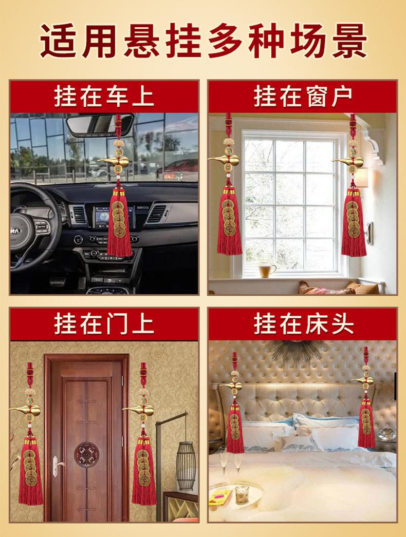 Lucky Hulu Double Tassel Five Emperors Money Pendant