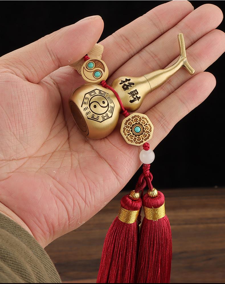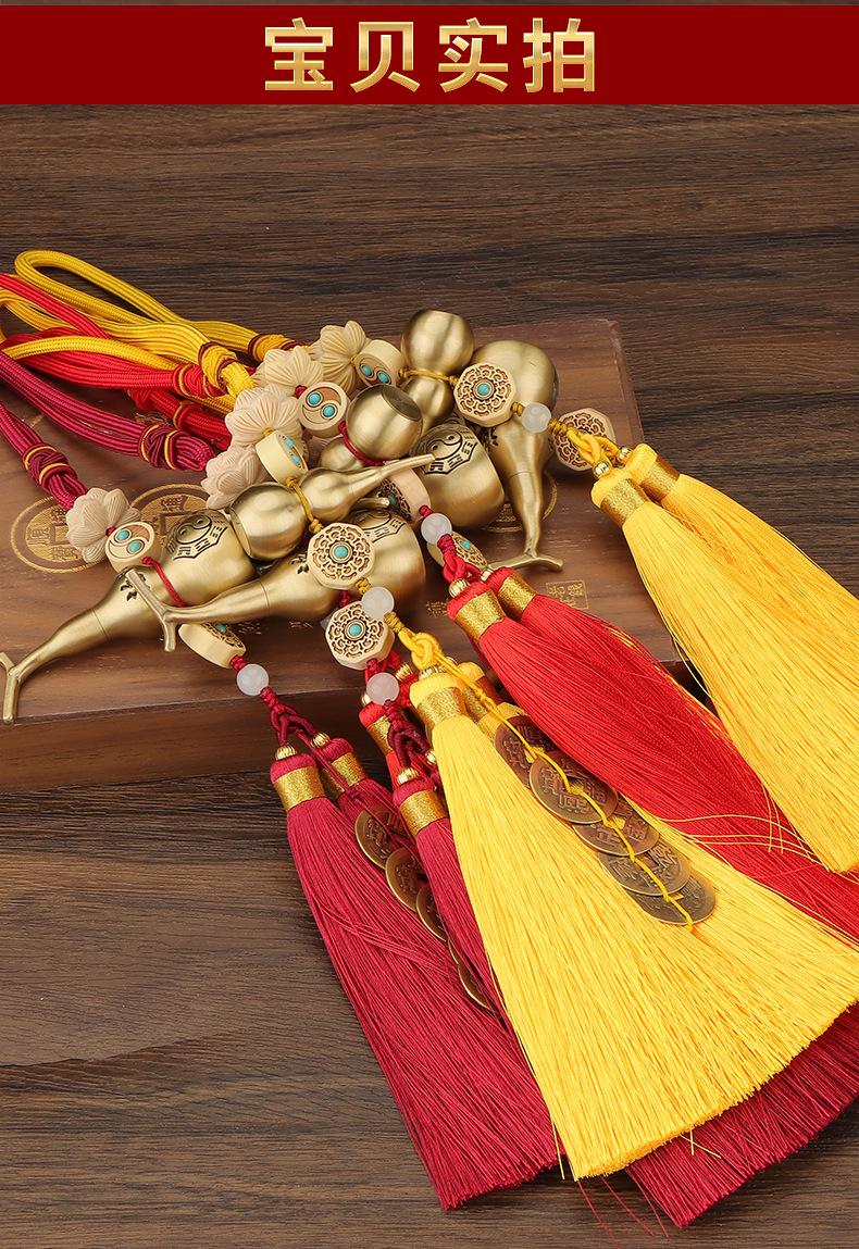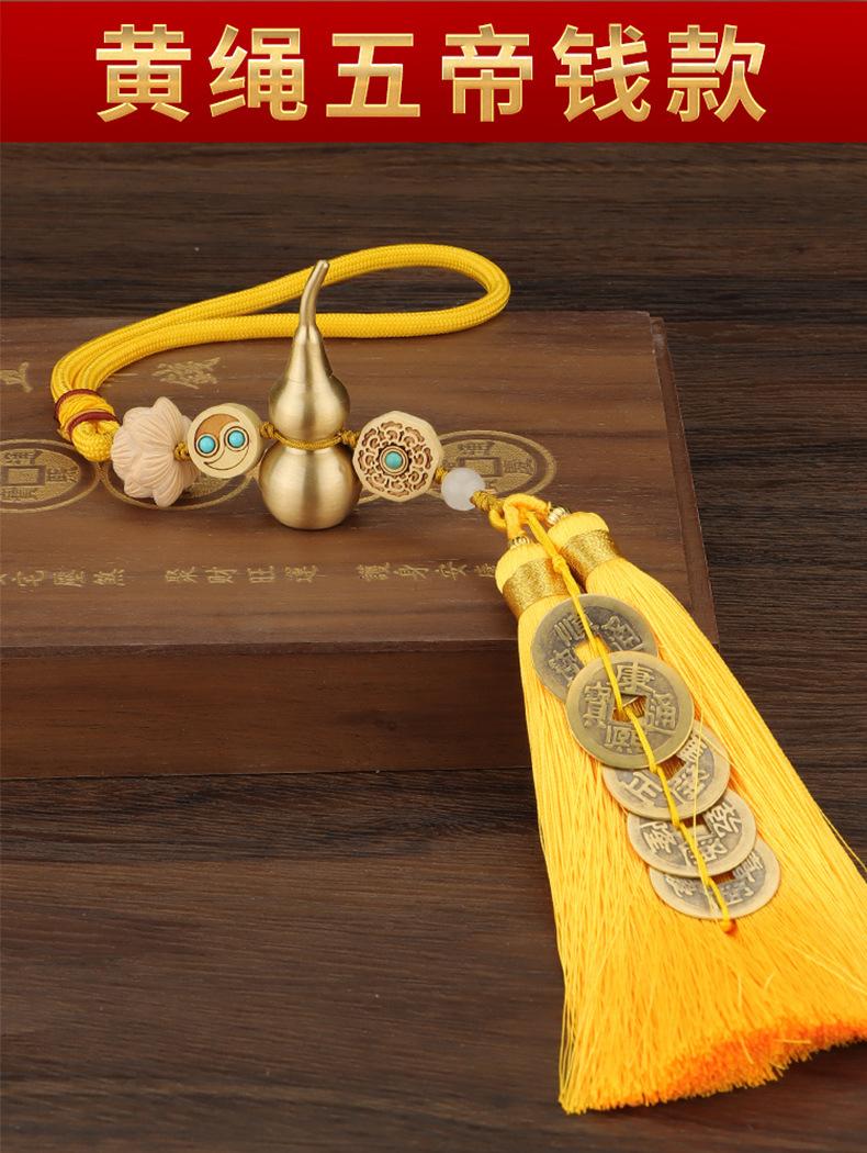 Lucky Gourd Yellow Rope Double Tassel Five Emperors Money Pendant