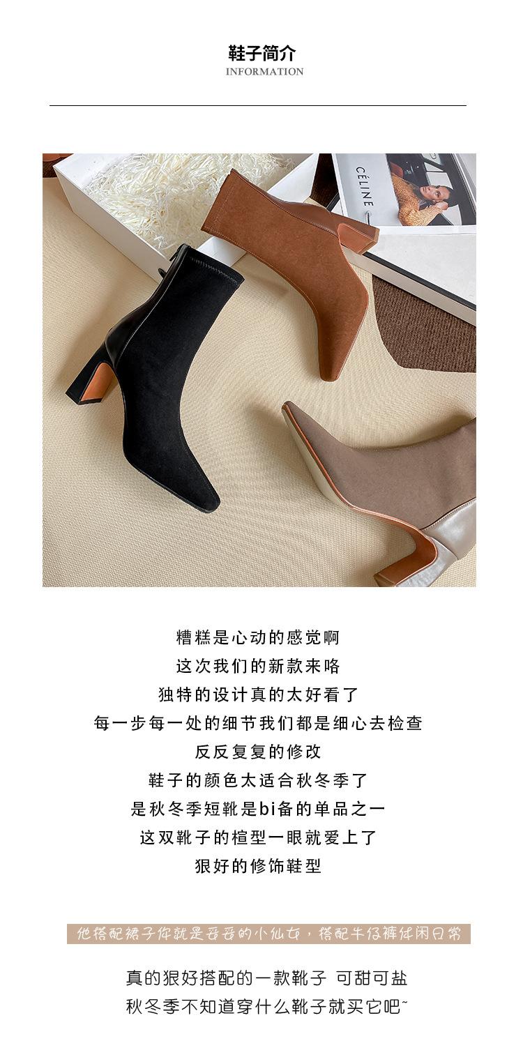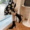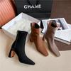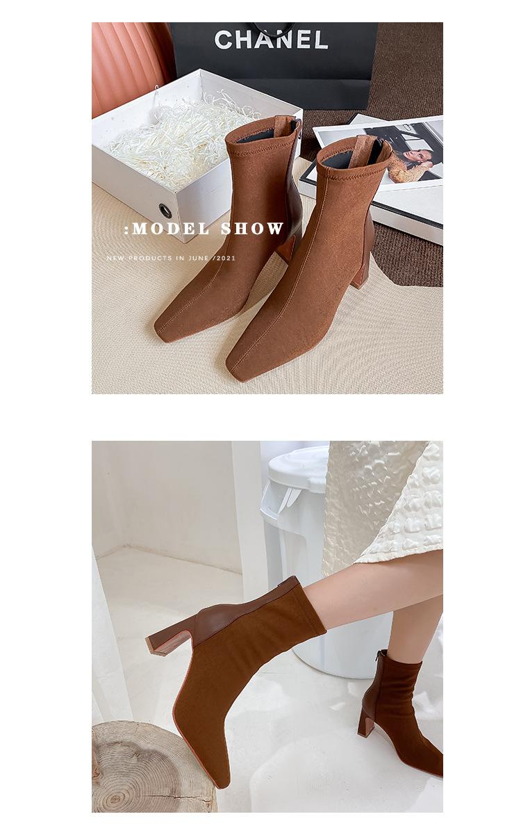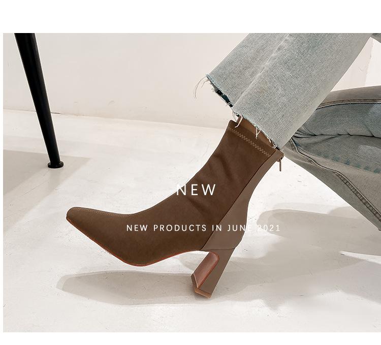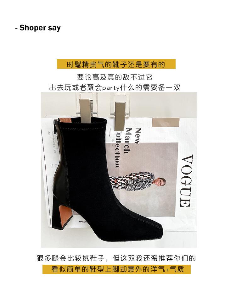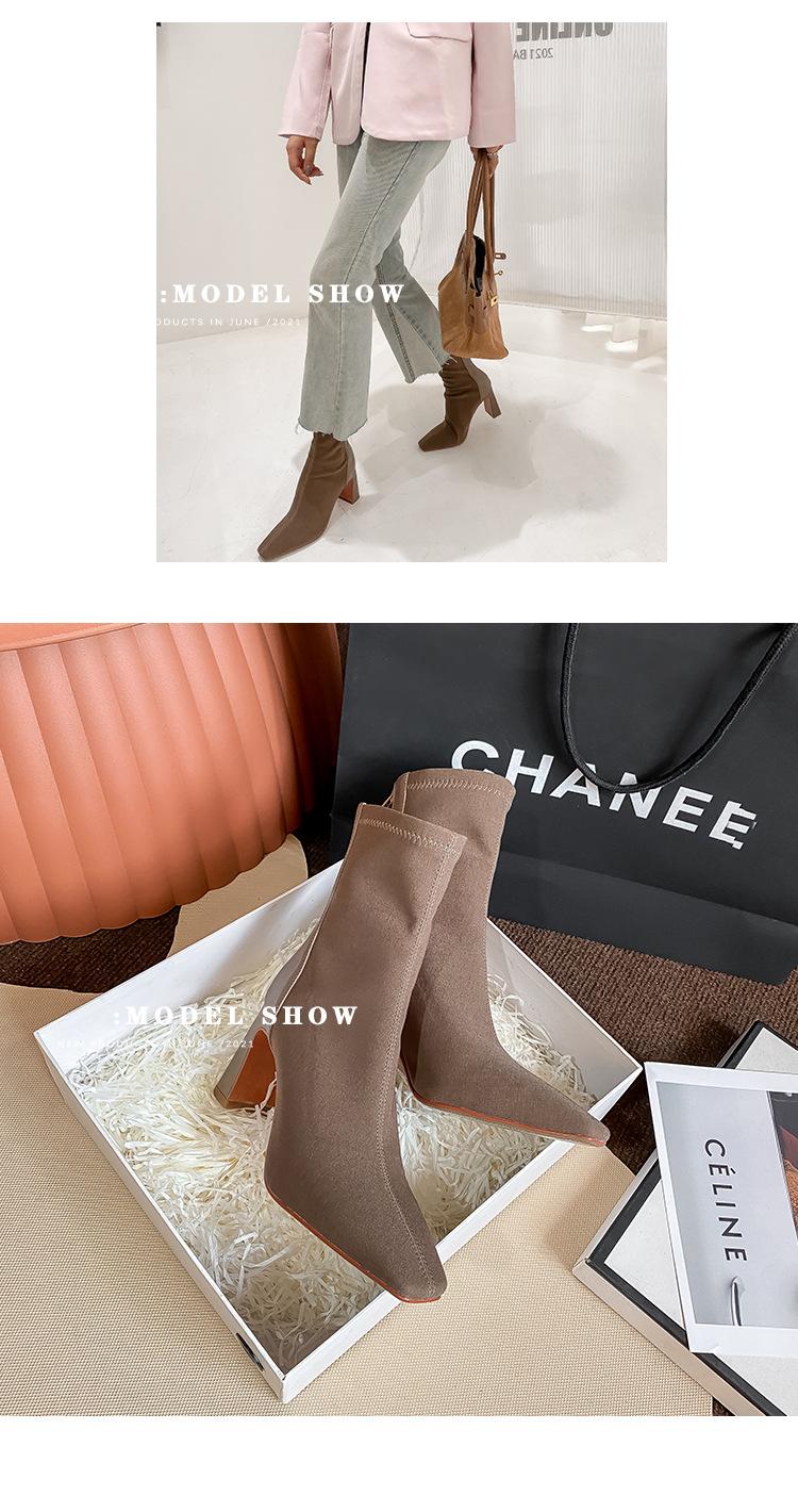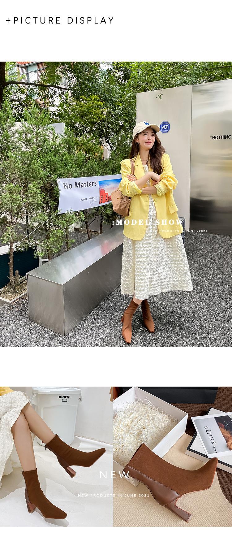 Botines de Tobillo de Tacón Alto para Viajero OL de Punta Cuadrada de Cuero 2024 Nuevo Estilo Tacón Grueso Botas Elásticas Combinables Botas Delgadas Casual Combinables