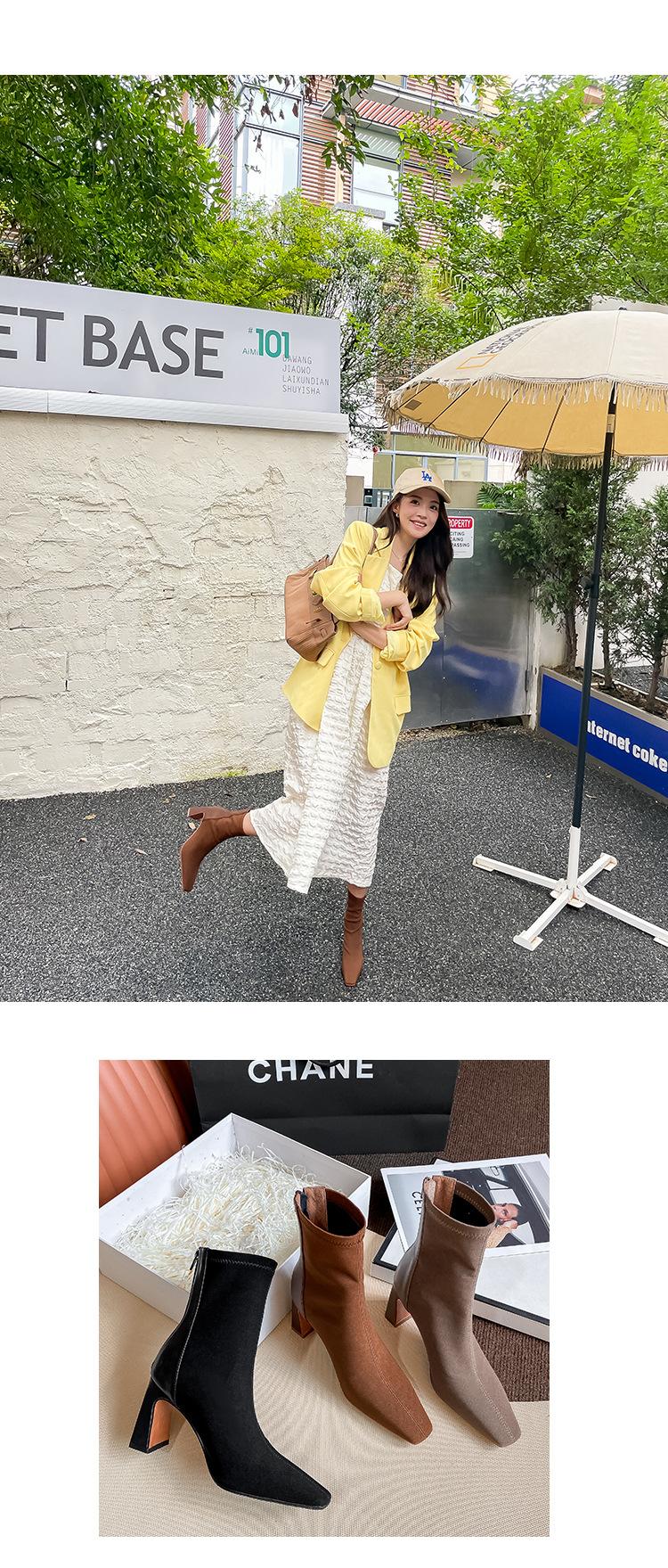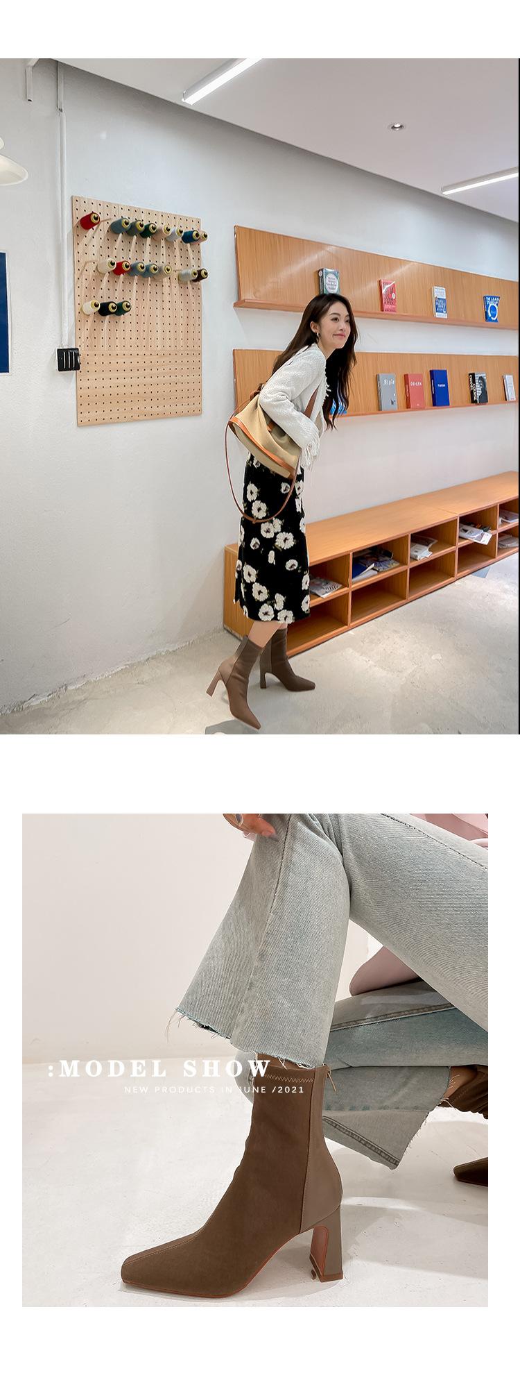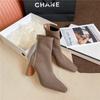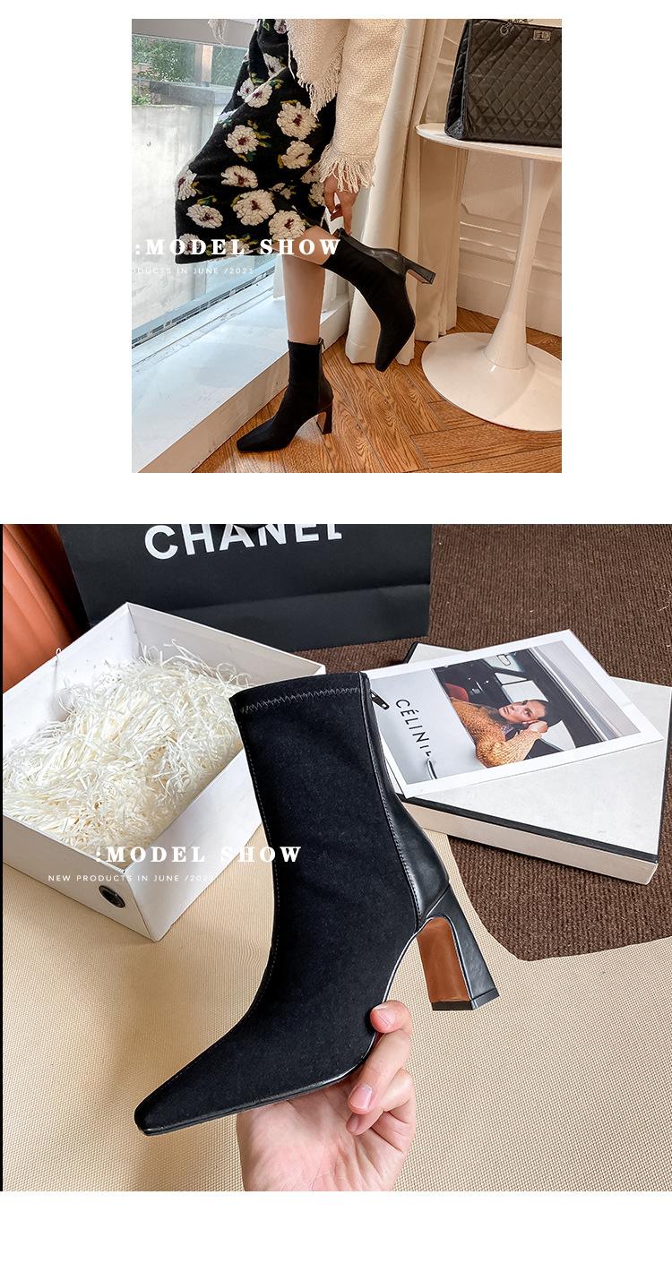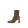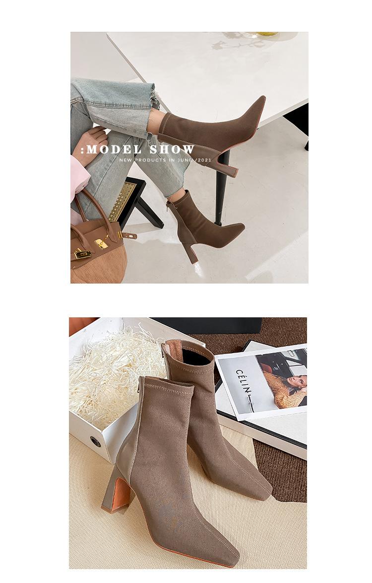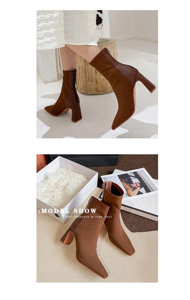 Botines de Tobillo de Tacón Alto para Viajero OL de Punta Cuadrada de Cuero 2024 Nuevo Estilo Tacón Grueso Botas Elásticas Combinables Botas Delgadas Casual Combinables