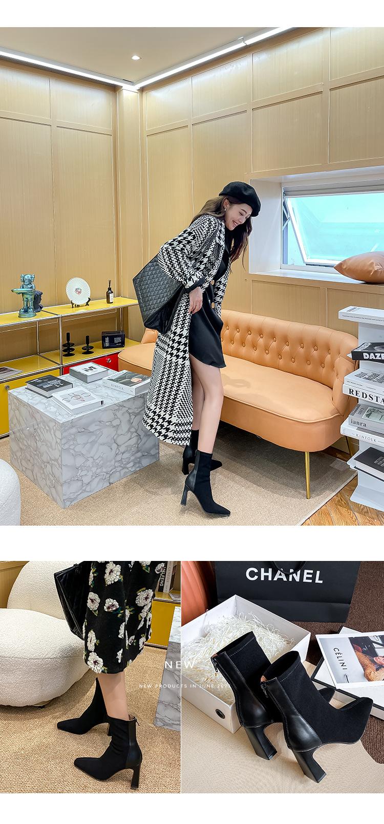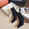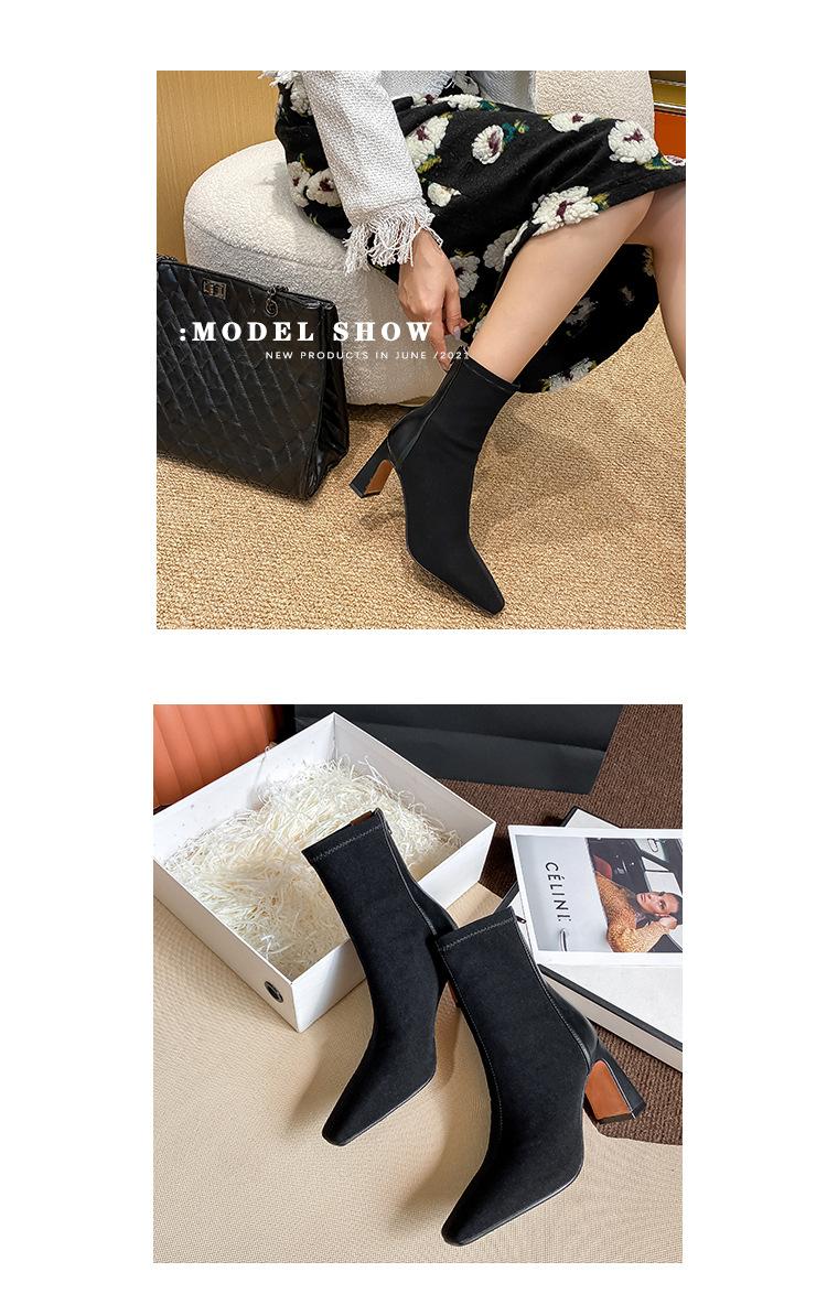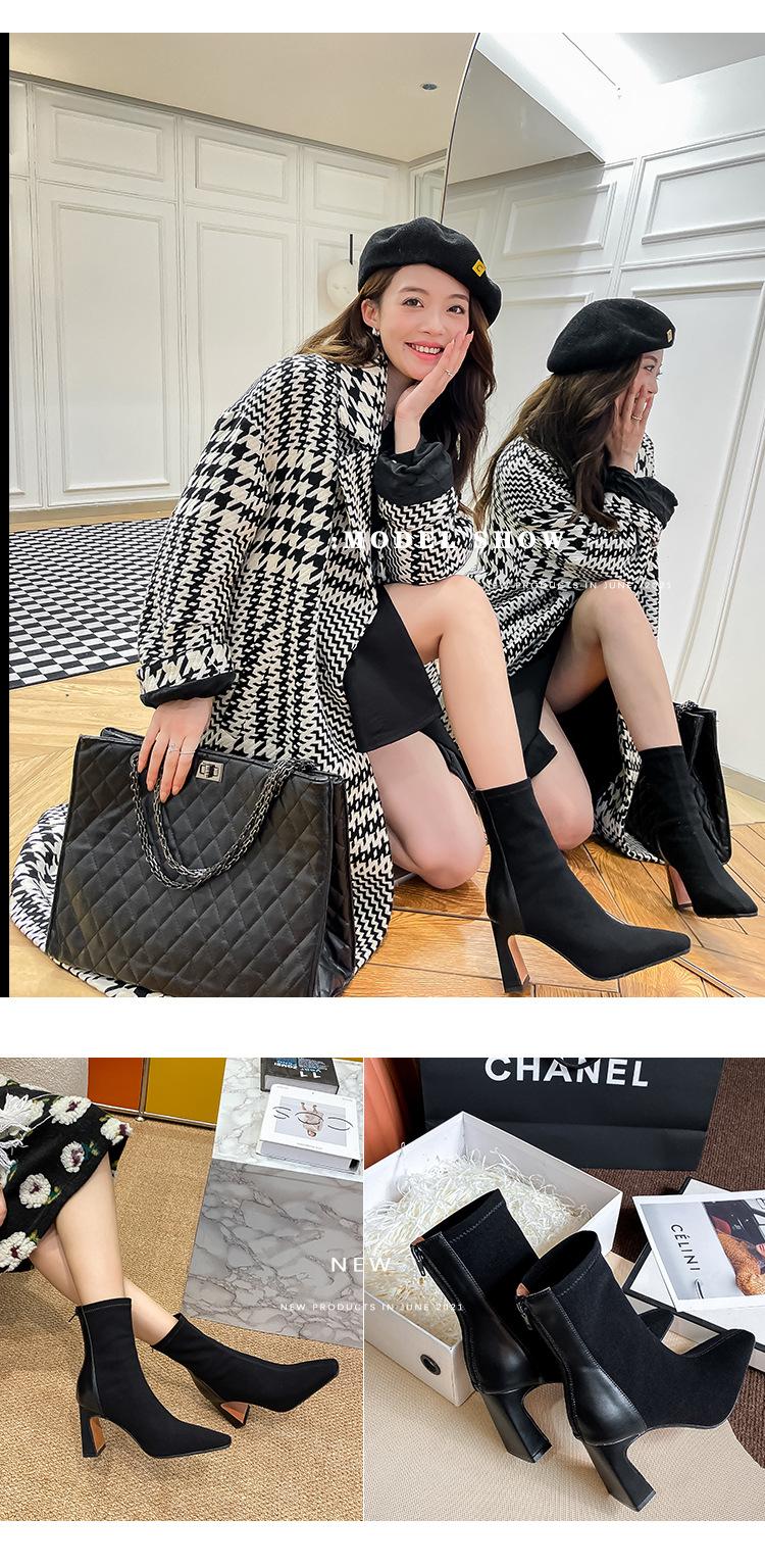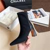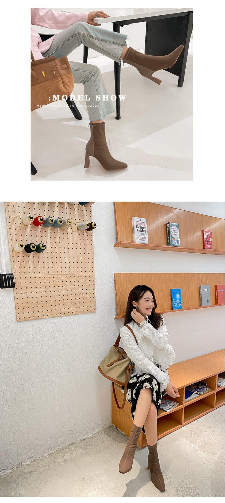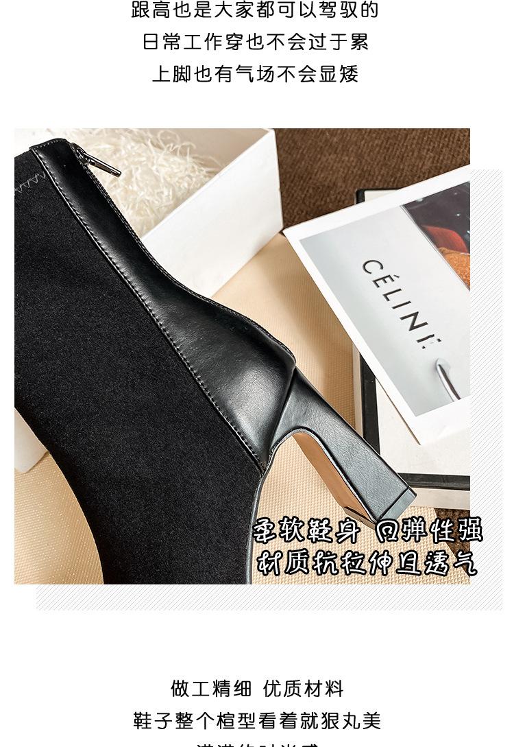 Botines de Tobillo de Tacón Alto para Viajero OL de Punta Cuadrada de Cuero 2024 Nuevo Estilo Tacón Grueso Botas Elásticas Combinables Botas Delgadas Casual Combinables