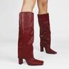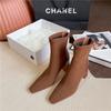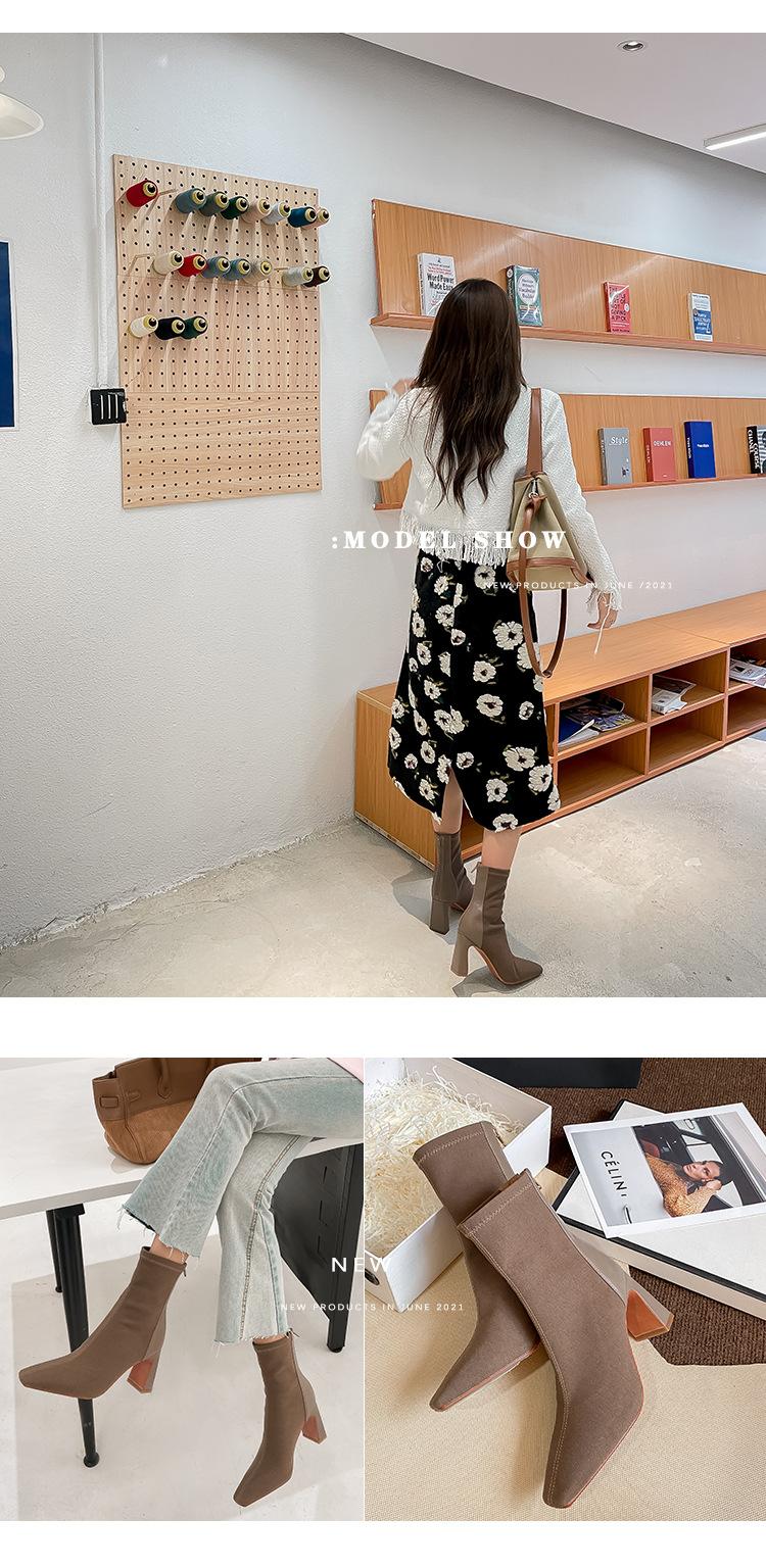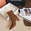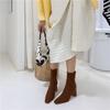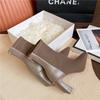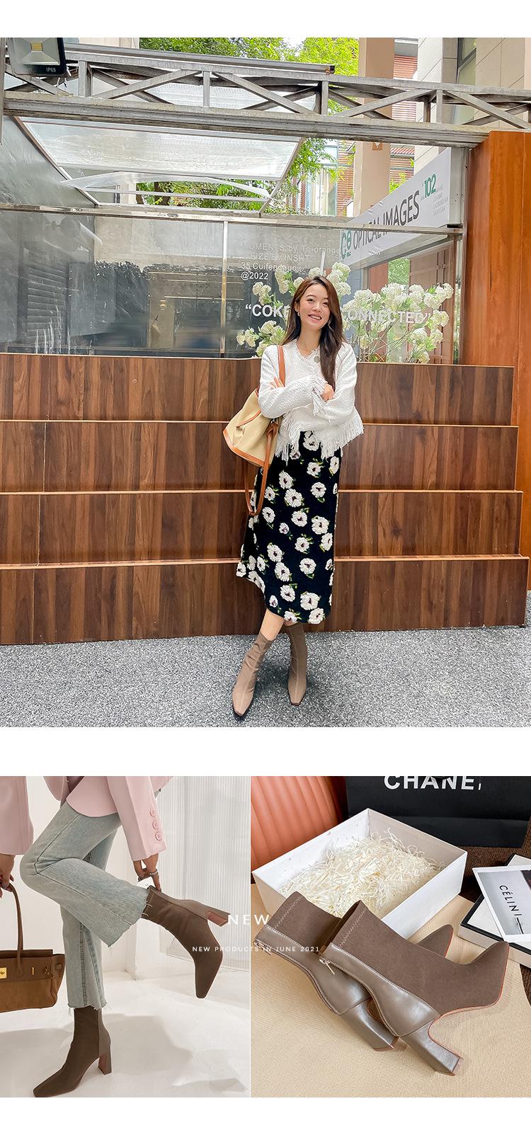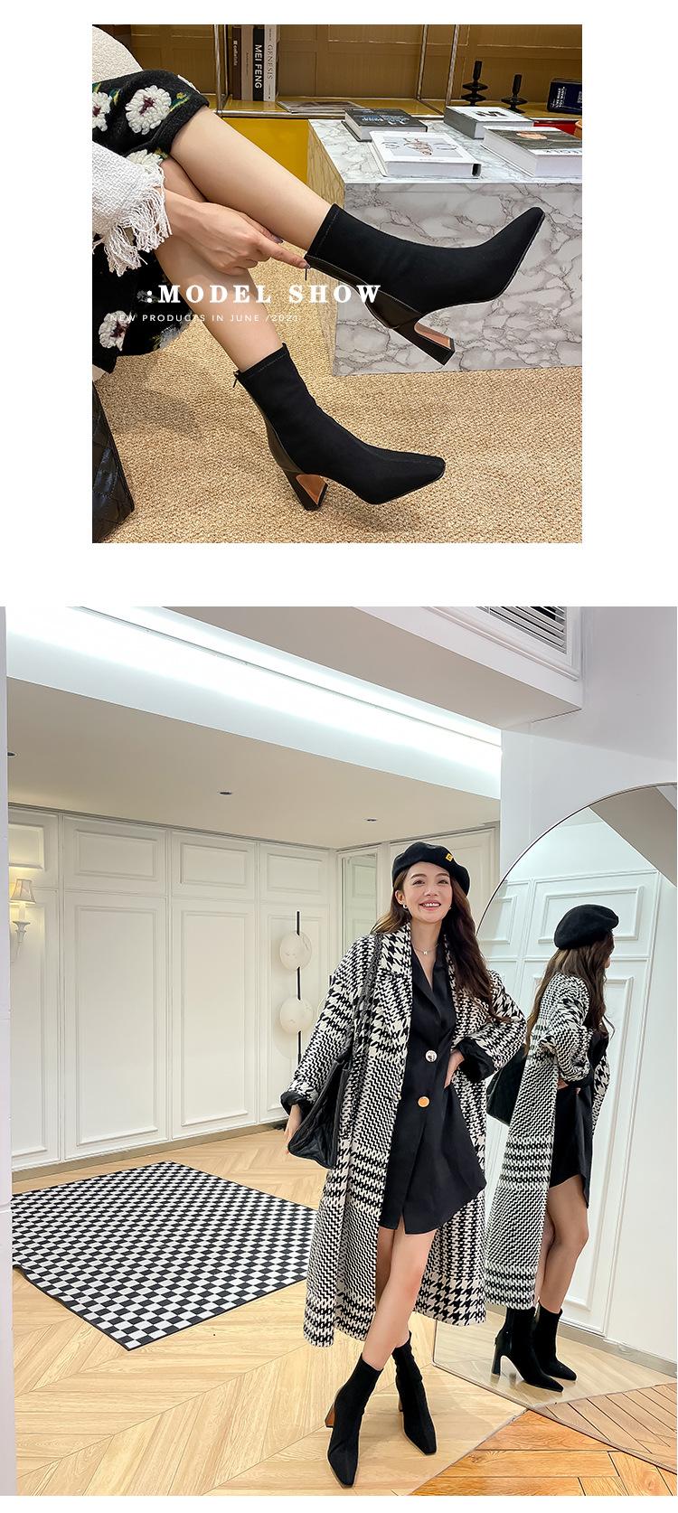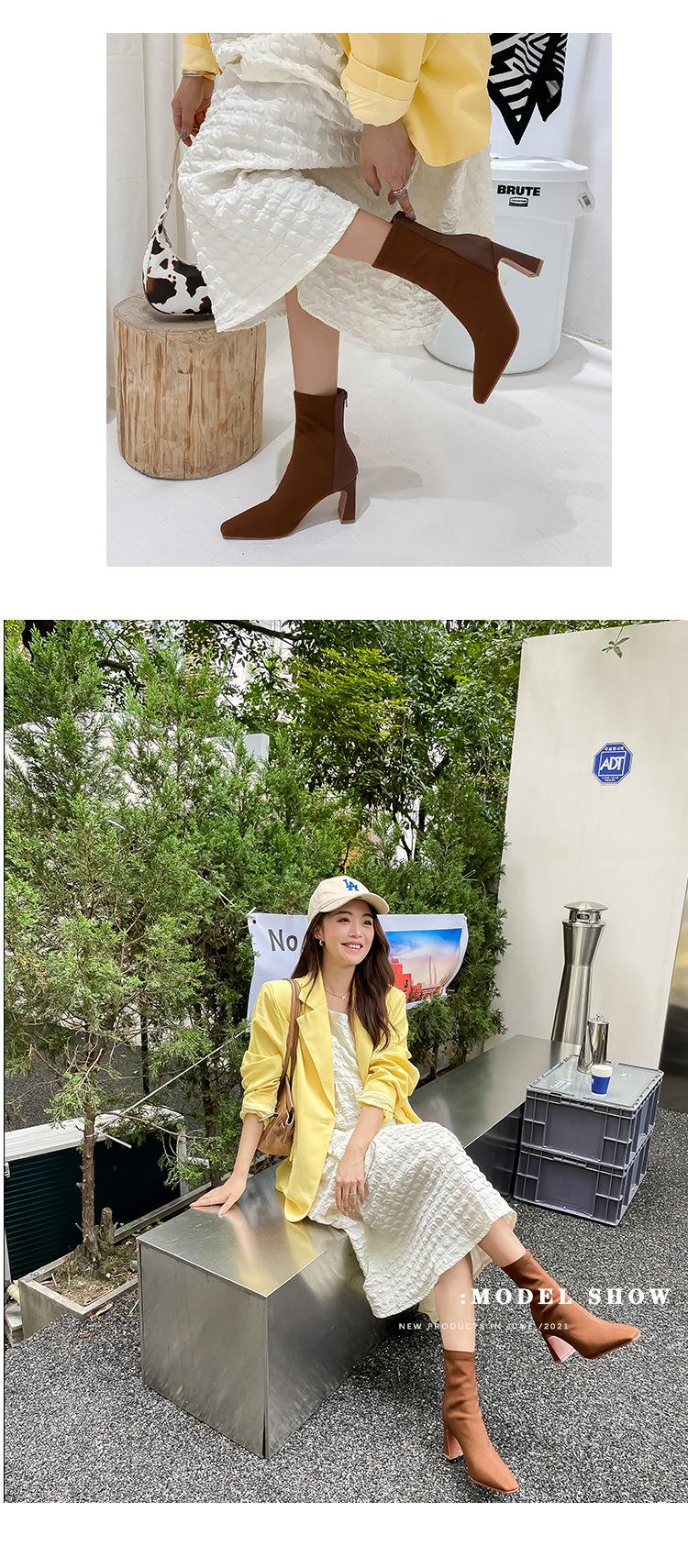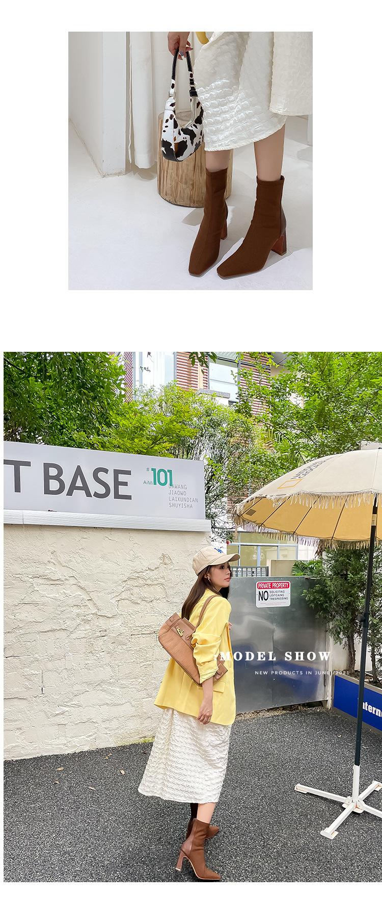 Botines de Tobillo de Tacón Alto para Viajero OL de Punta Cuadrada de Cuero 2024 Nuevo Estilo Tacón Grueso Botas Elásticas Combinables Botas Delgadas Casual Combinables