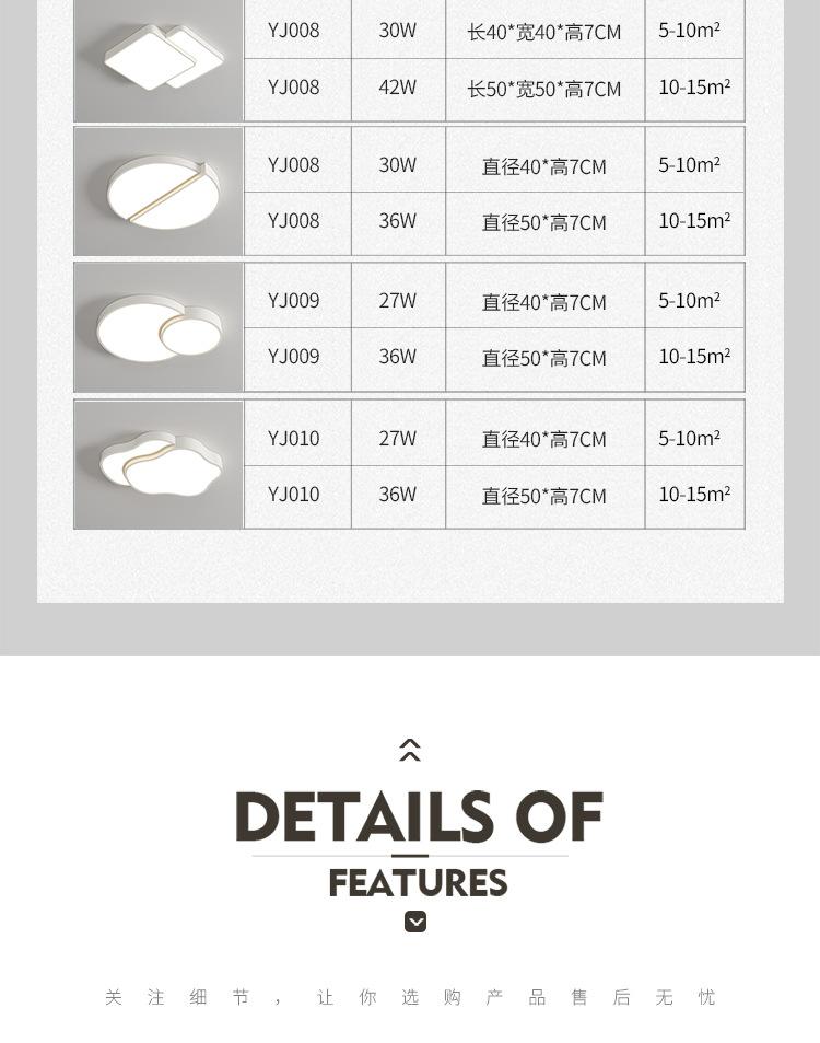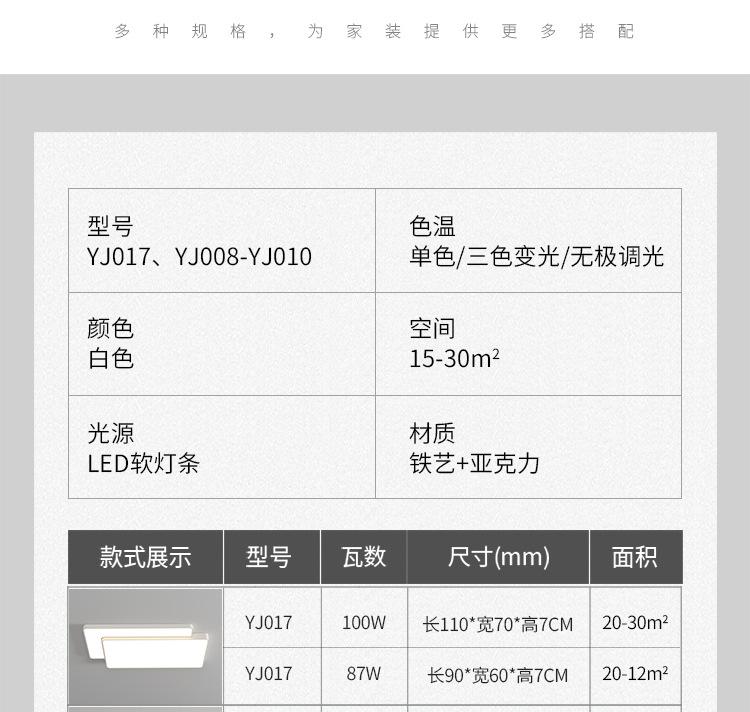 Living room-rectangular large size 110*70*7cm/100w, Living room-rectangular small size 90*60*7cm/87w, Bedroom-...