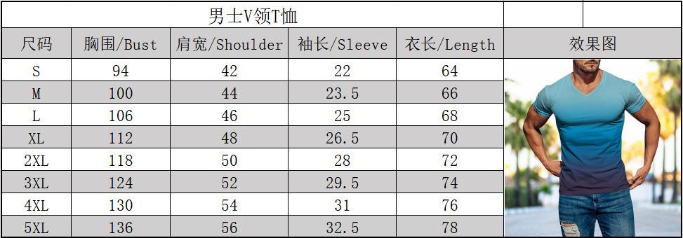 Camiseta de manga corta con cuello en V ajustado y estampado de moda de color degradado 3D para hombre de Amazon Wish Summer transfronterizo europeo y americano