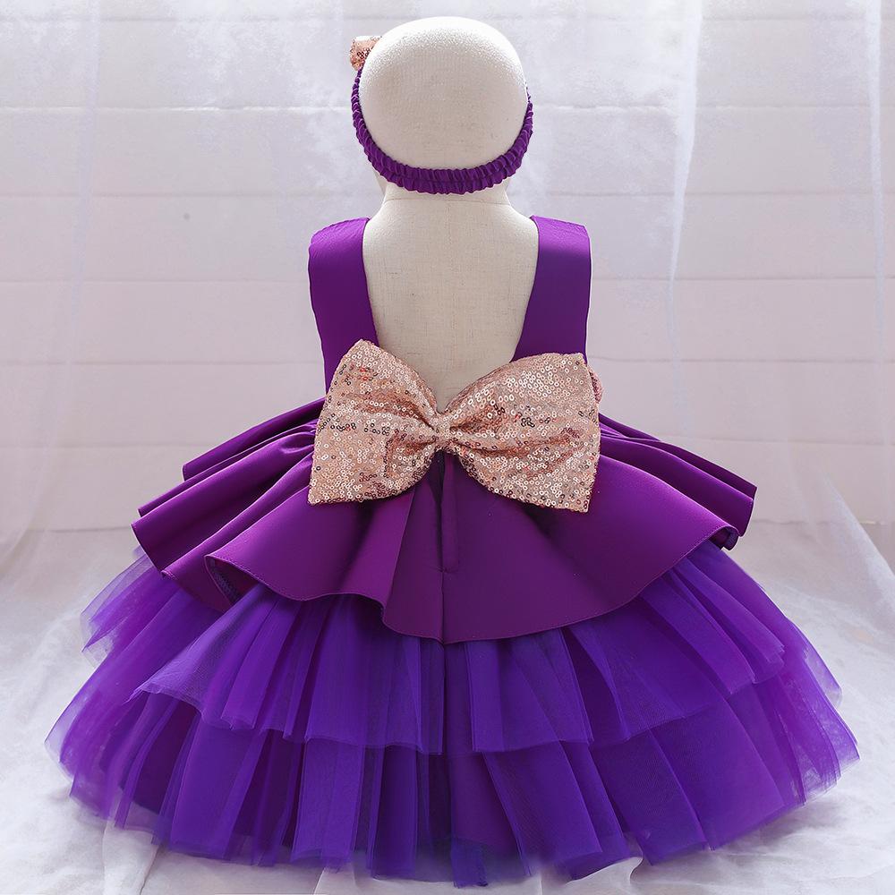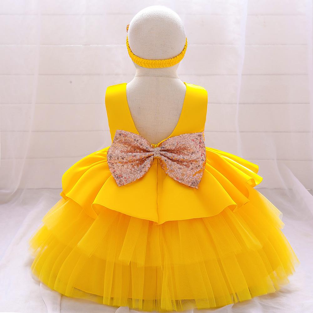 Vestido de bebé para niña de un año de edad vestido de princesa de luna llena para niños vestido de lazo de falda de pastel de malla con lentejuelas empalmadas