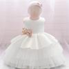 Vestido nuevo europeo y americano con lazo para bebé, vestido de bautizo para bebé, vestido para niña, vestido de encaje de manga larga