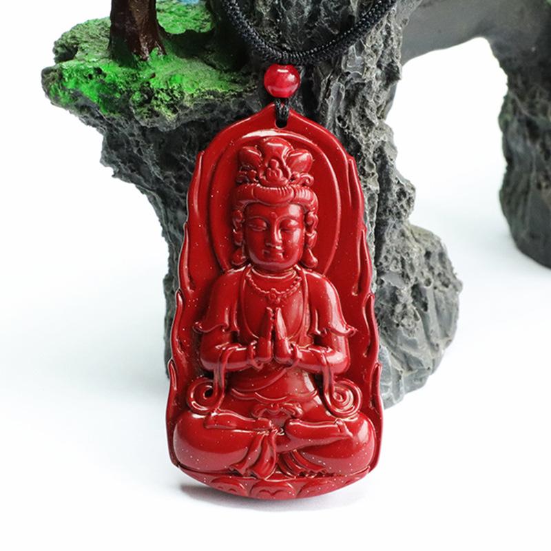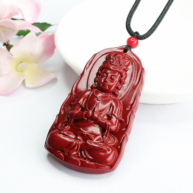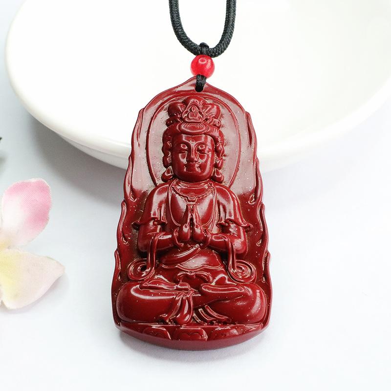 Colgante de cinabrio Yuyu con arena de oro púrpura y colgante de Bodhisattva Guanyin, collar de fábrica al por mayor, generación YZS3021509