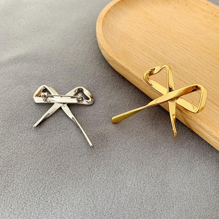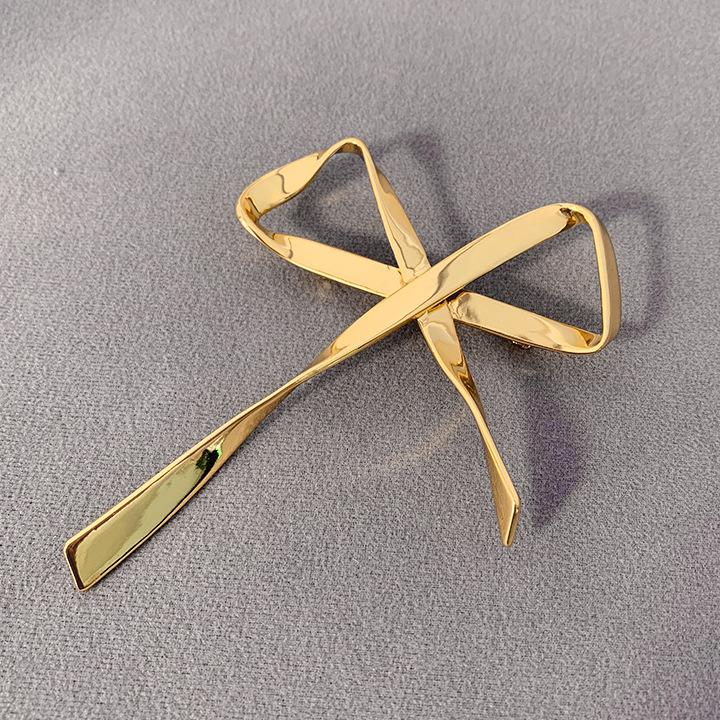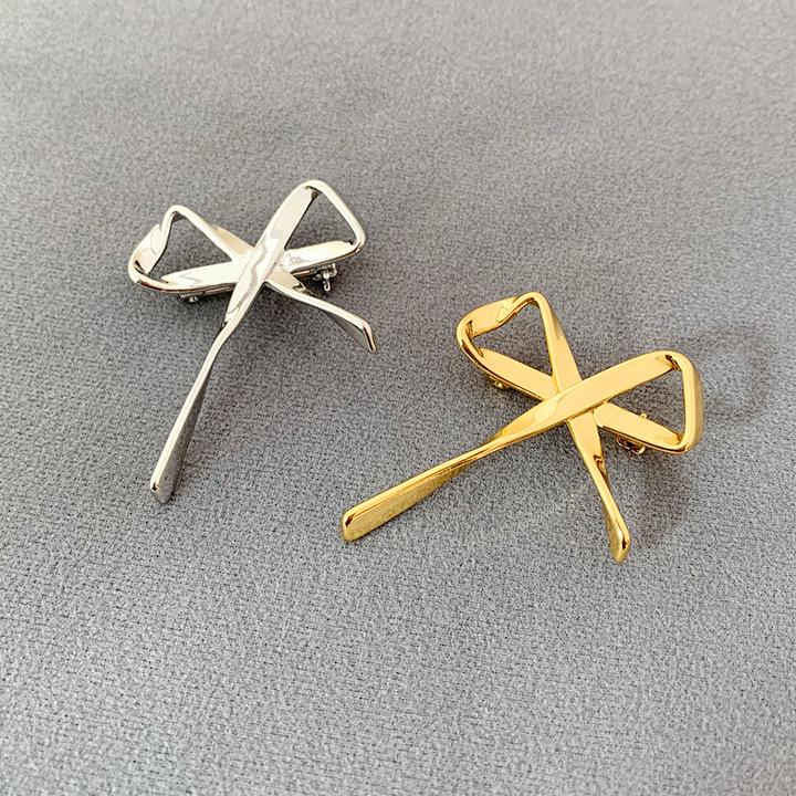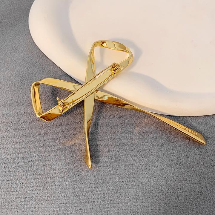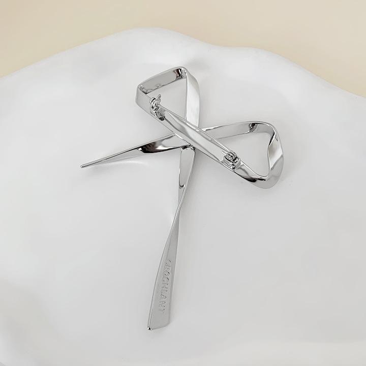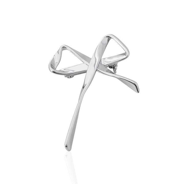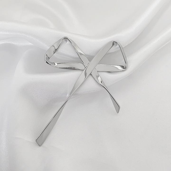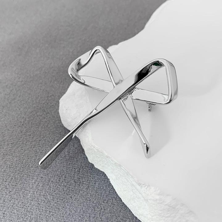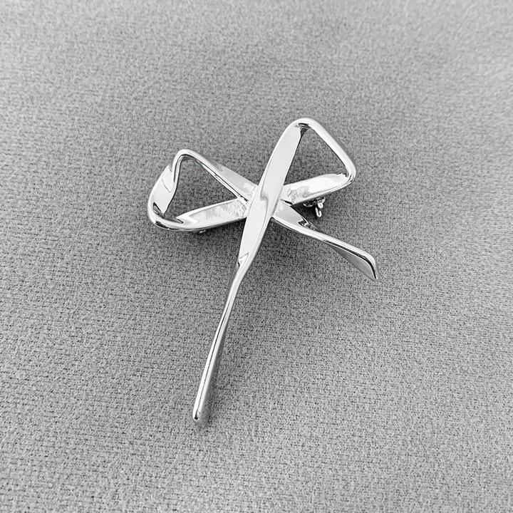 Broche Metálico de Lazo de Cinta de Moda Coreana Otoño e Invierno Nicho de Alta Gama Latón Chapado en Oro Pin Color Plata