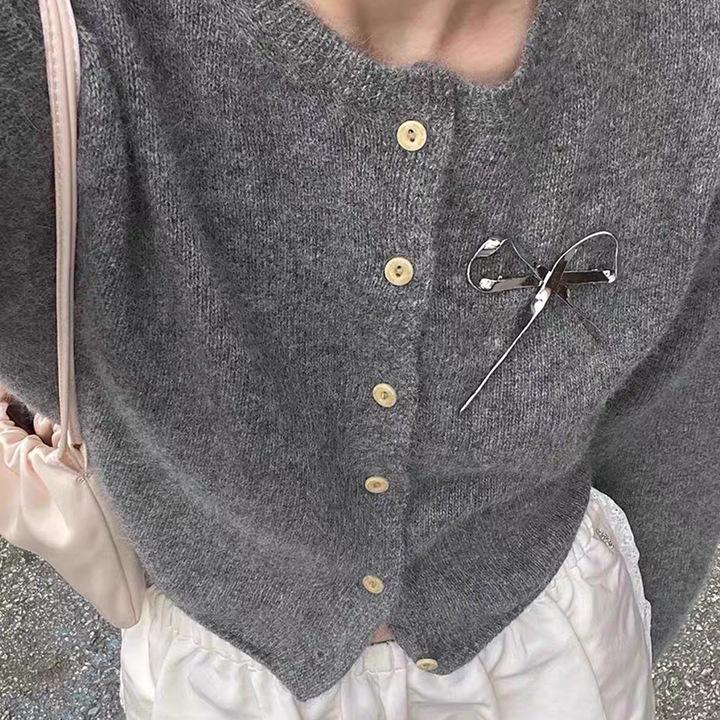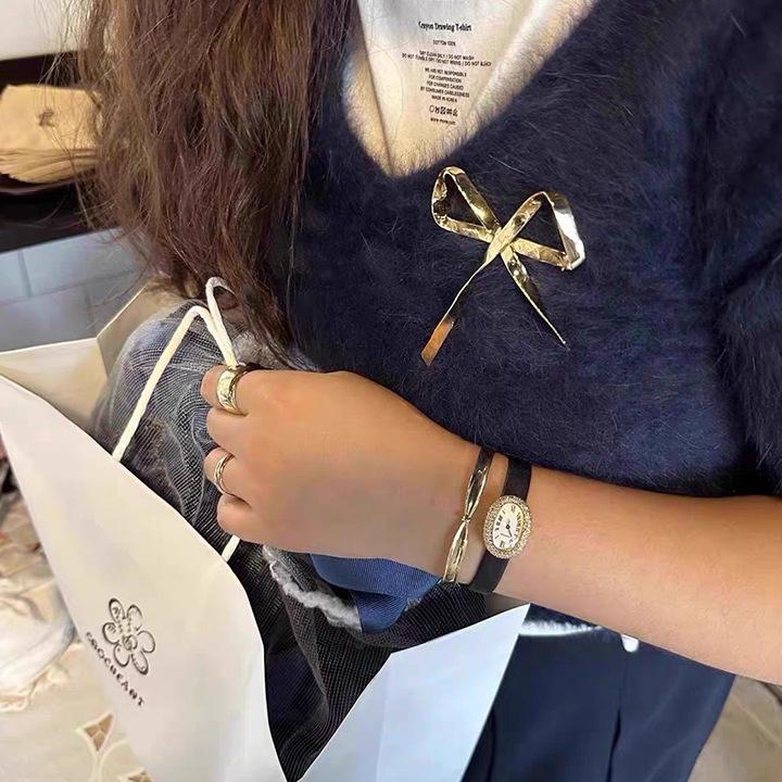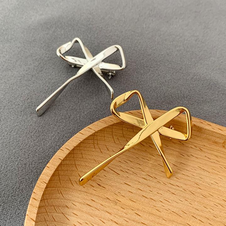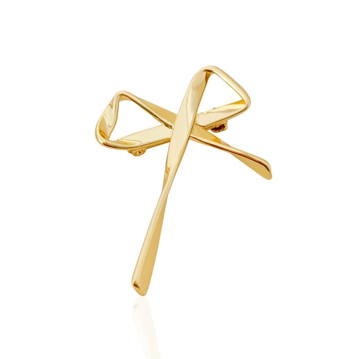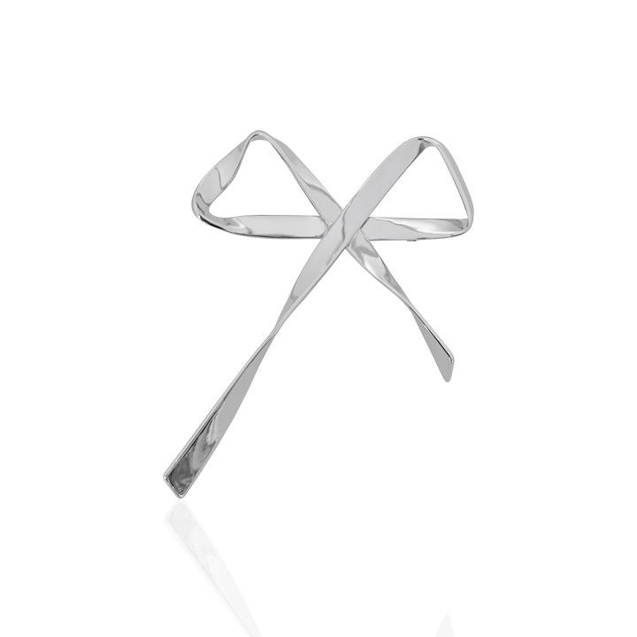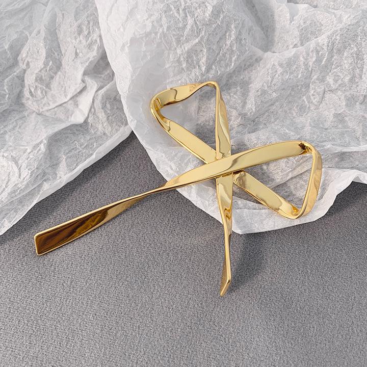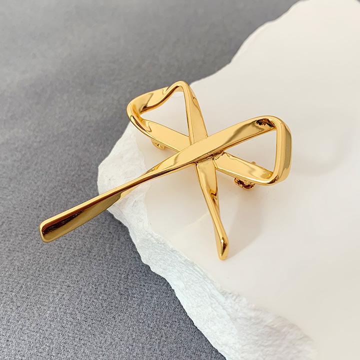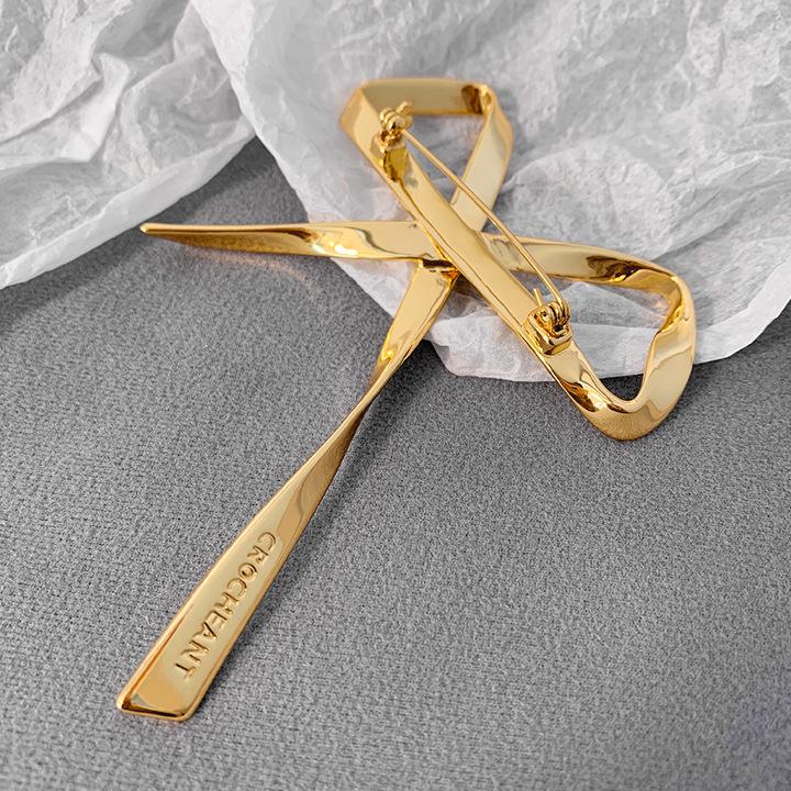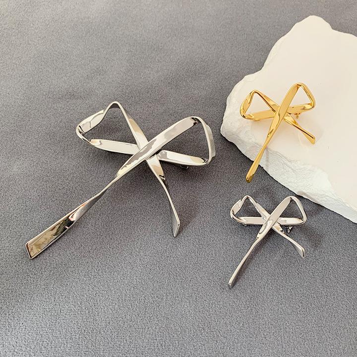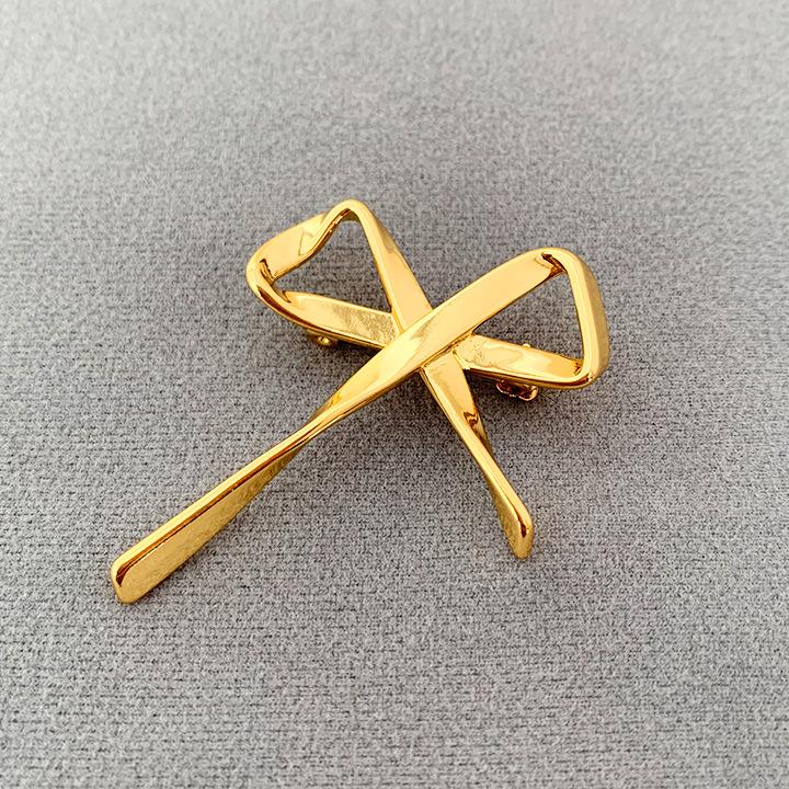 Broche Metálico de Lazo de Cinta de Moda Coreana Otoño e Invierno Nicho de Alta Gama Latón Chapado en Oro Pin Color Plata