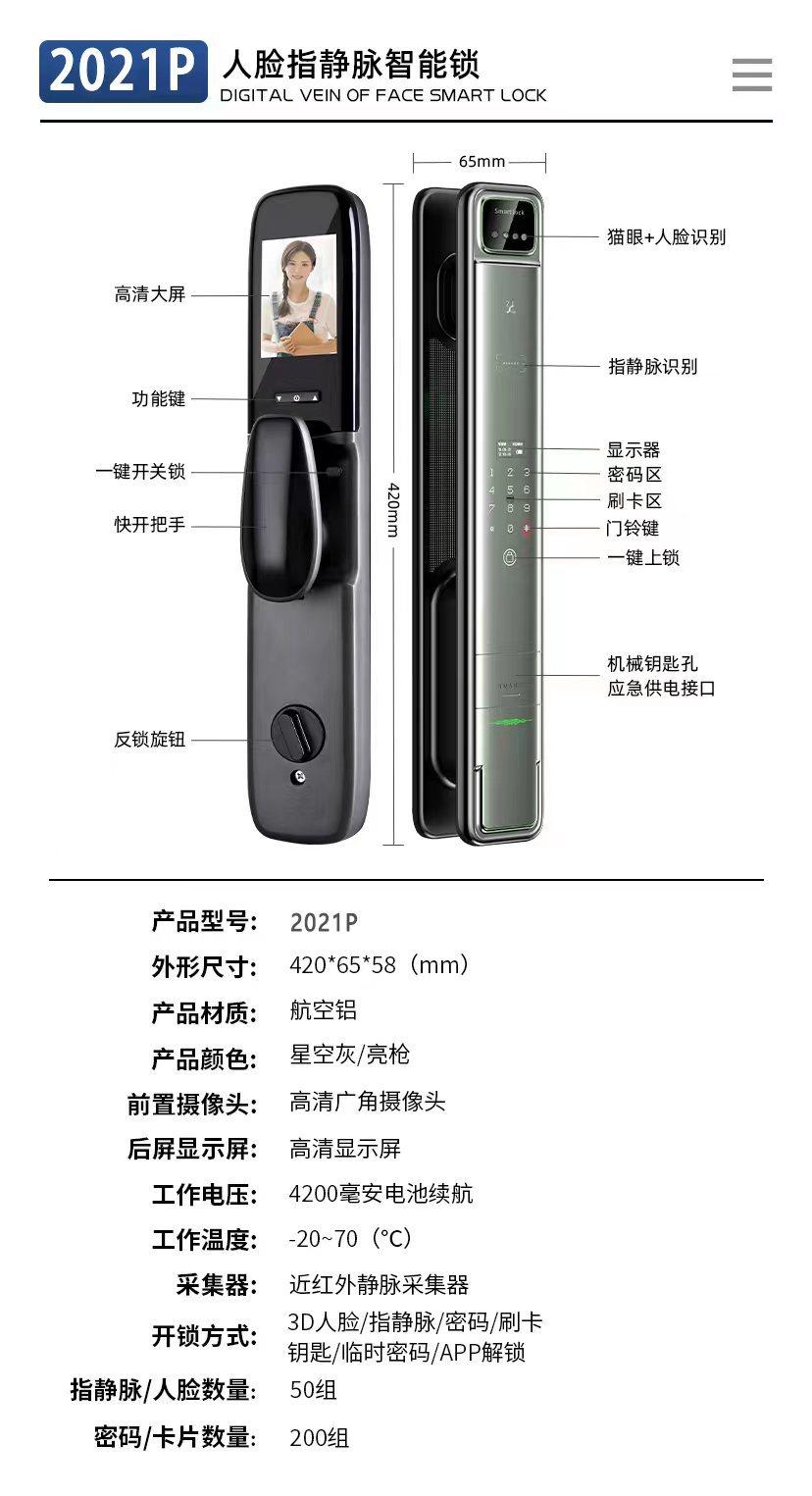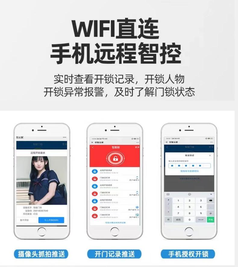 Fingerprint, With key, visible cat's eye, face recognition, Remote Unlock