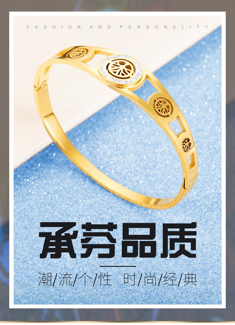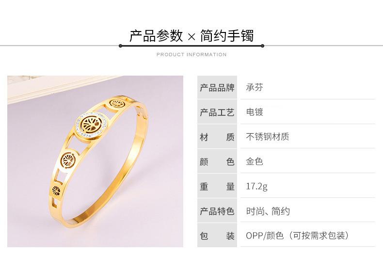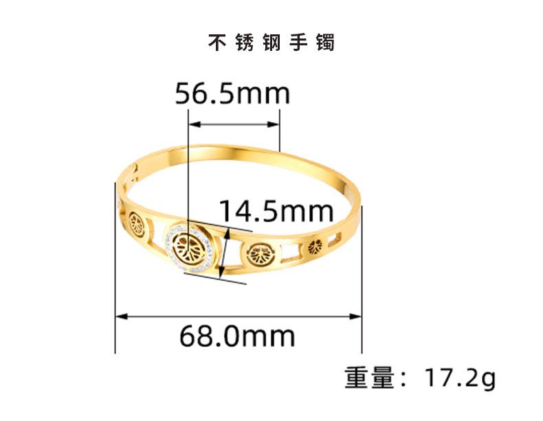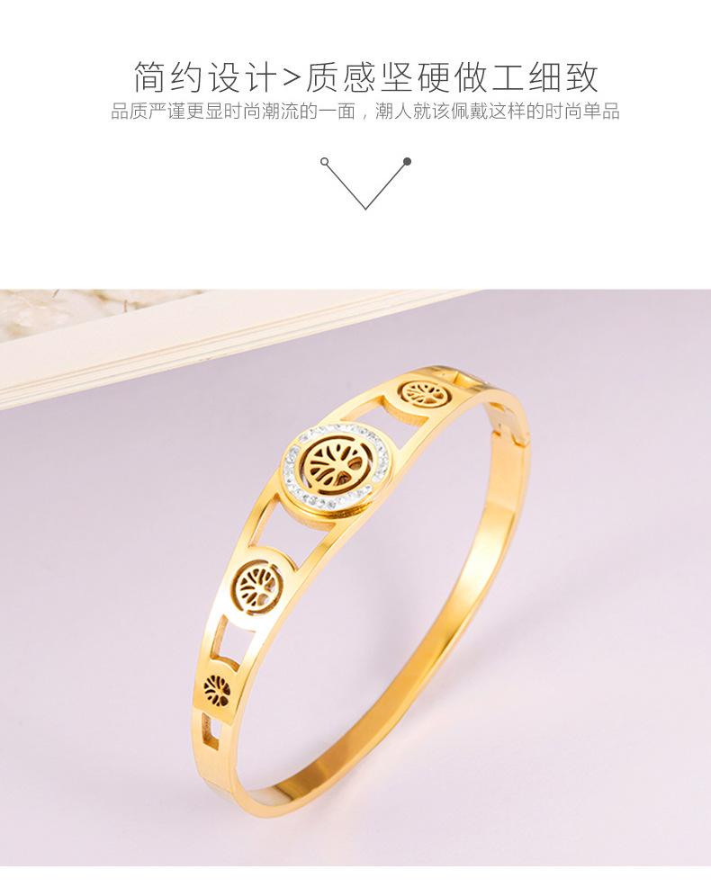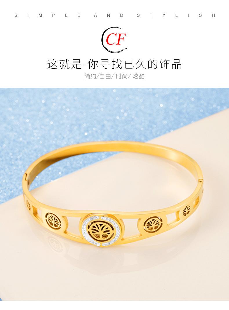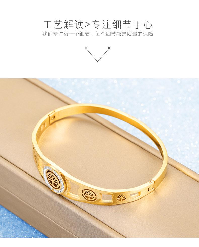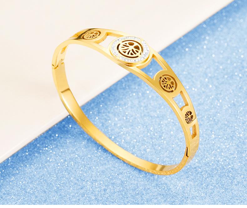 Pulsera de acero de titanio para mujer con círculo geométrico de marca de moda chapada en oro, estilo europeo y americano no convencional, pulsera de acero inoxidable Árbol de la Vida