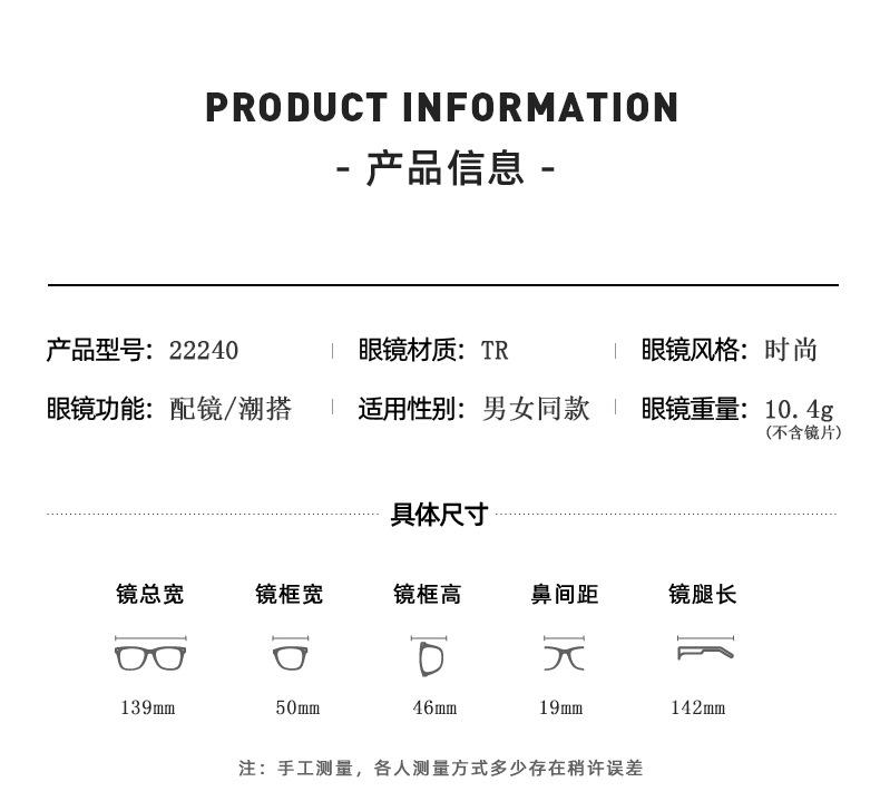 22240 K-Style Celebridad de Internet Ultraligero Tr Espejo Plano Gafas de Tienda Física Armazón para Gafas de Miopía para Mujer Armazón para Hombre Venta al por Mayor