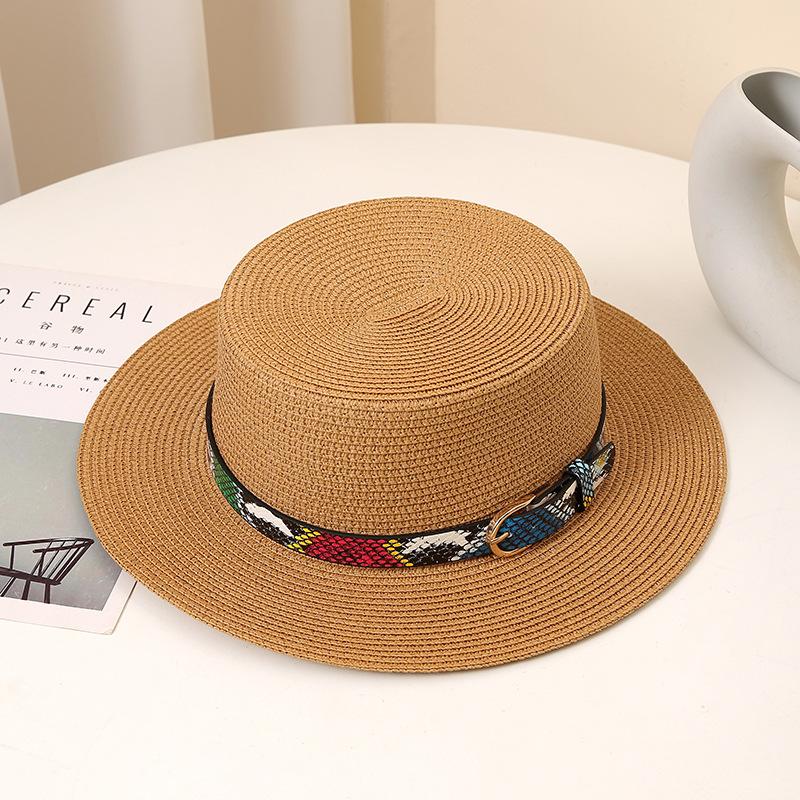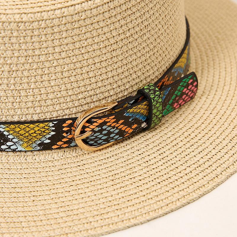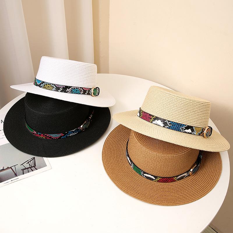 Sombrero de Paja de Ala Ancha para Viajes al Aire Libre en Primavera y Verano, Protección Solar y Sombrilla de Playa, para Hombres y Mujeres, Estilo Británico, Patrón de Serpiente, Sombrero de Jazz Fabricante